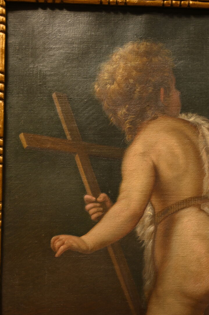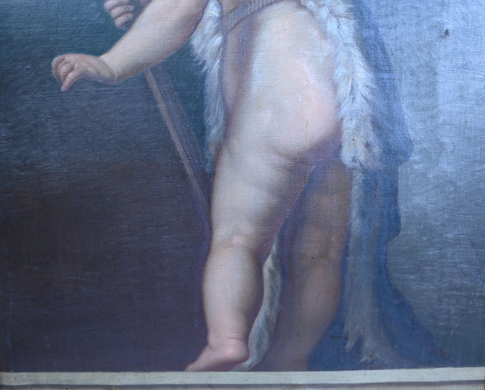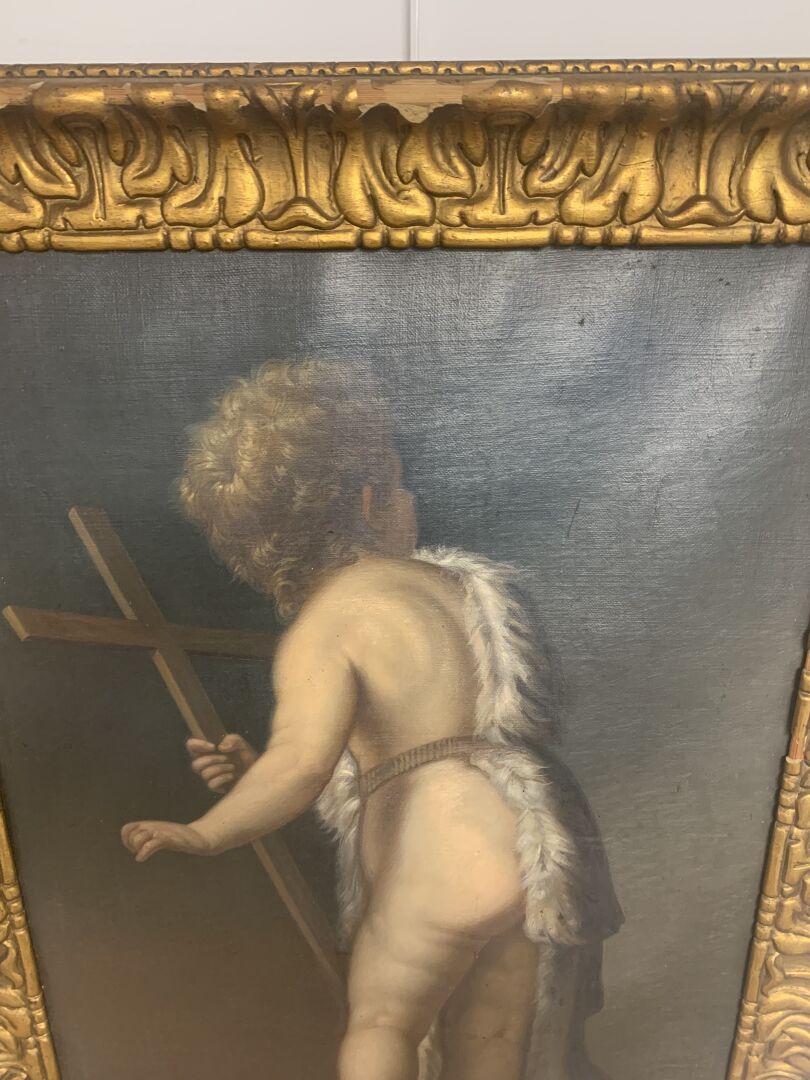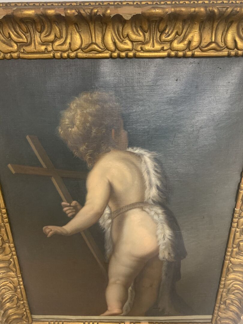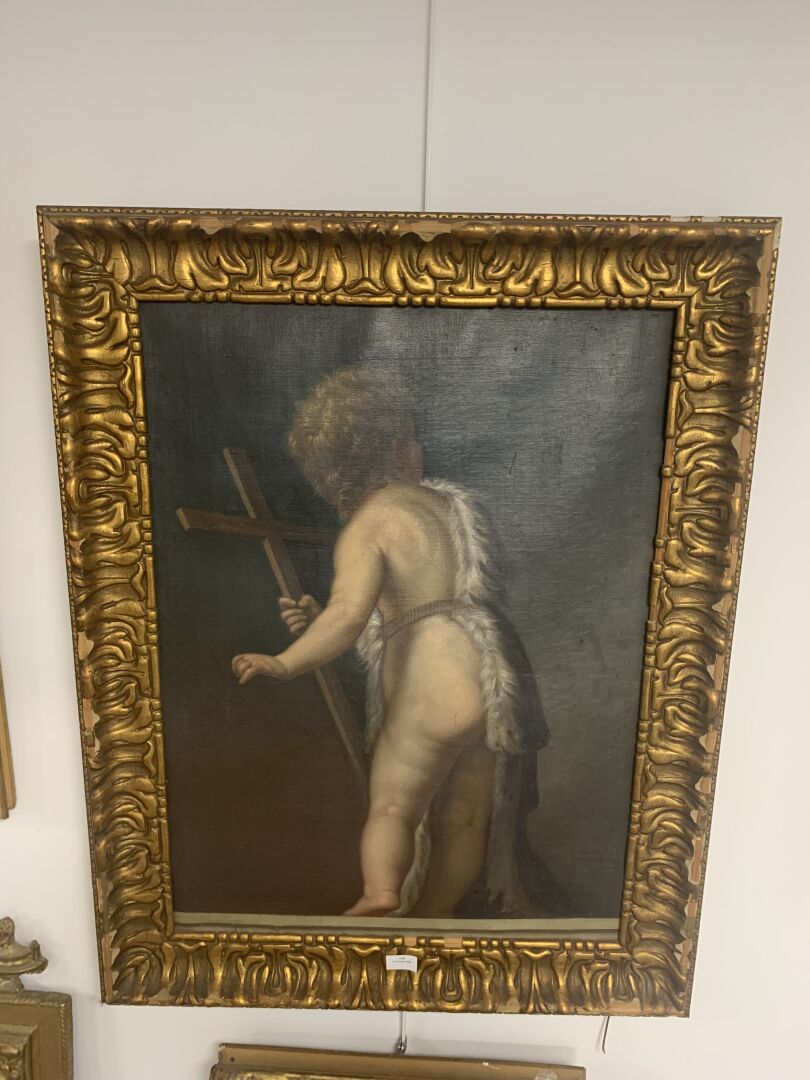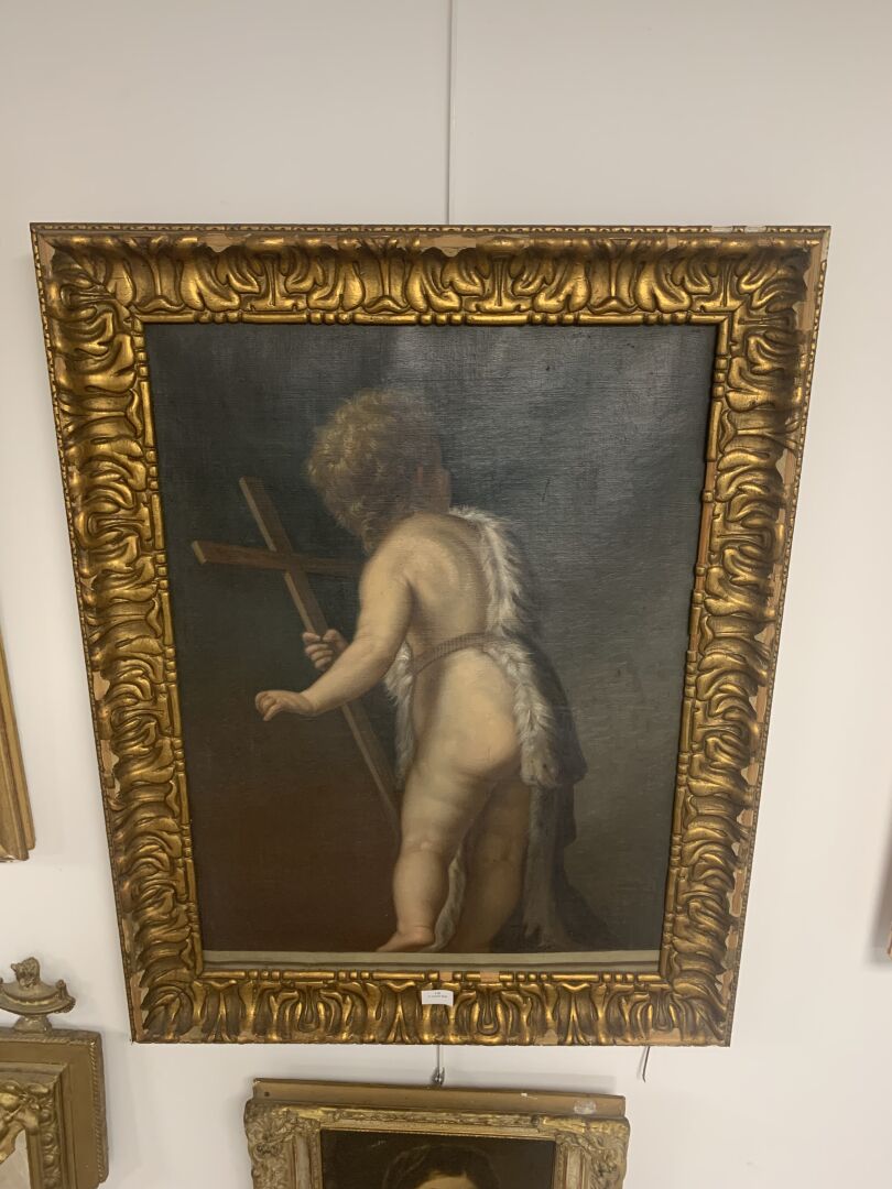 École du XIXe siècle, d’après une École du XVIe siècle. Saint Jean-Baptiste vu de dos. Huile sur toile. 76 x 56 cm.