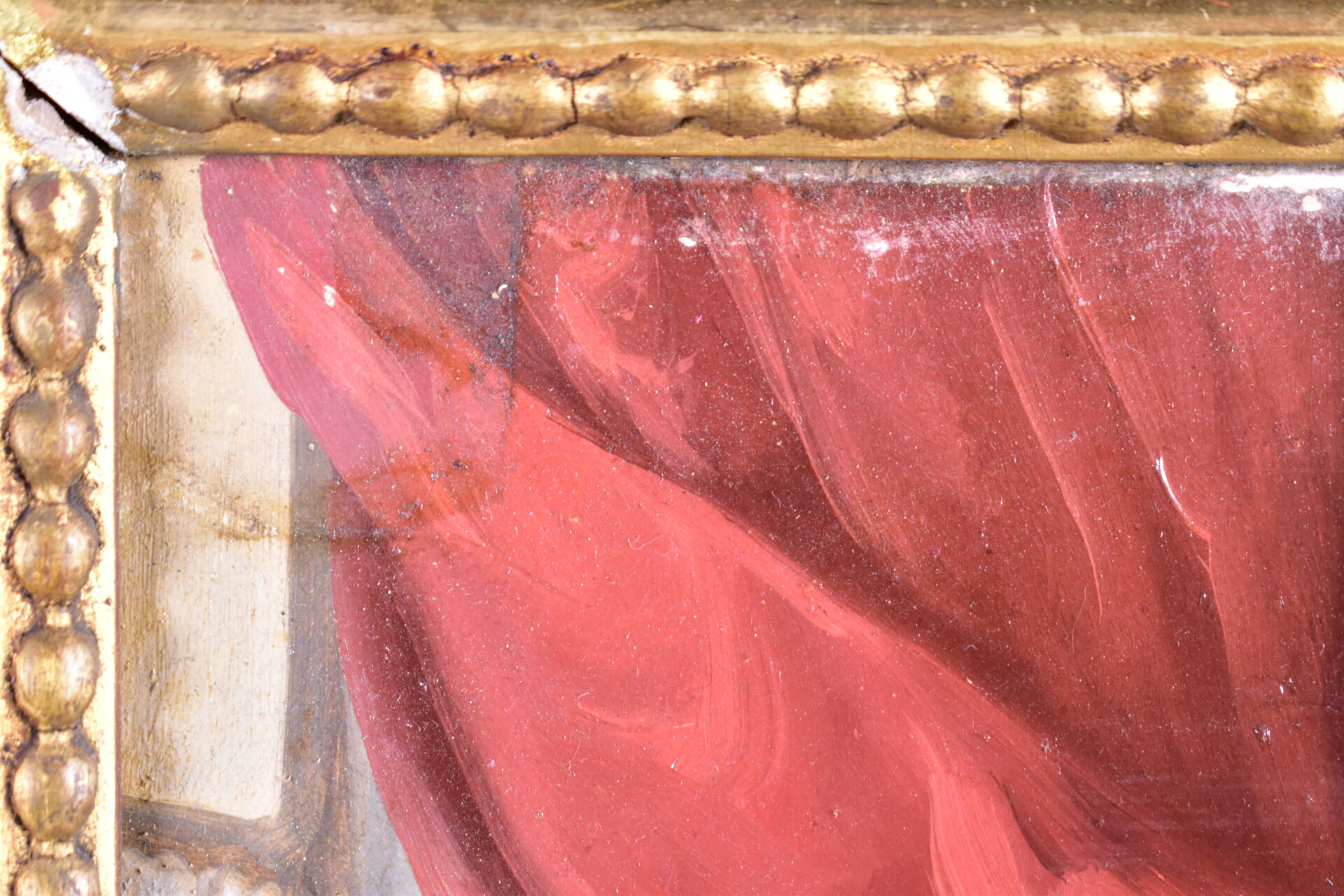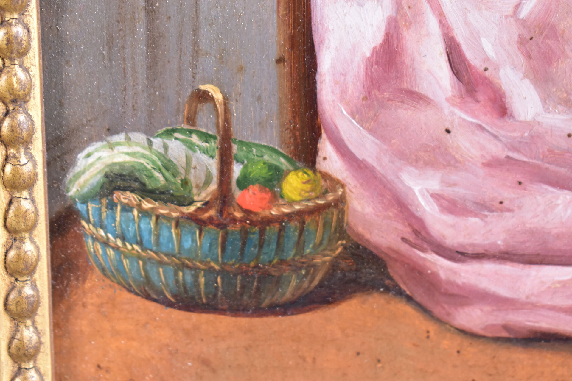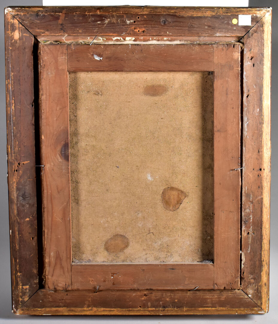 Ecole du XIXe siècle. La leçon. Huile sur toile (un enfoncement). 40 x 32 cm.