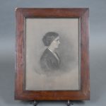 École du XIXe siècle. Portrait de femme de profil. Dessin au fusain et rehauts de craie. 32,7 x 24,7 cm (à vue).