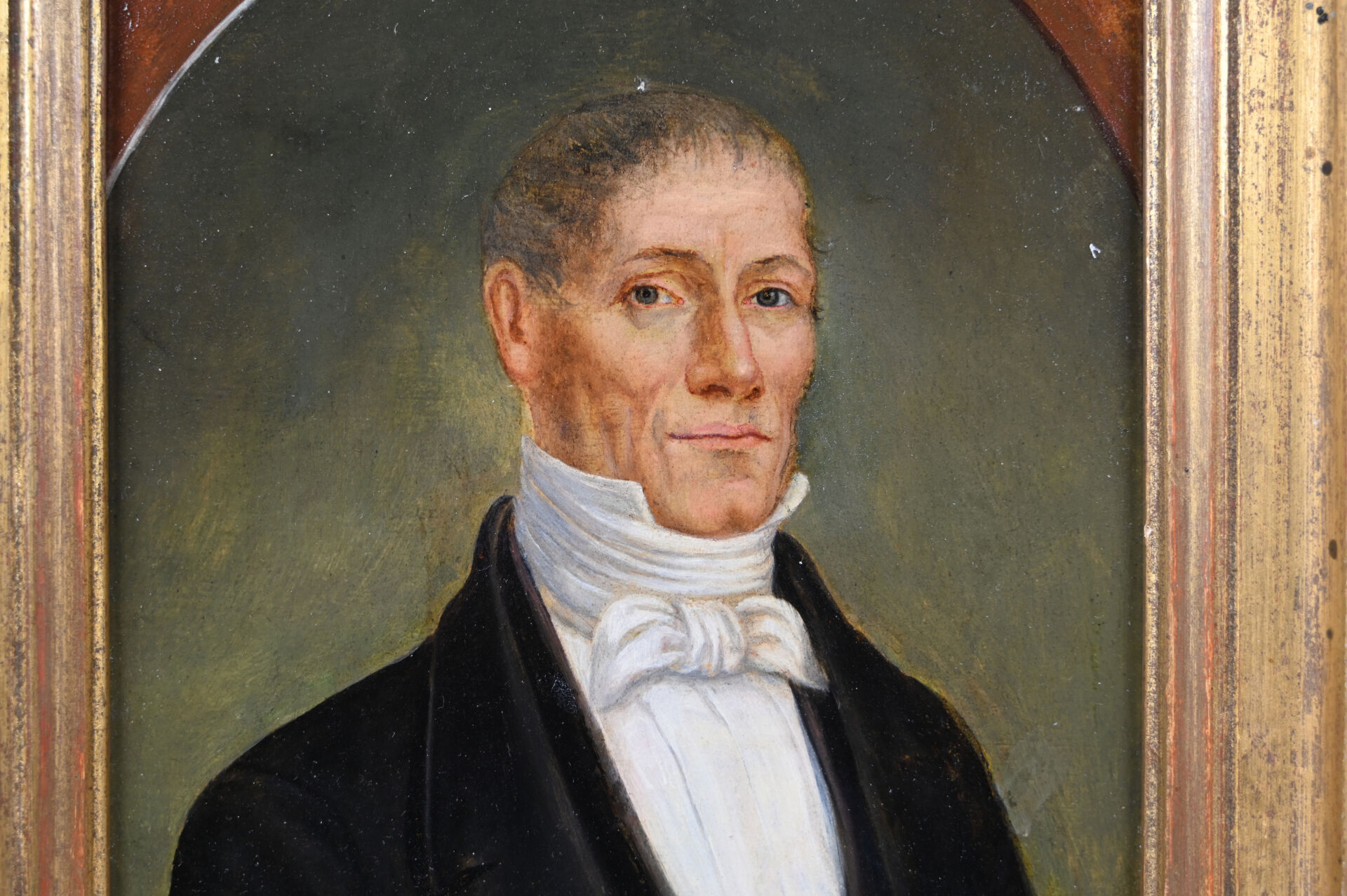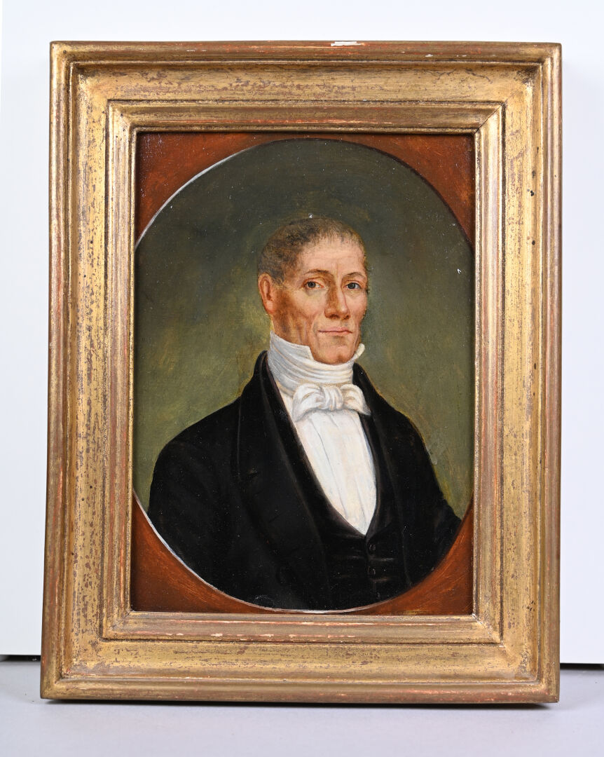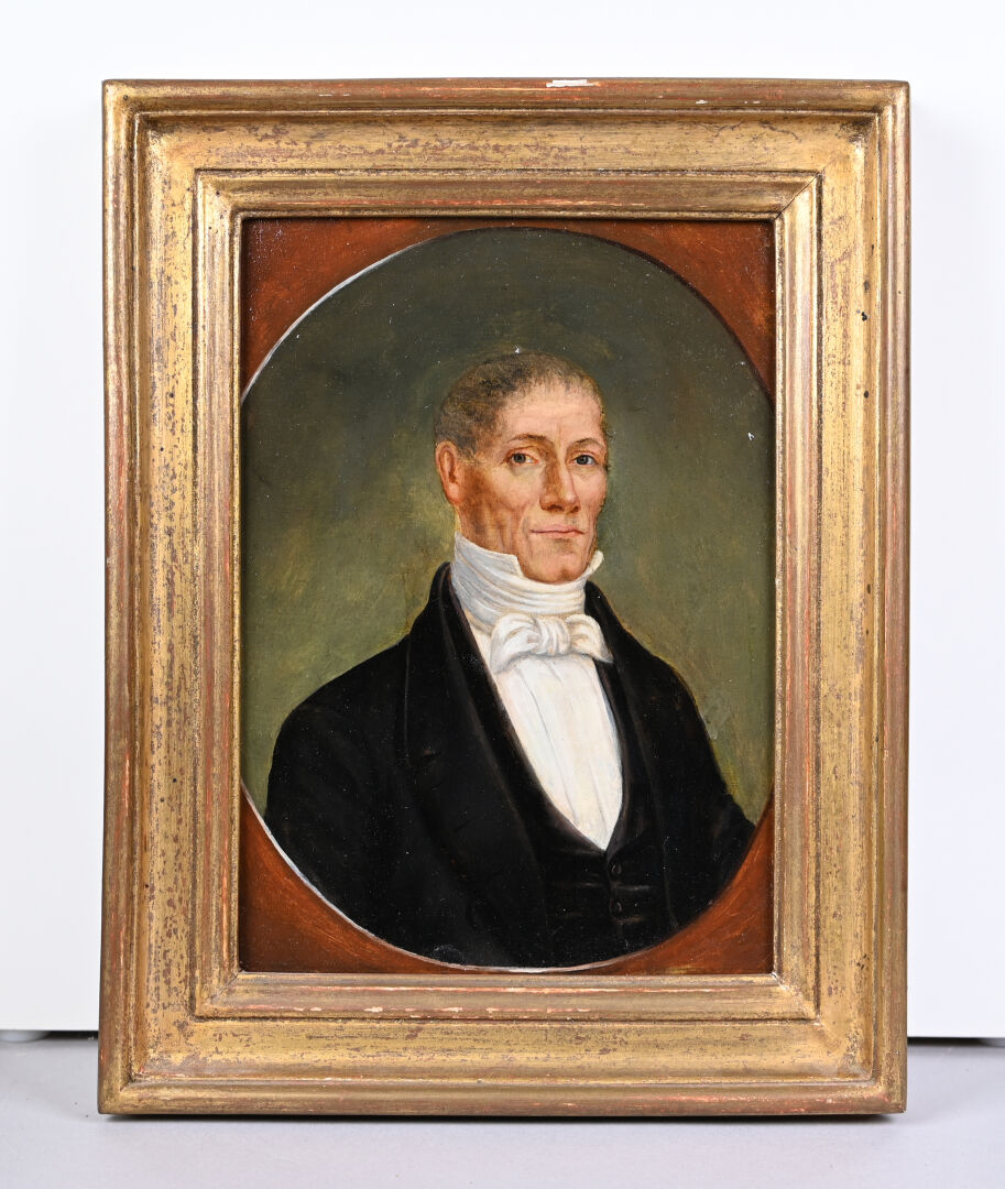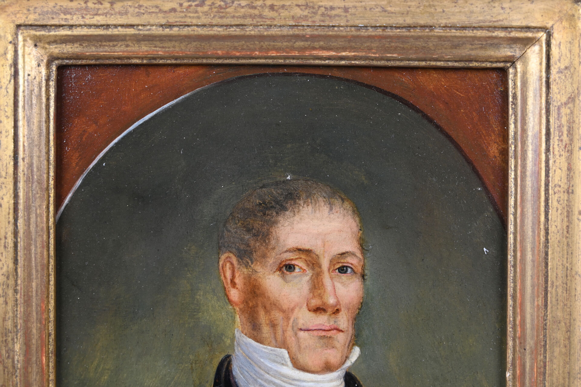 Ecole du XIXe siècle. Portrait de gentilhomme. Huile sur panneau. 23,5 x 17 cm.