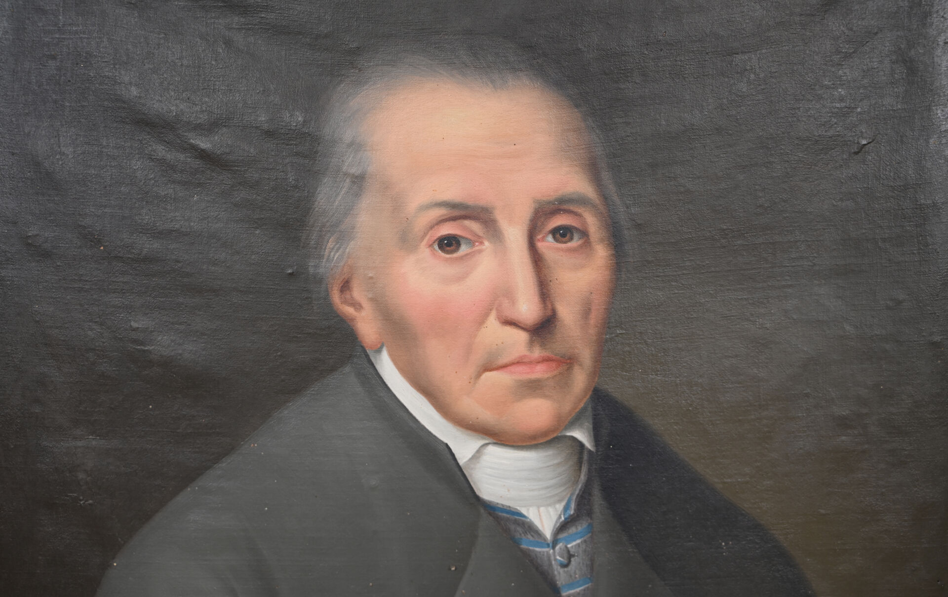Ecole du XIXe siècle. Portrait d’un gentilhomme à la croix de Saint-Louis. Huile sur toile (gondolée). 62 x 51 cm.
