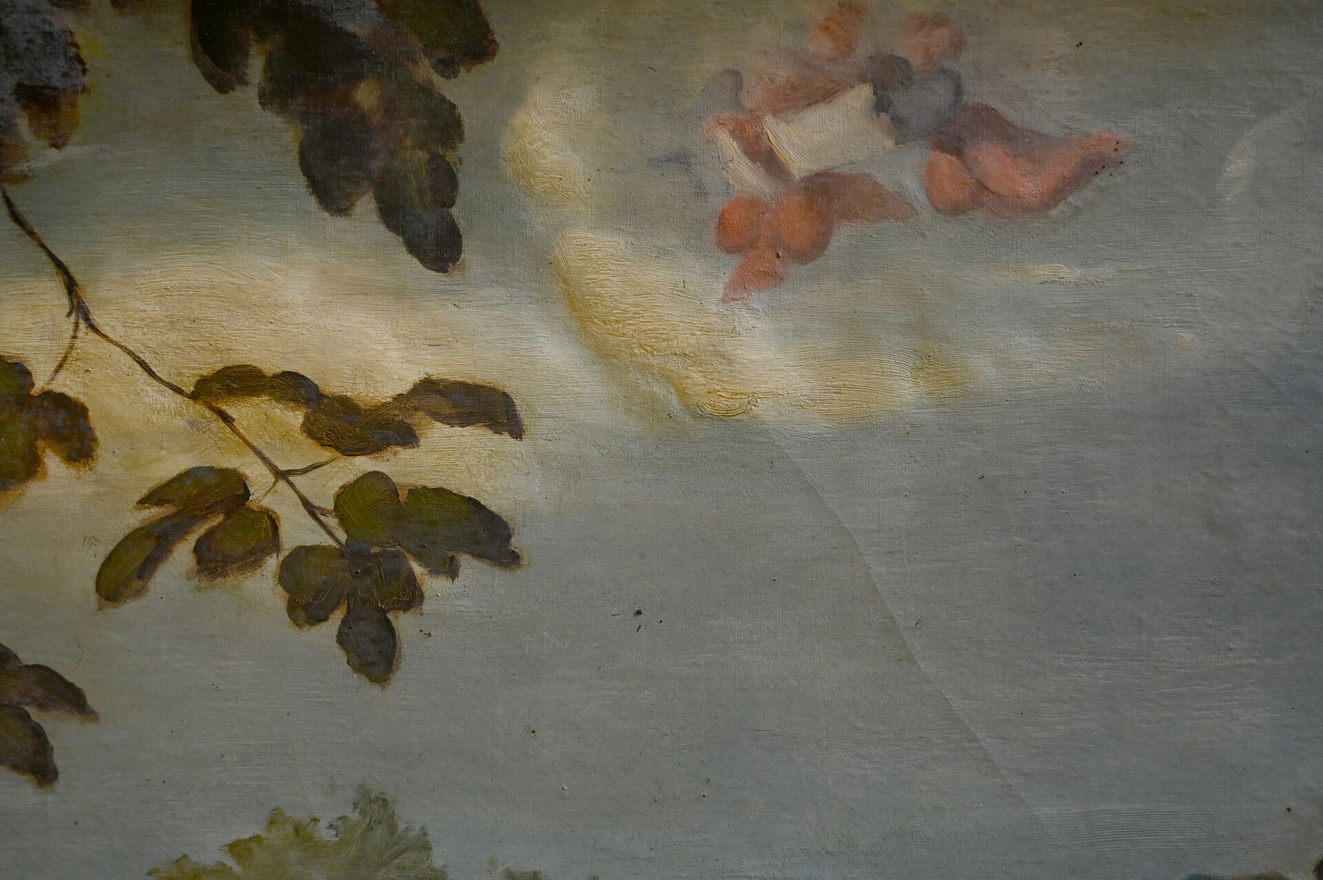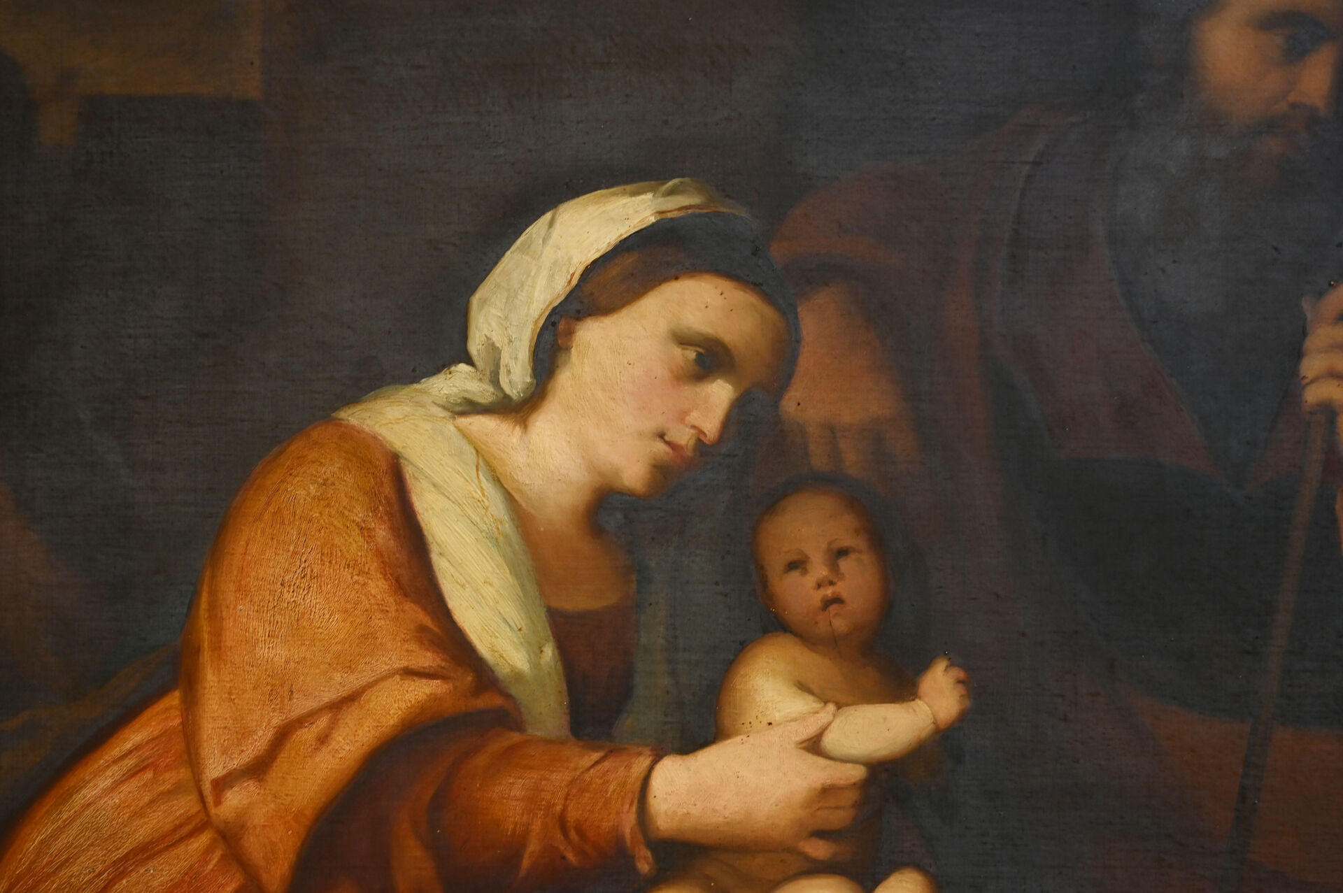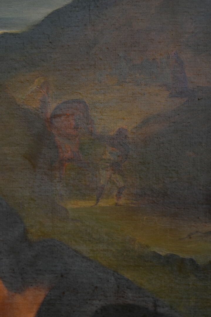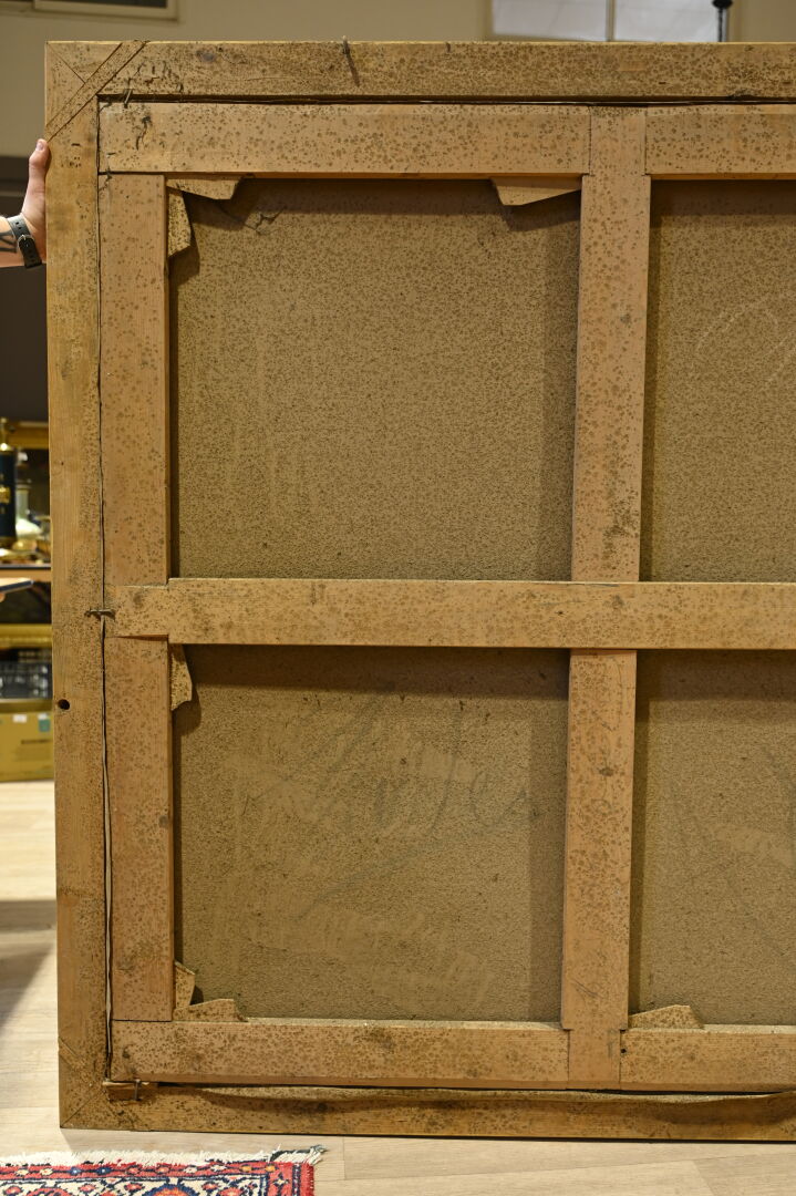 (*) École du XIXème siècle, d’après Palma Vecchio. L’Adoration des bergers. Huile sur toile (repeints). Dimensions : 139 x 209 cm. Le tableau original est conservé au Louvre sous le numéro INV402 / MR368. Frais réduits à 14,28 % TTC pour ce lot.