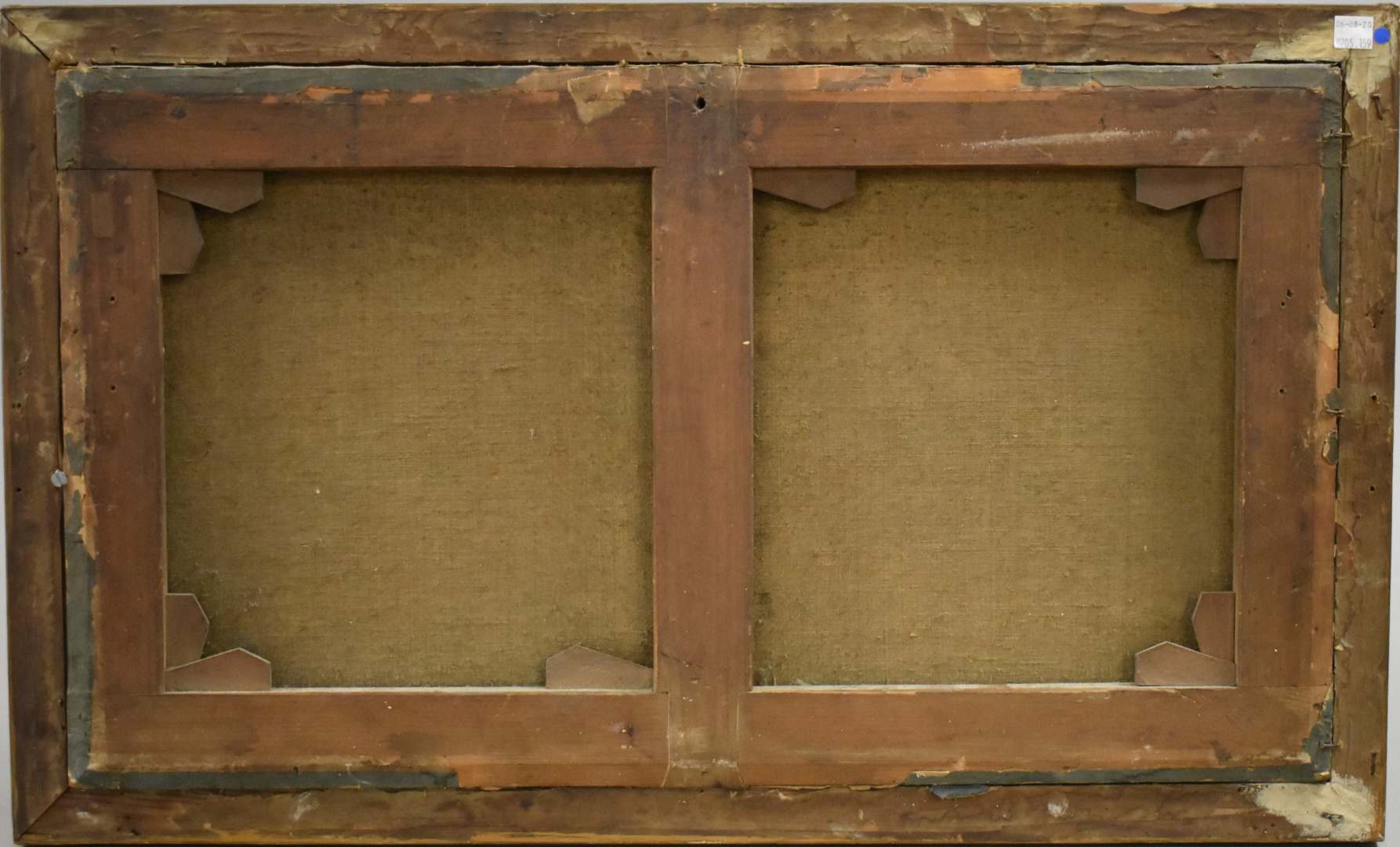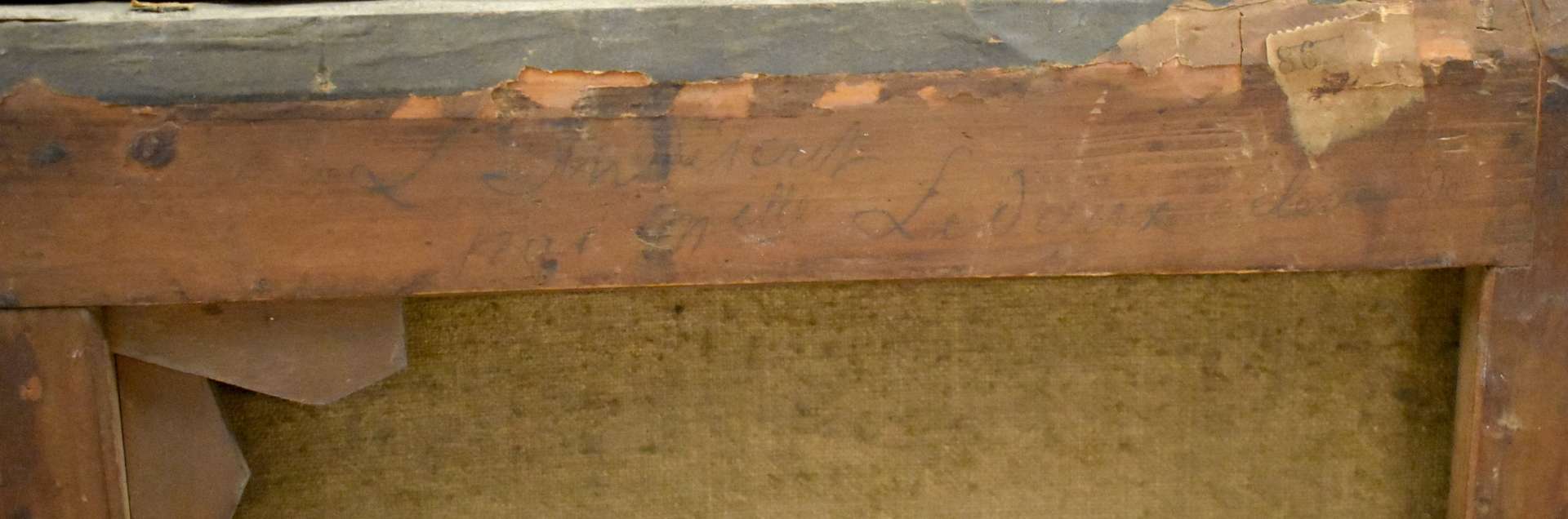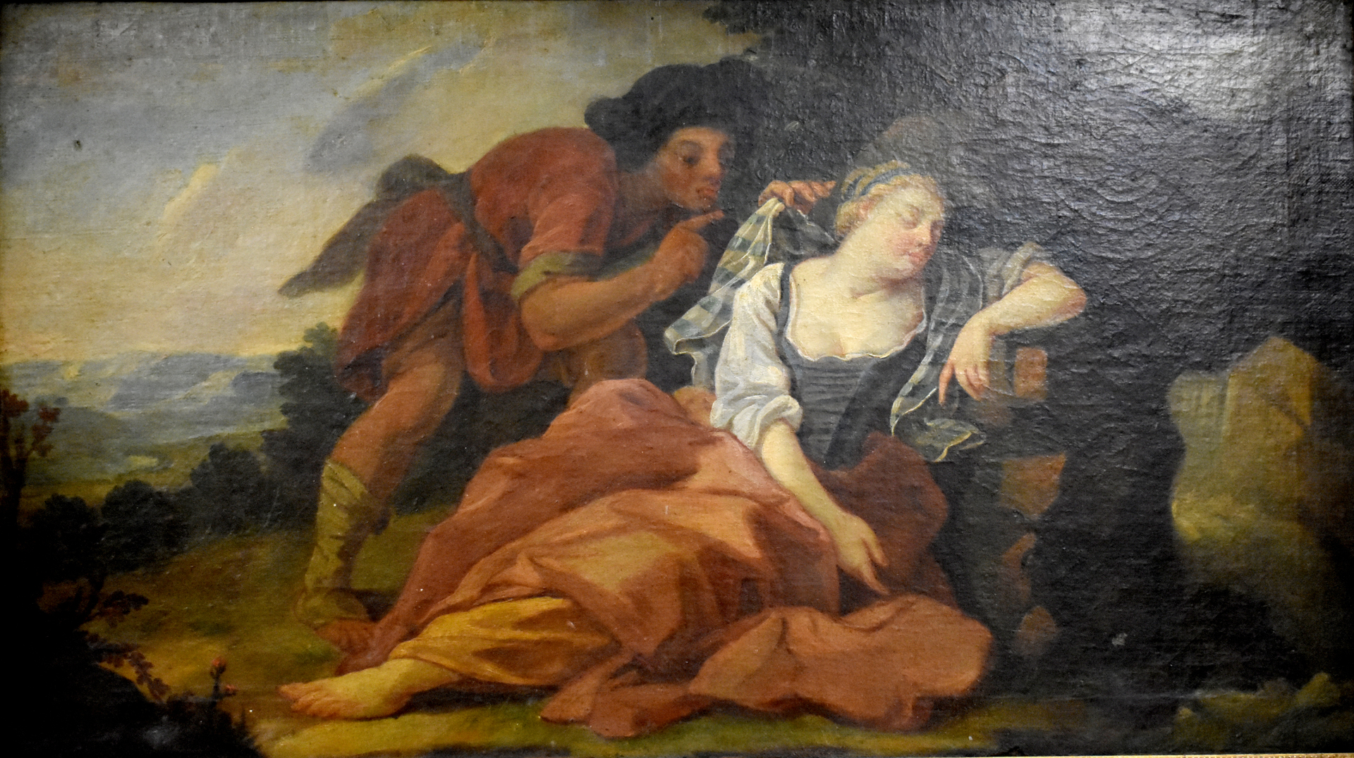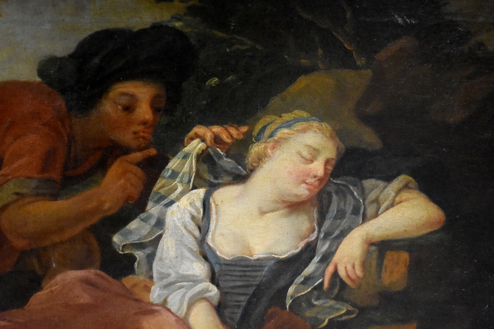 École du XVIIIe siècle. L’endormie. Huile sur toile (rentoilée, restaurations). 37,5 x 66,5 cm.