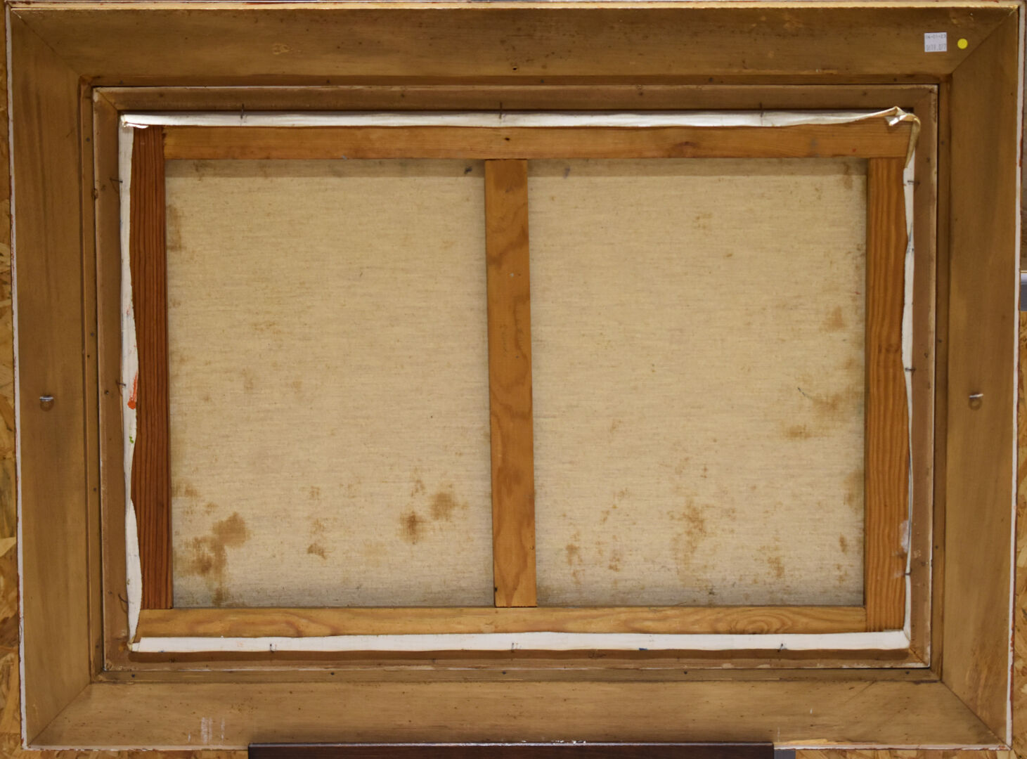 Ecole du XXe siècle. Le marché. Huile sur toile signée en bas à gauche. 50 x 73,5 cm.