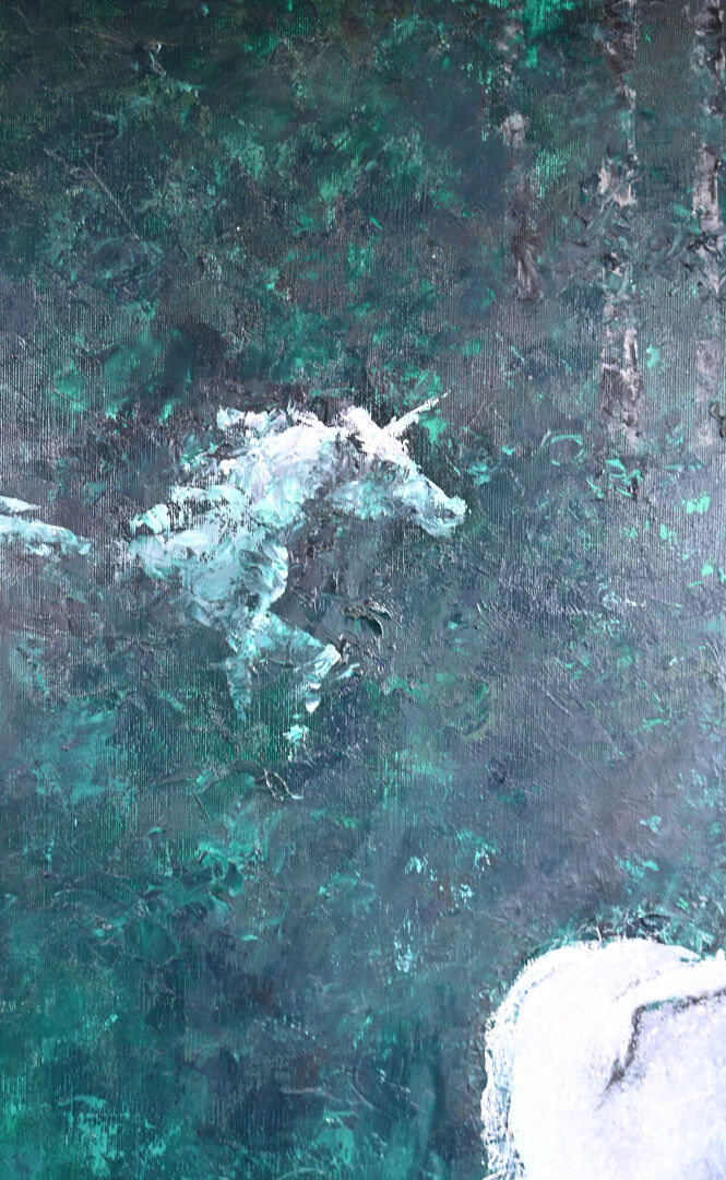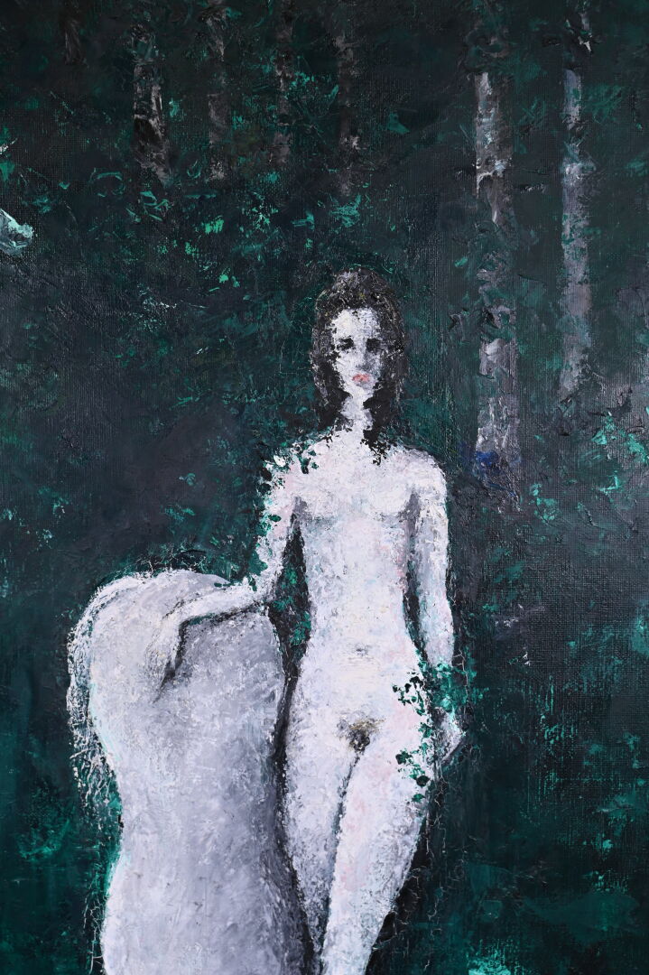Ecole du XXe siècle. « L’eau noire ». Huile sur toile non signée. 100 x 81 cm.