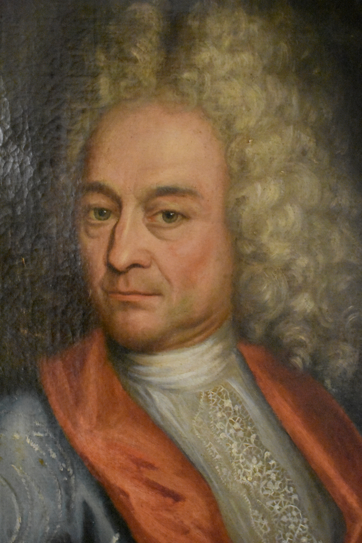 École française vers 1700. Portrait d’homme à la lettre Huile sur toile (restaurations anciennes). 71 x 52 cm.