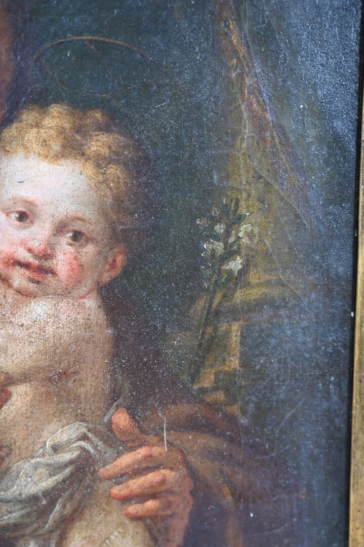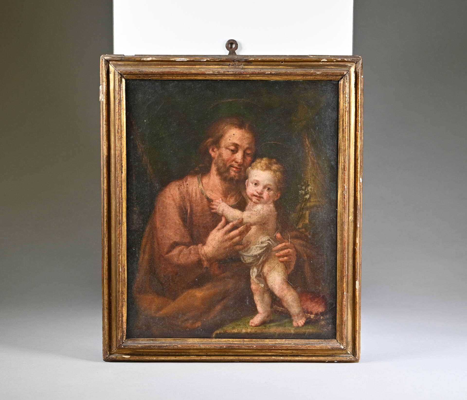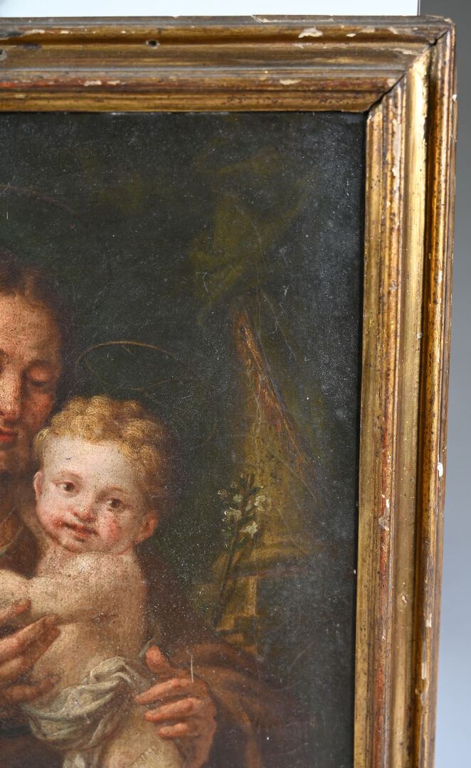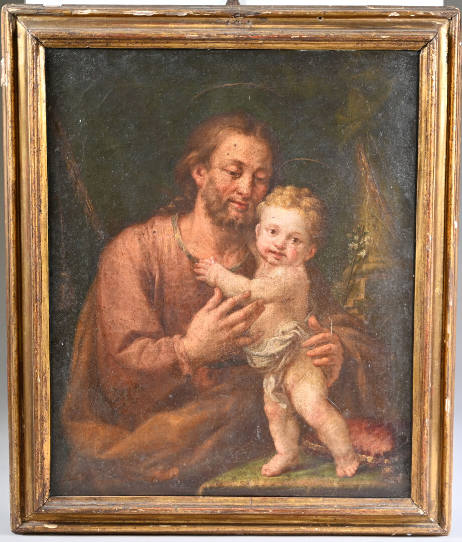 École ITALIENNE du XVIIIe siècle, suiveur de Pompeo BATONI Saint Joseph et l’Enfant. Huile sur toile. 39 x 32 cm.