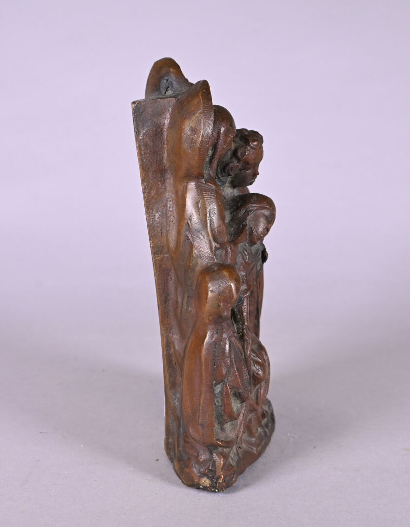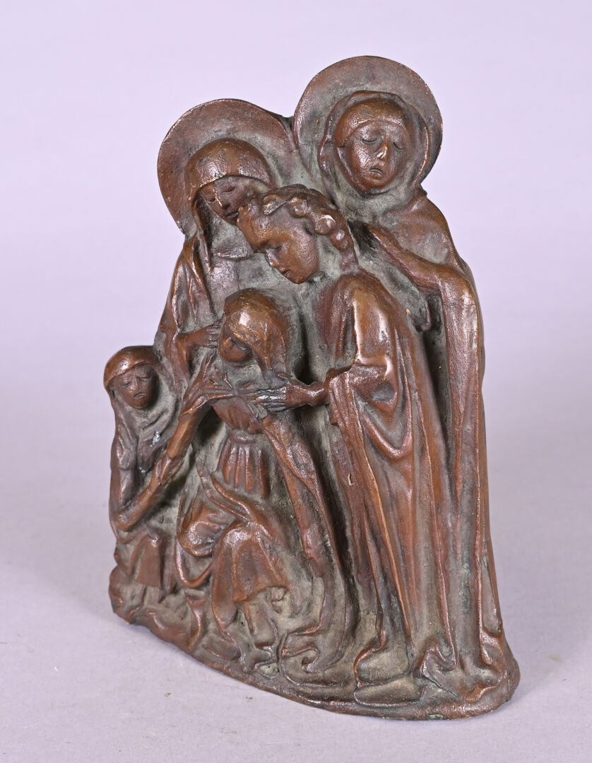 École moderne dans le goût du XVème siècle. La pamoison de la Vierge. Bronze à patine brun clair. Haut. : 22 cm.