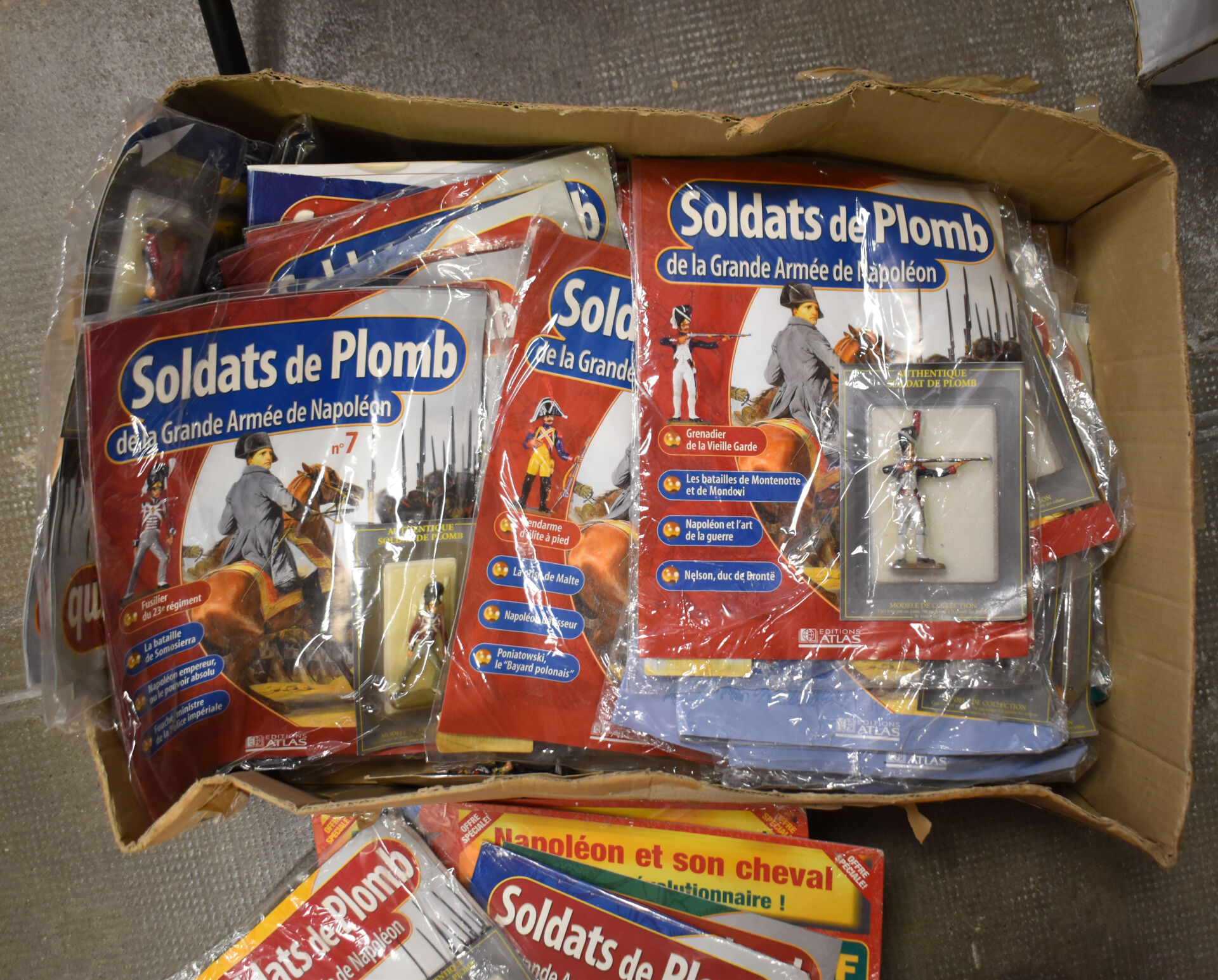 Édition Atlas, lot de figurines en plomb série presse « La grande armée de Napoléon » sous blister avec fascicule. Environ 40 pièces.