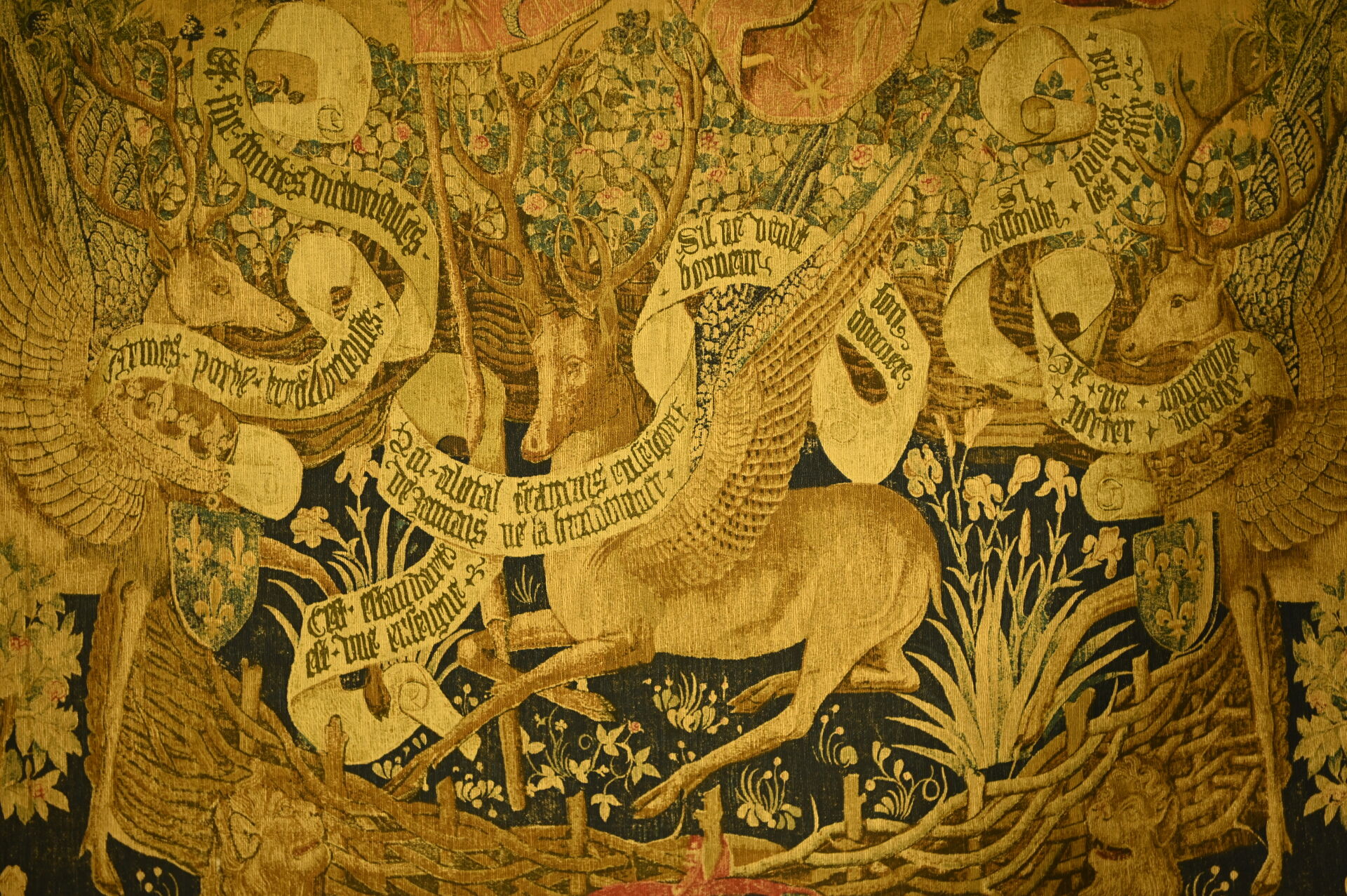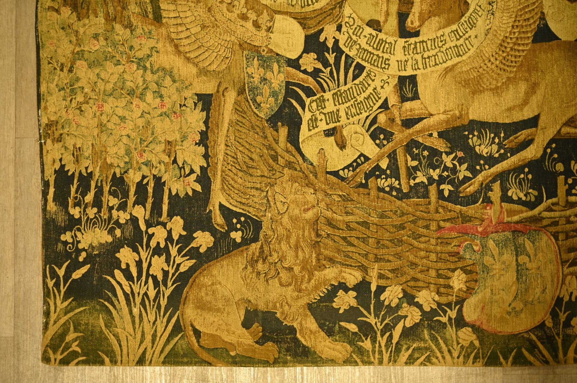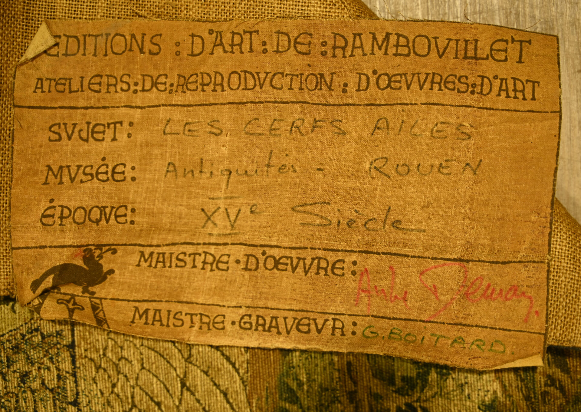 EDITIONS D’ART DE RAMBOUILLET. Tapisserie « Les cerfs ailés » (quelques usures). Bolduc. 143 x184 cm.