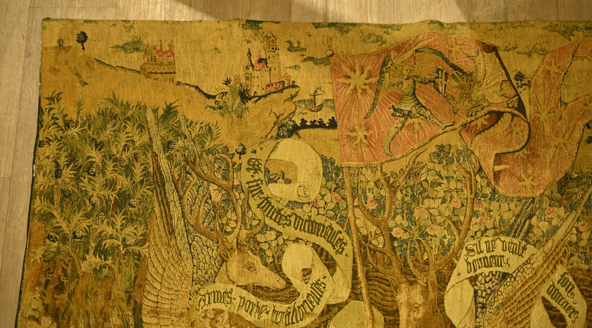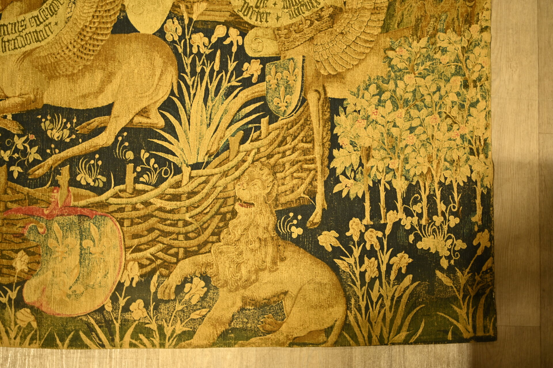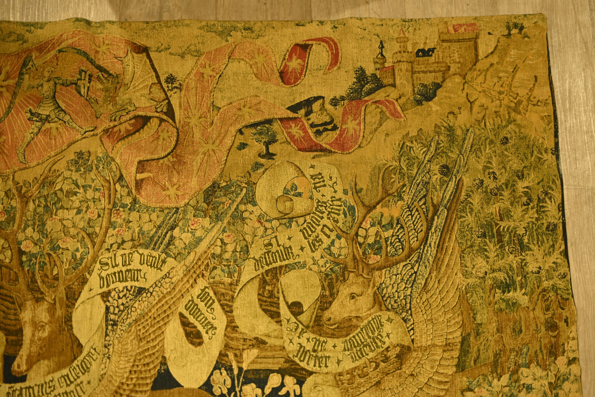 EDITIONS D’ART DE RAMBOUILLET. Tapisserie « Les cerfs ailés » (quelques usures). Bolduc. 143 x184 cm.