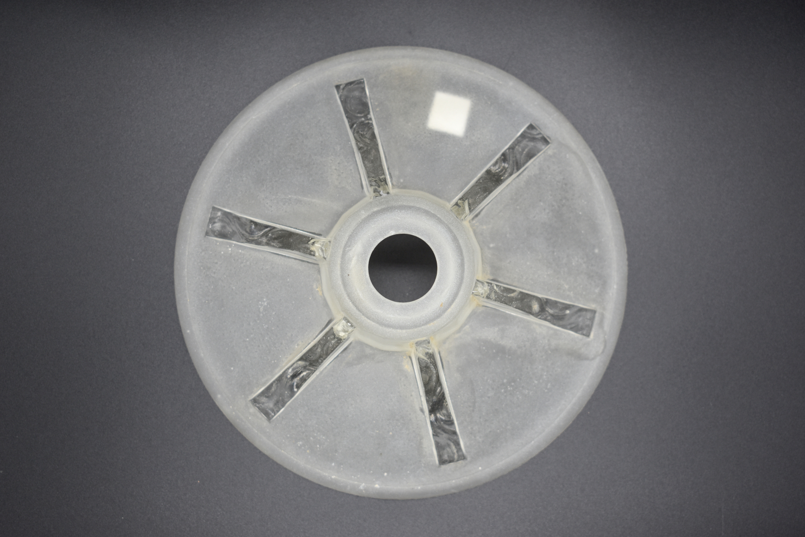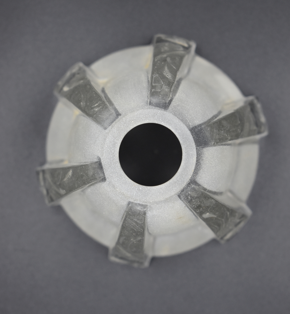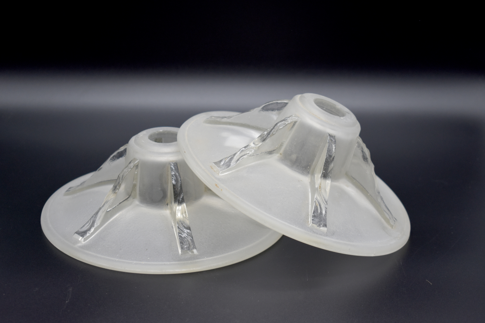 Elements de suspension en verre moulé partiellement dépoli comprenant une vasque, deux coupelles et une tulipe (petites égrenures). Vers 1930.