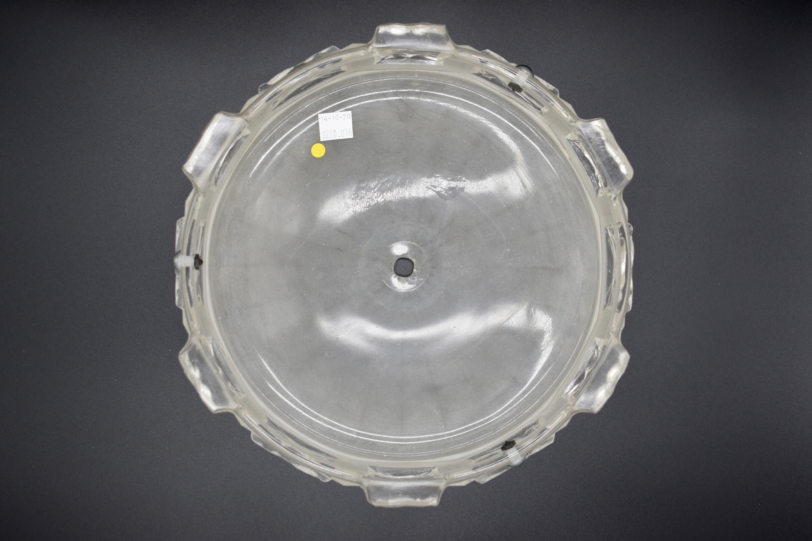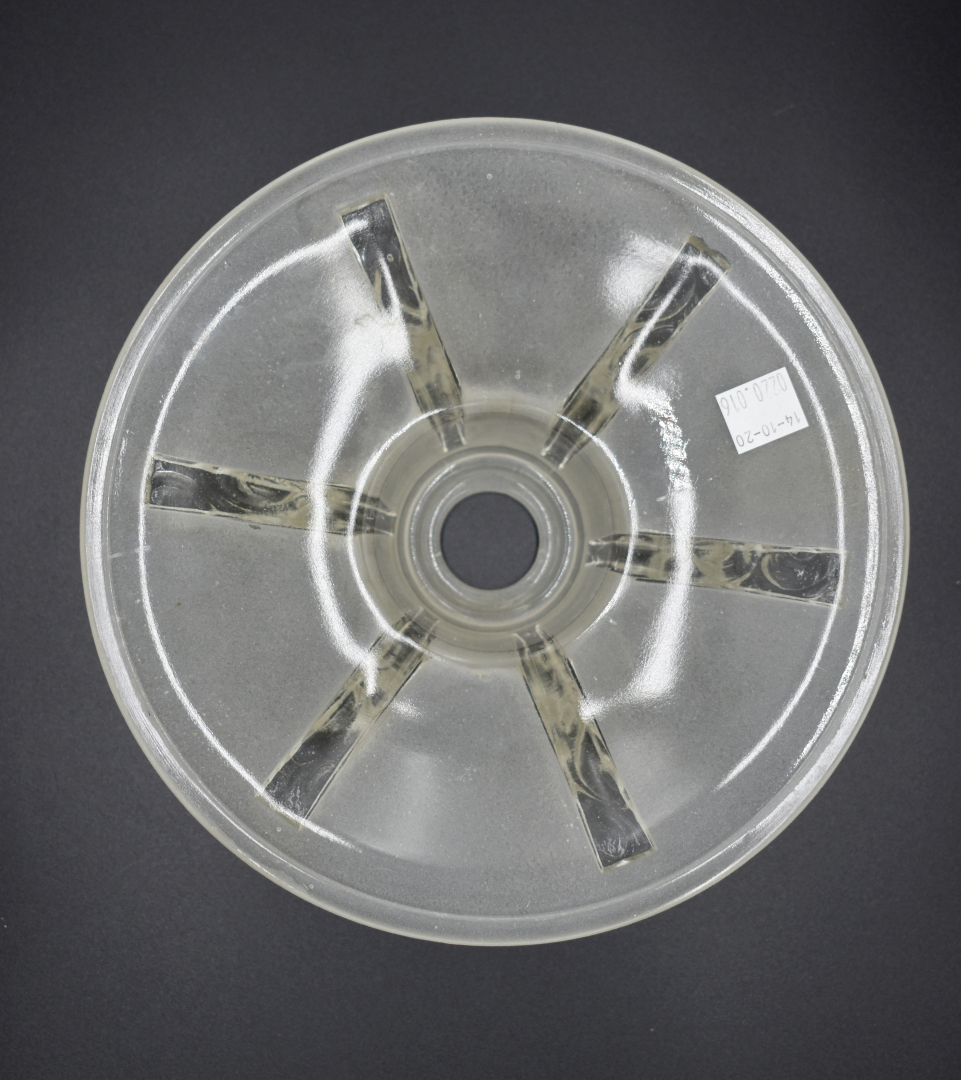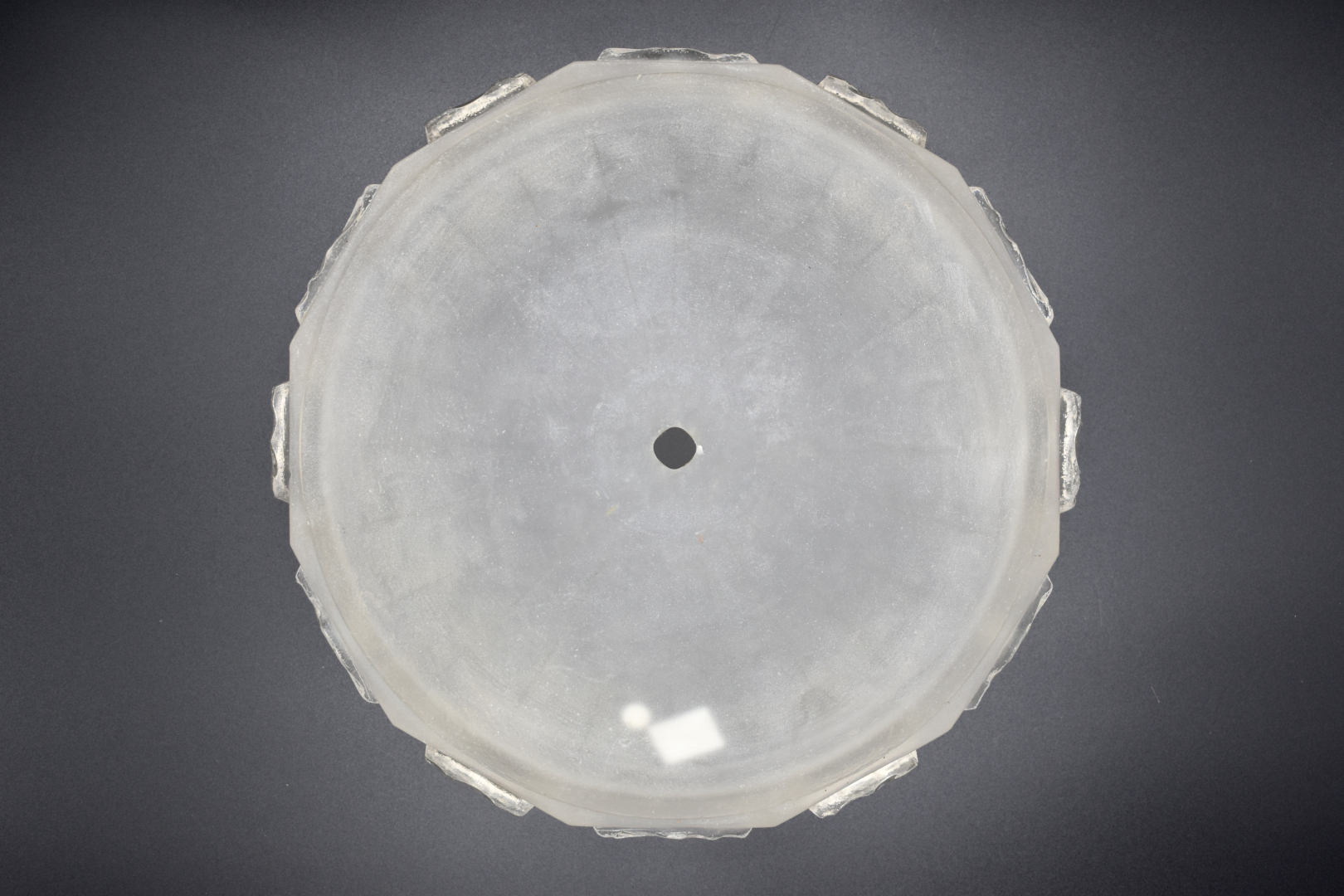 Elements de suspension en verre moulé partiellement dépoli comprenant une vasque, deux coupelles et une tulipe (petites égrenures). Vers 1930.