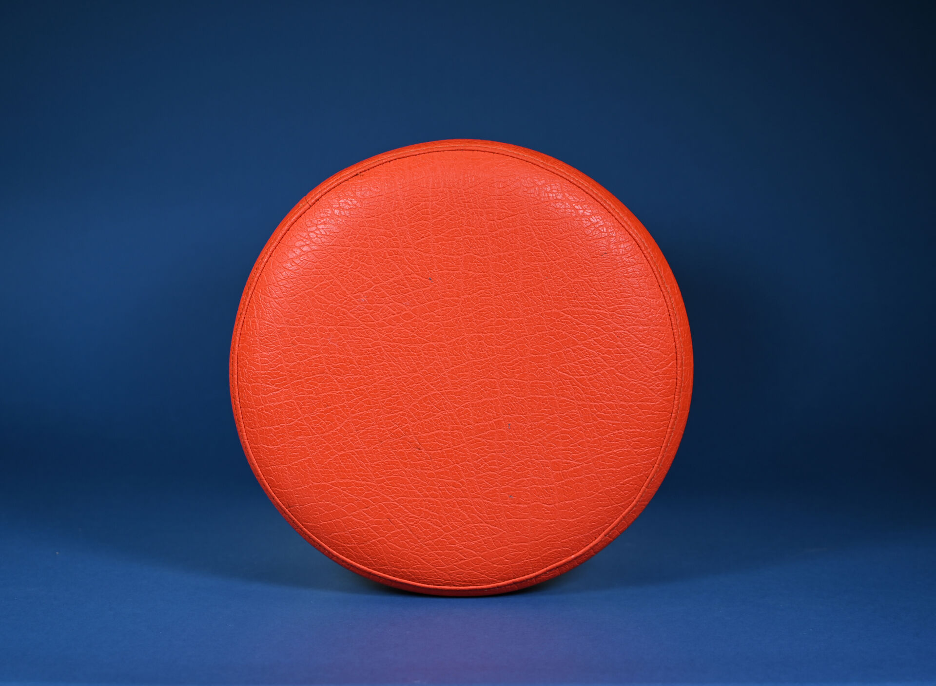 EMSA HOCKER. Tabouret en plastique blanc à pied tulipe blanc. Garniture de skaï orange (usures et frottements sur l’ensemble). Travail des années 1970. Haut. : 48 cm.