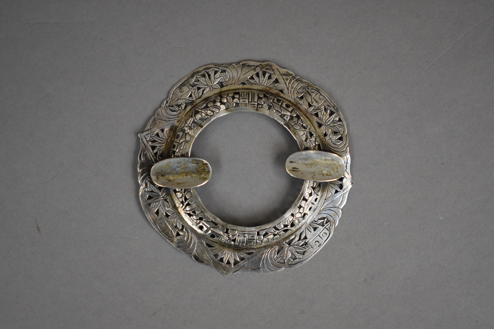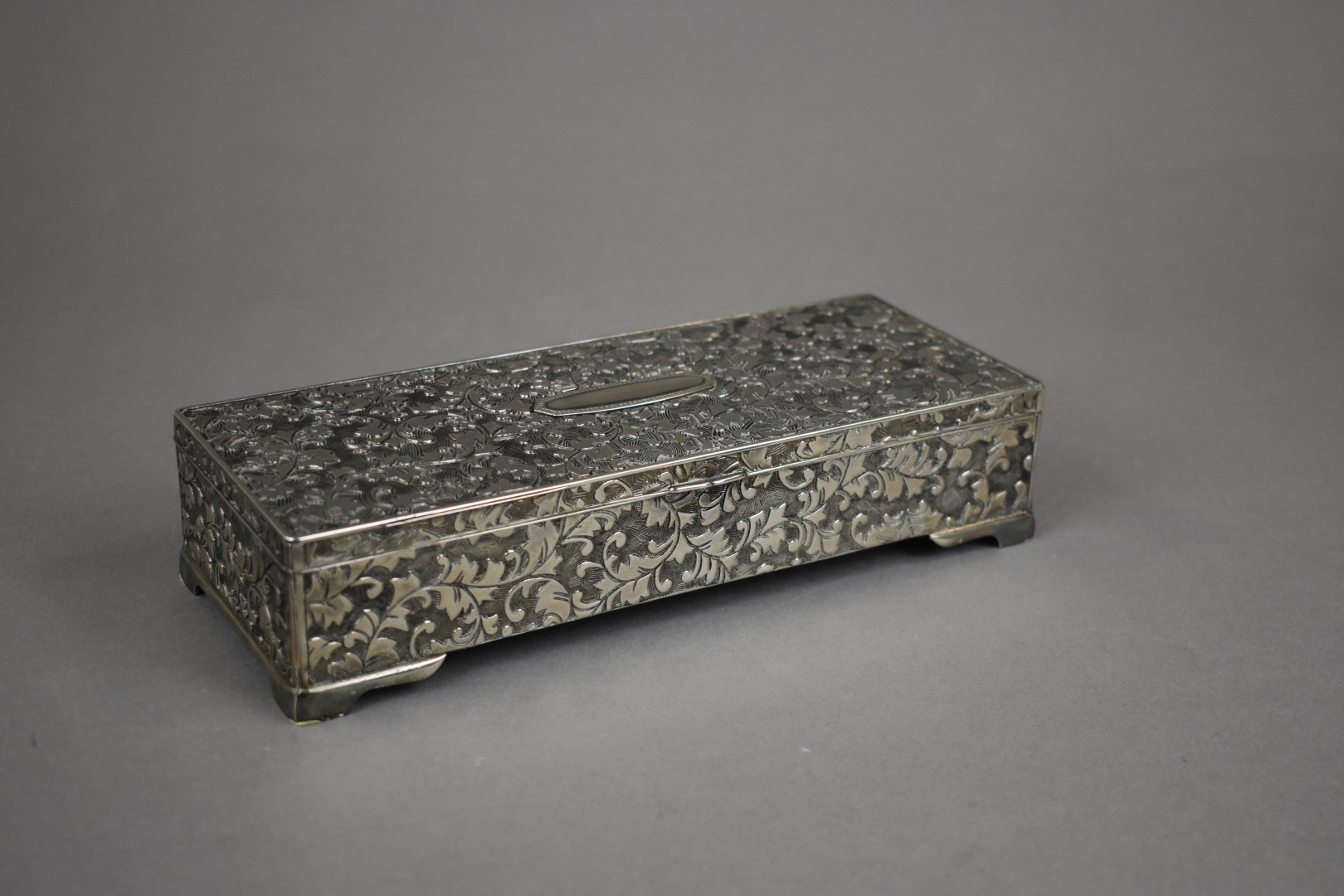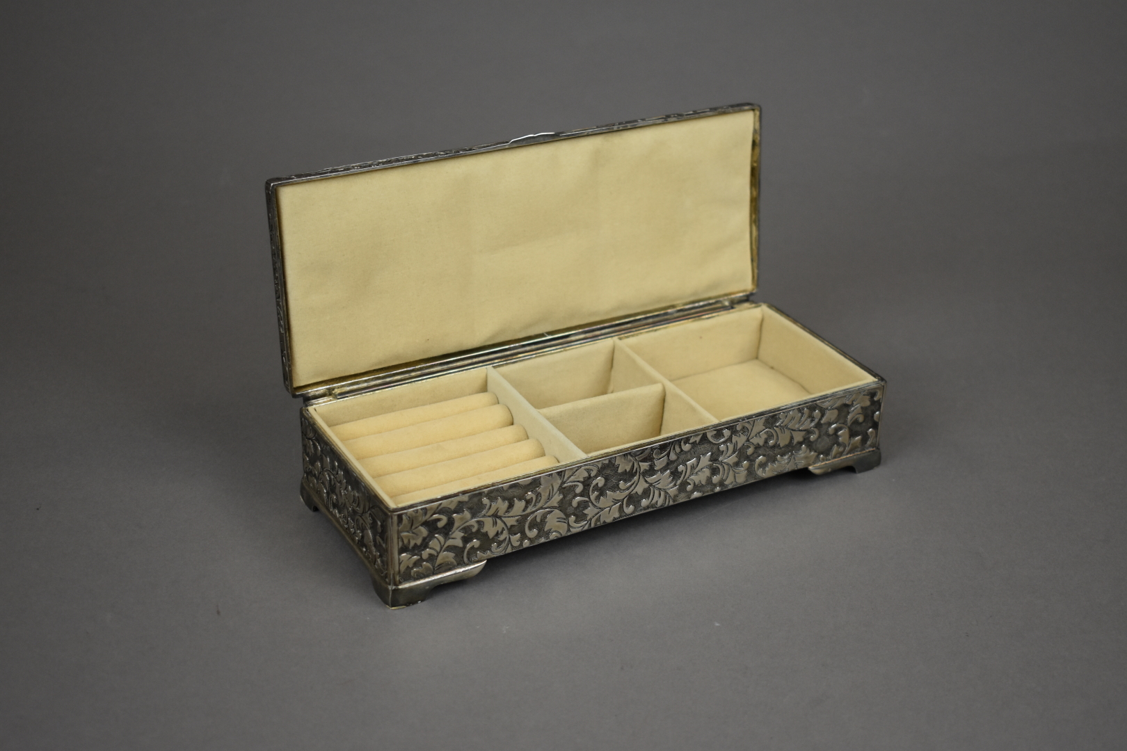 Ensemble comprenant douze repose-baguettes en argent 850/1000e (haut des personnages : 4,8 cm), une coupelle de cendrier en argent 850/1000e. poids total: 293g. On joint deux flacons à bouchons en métal argenté dont un signé GALLIA et un coffret en métal argenté dans le goût perse.