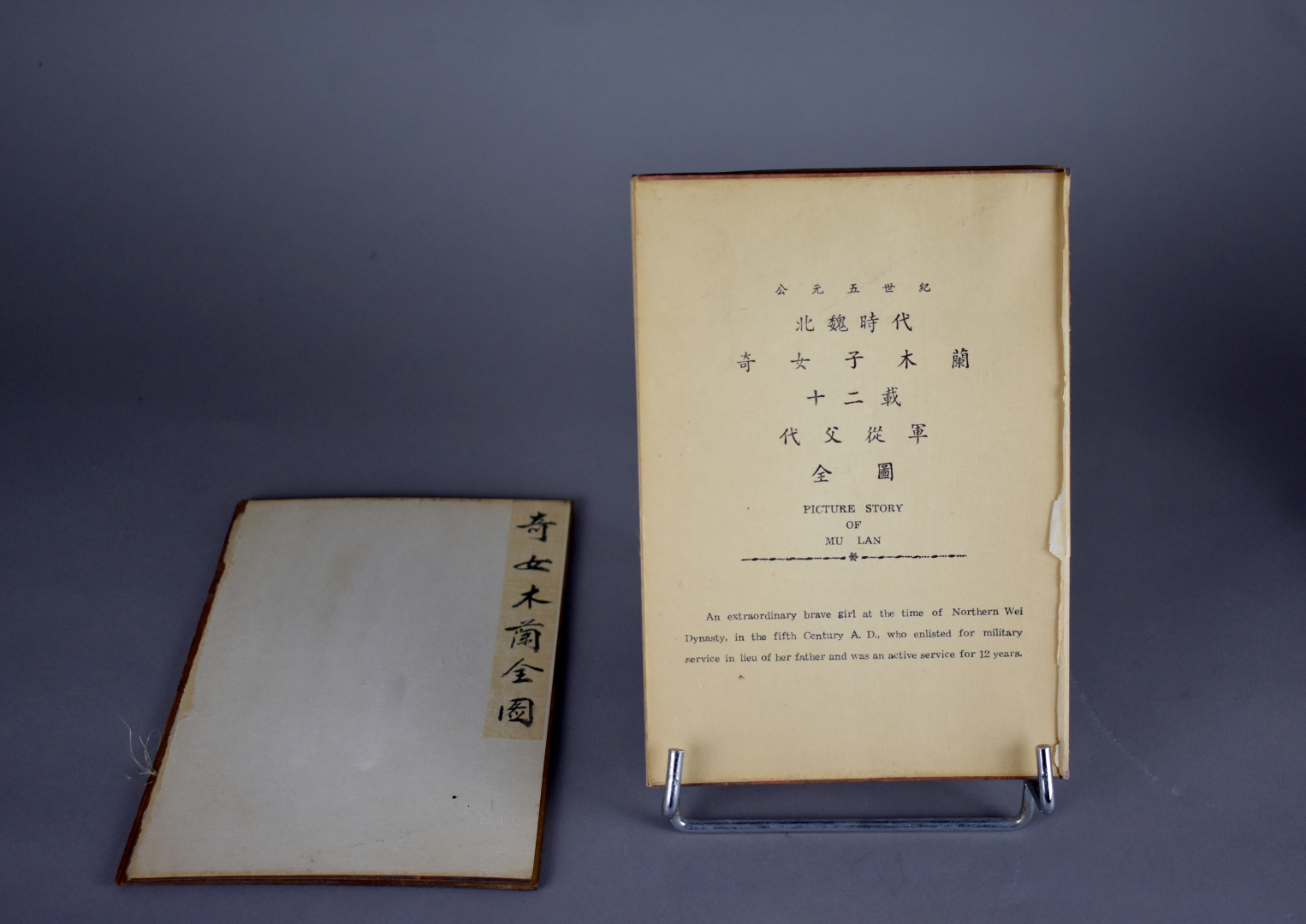 Ensemble comprenant un livre «La flûte de Jade», ou autre «Les histoires de Mulan». Chine, XXe siècle.