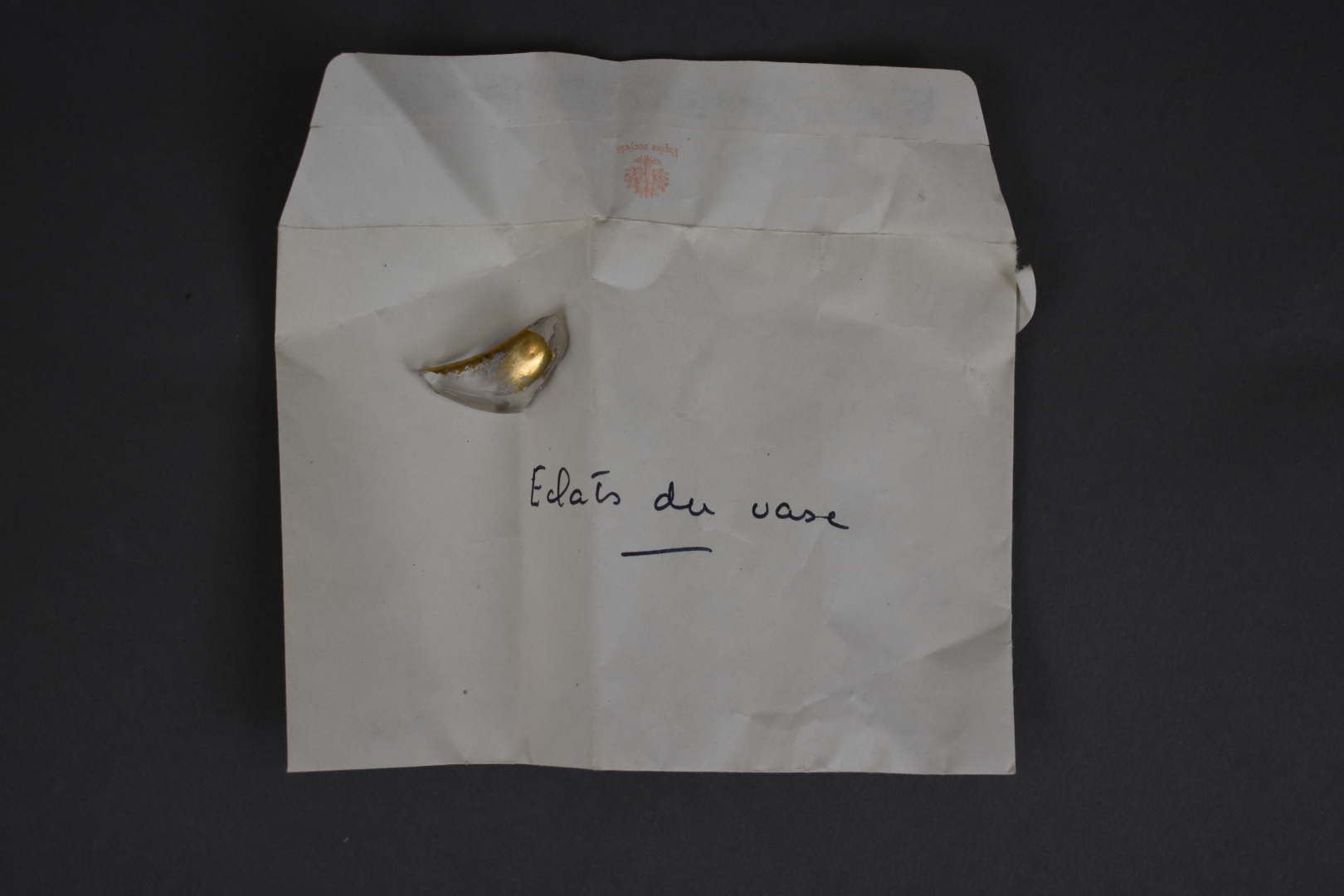 Ensemble comprenant un vase cornet en verre Attribué à Legras à décor polychrome émaillé de fleurs de chrysanthèmes (un accident au col). Haut. : 42,5 c.et deux lampes à pétrôle, les fûts en céramique, l’une émaillée jaune à décor de fleurs, l’autre émaillée rouge (usures). Fin du XIXe siècle.