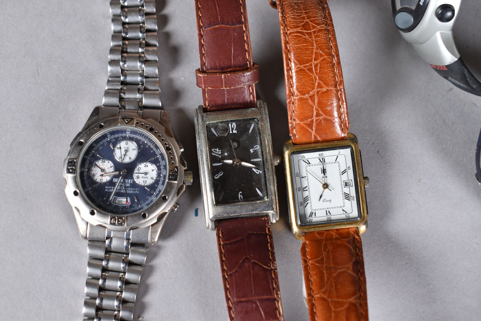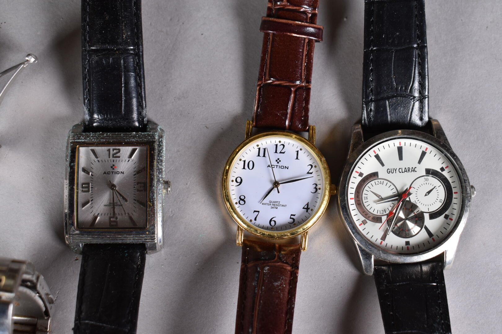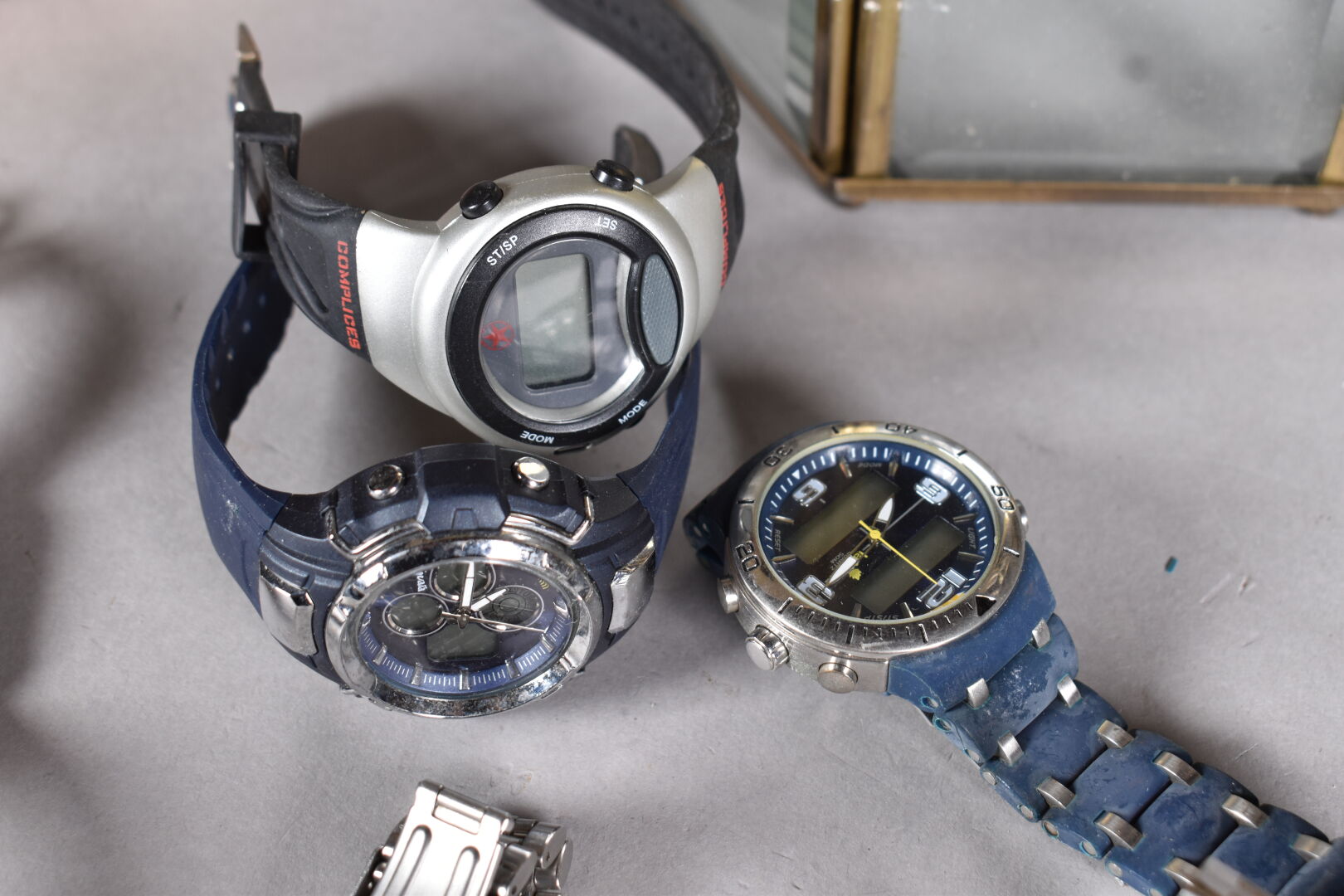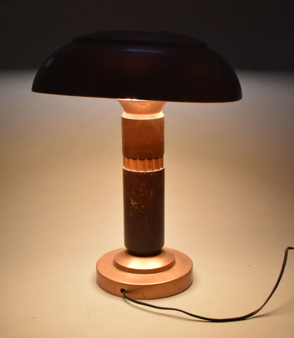 Ensemble comprenant une lanterne en laiton, un chandelier en métal laqué crème et une lampe de bureau en cuivre. On joint un lot de montres. Haut. de la lampe : 43,5 cm.