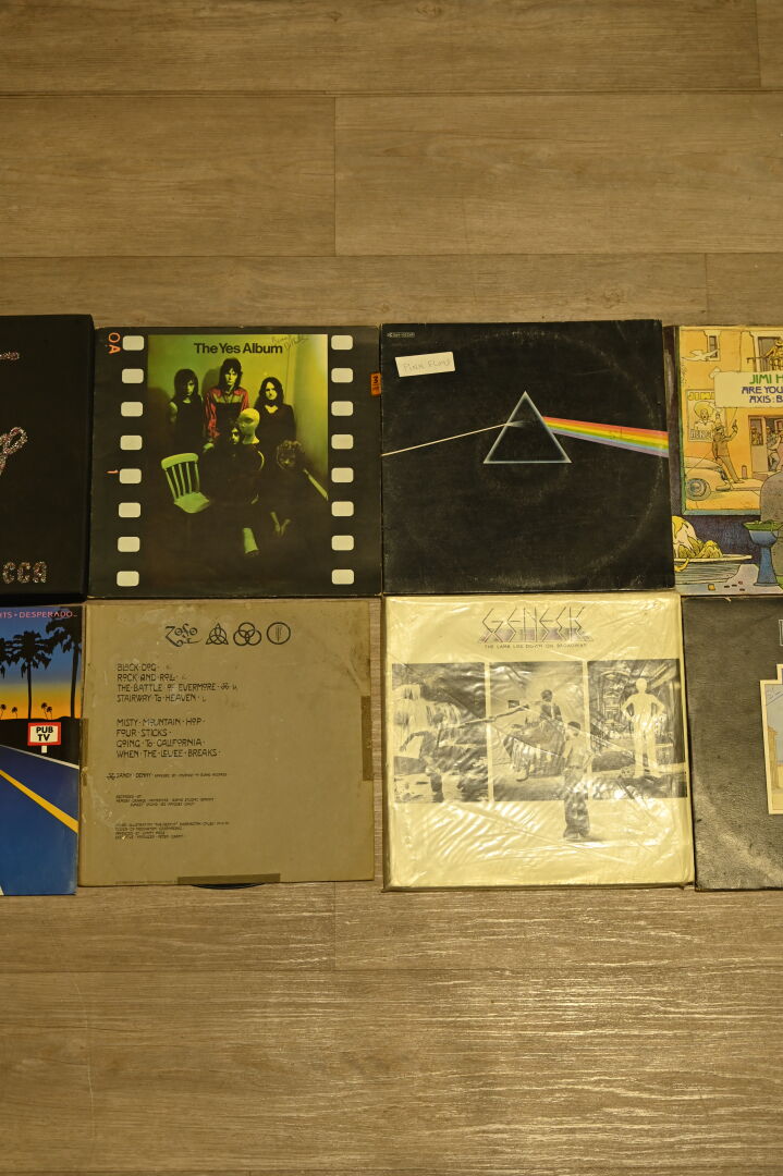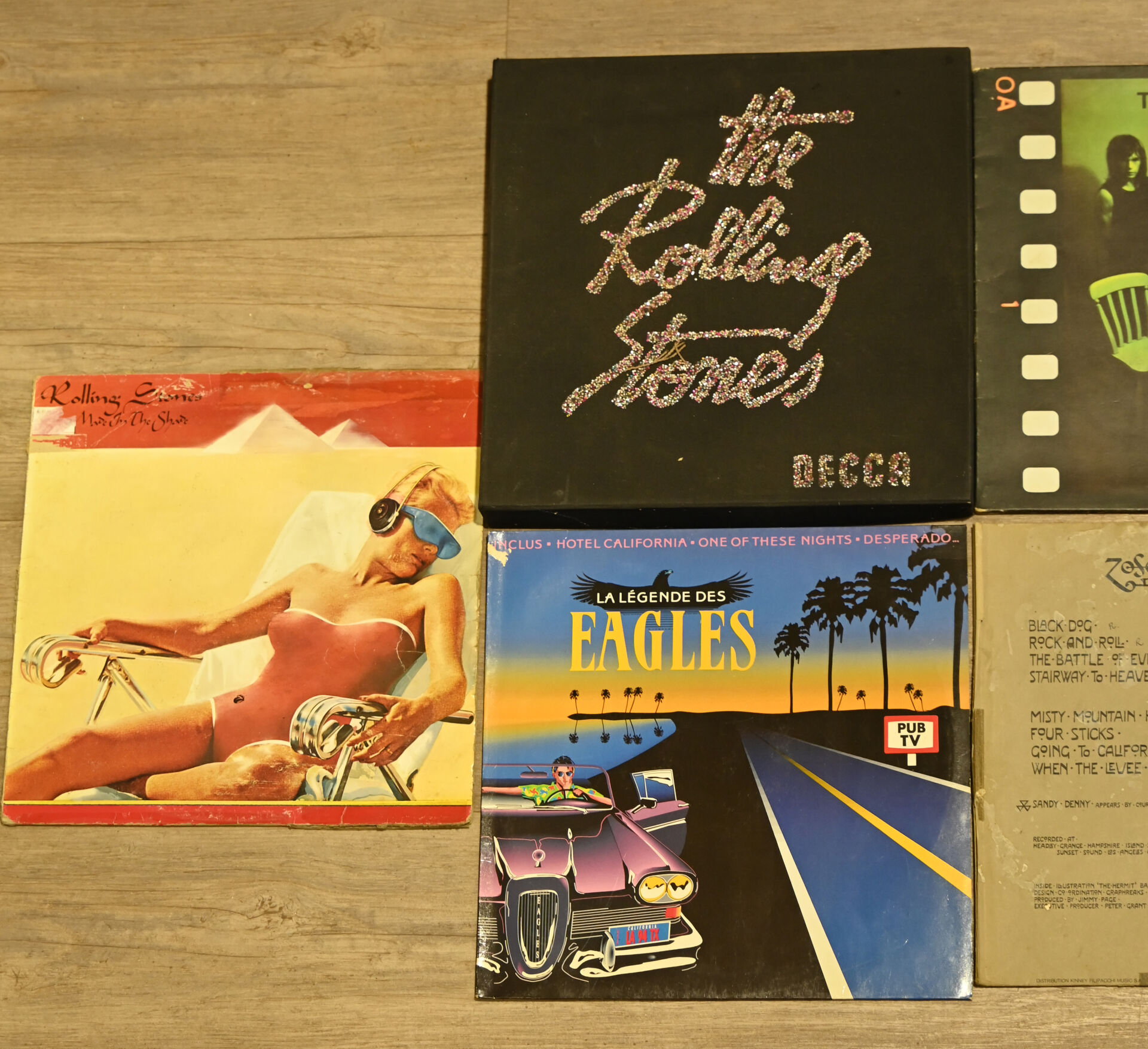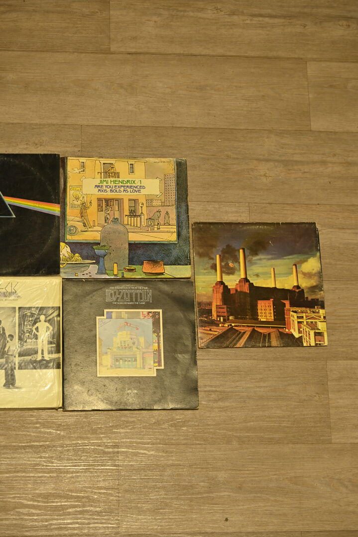 Ensemble de 10 disques vinyles (certains doubles) 33 tours dont PINK FLOYD , Jimmy HENDRIX, EAGLES, GENESIS, LED ZEPPPELIN (état d’usage).