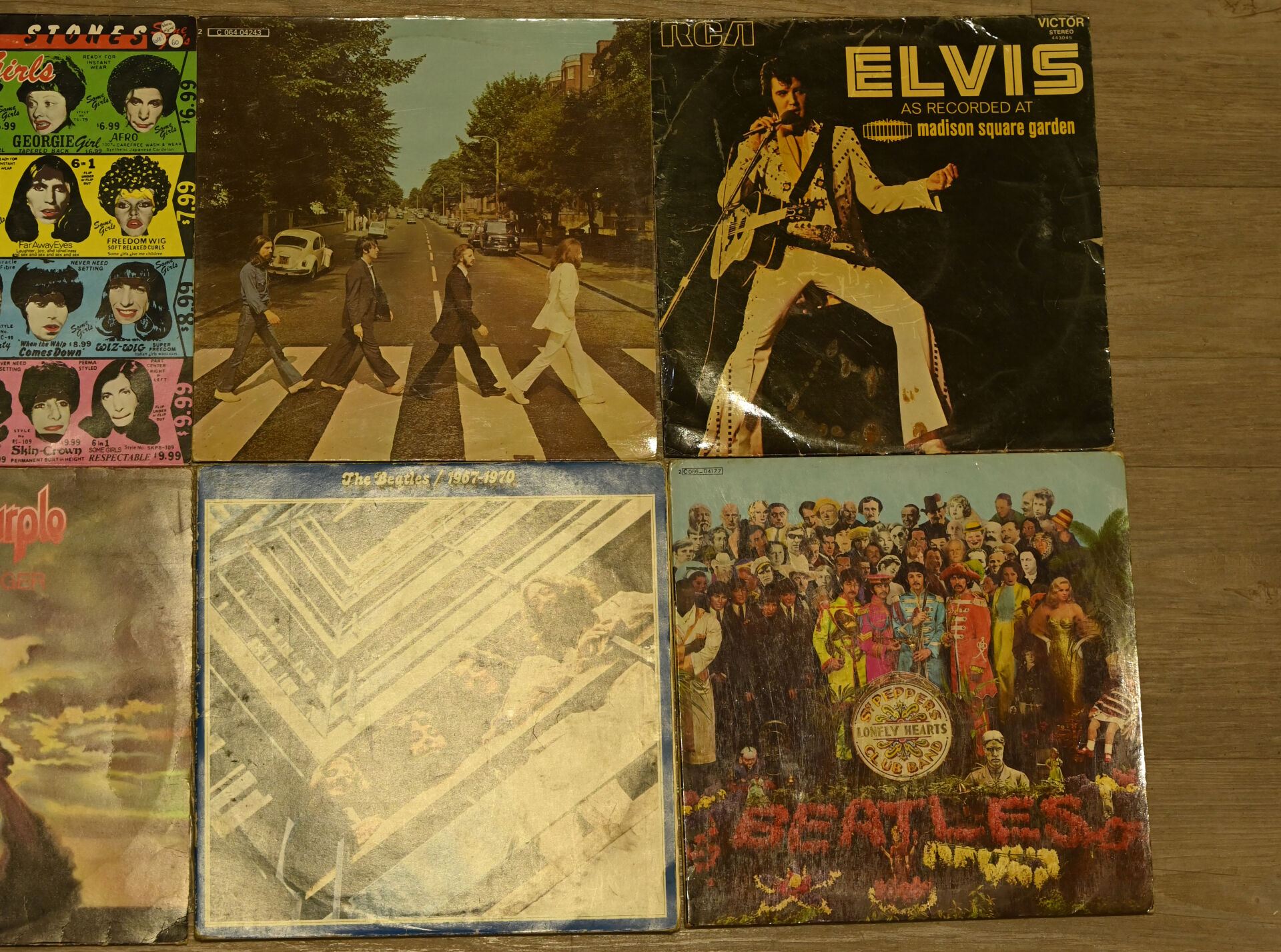 Ensemble de 10 disques vinyles (certains doubles) 33 tours dont PINK FLOYD , Jimmy HENDRIX, EAGLES, GENESIS, LED ZEPPPELIN (état d’usage).