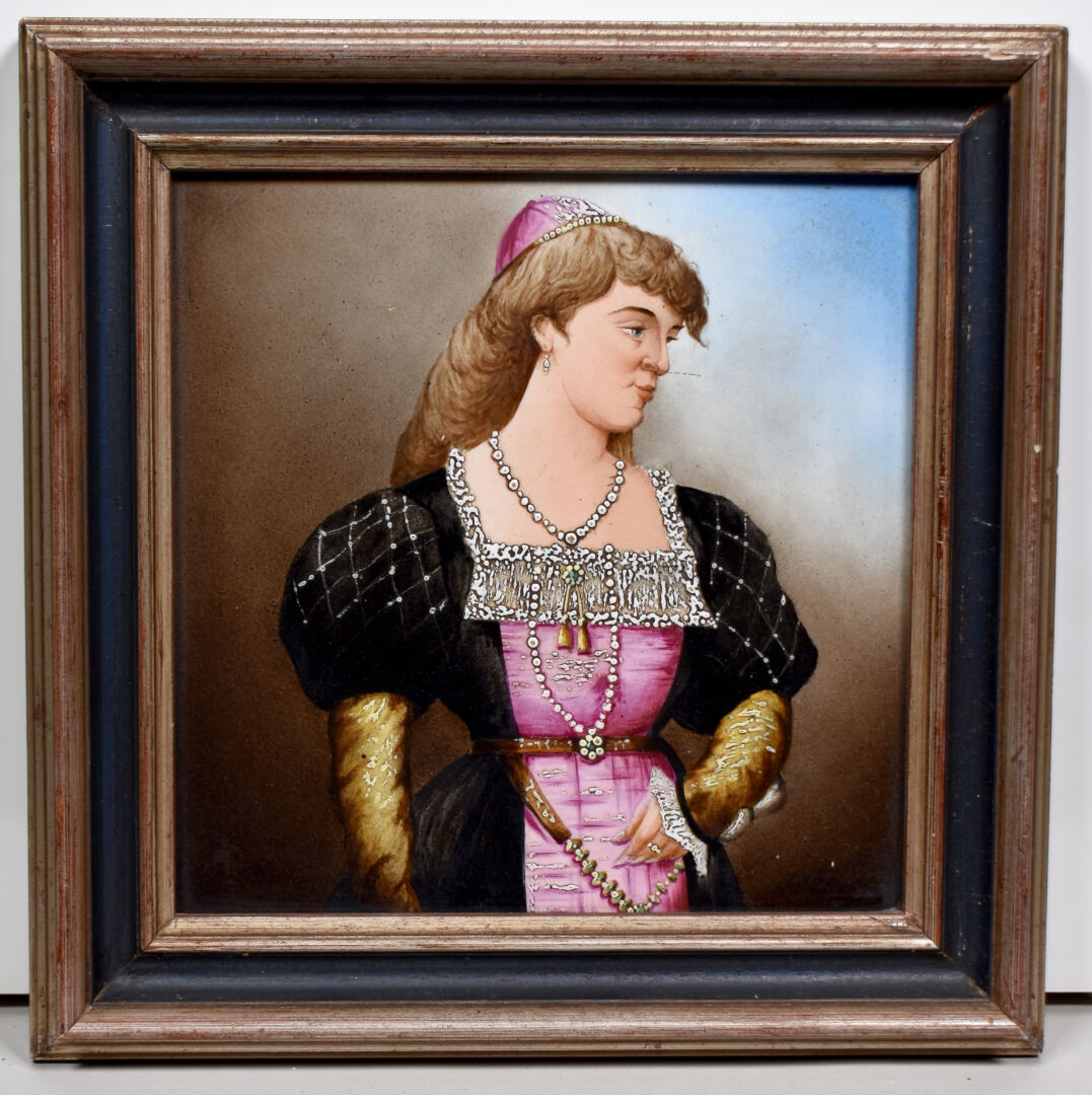 Ensemble de 10 pièces encadrées et une toile, principalement des reproductions, photographies et gravures ainsi qu’une plaque de porcelaine peinte. Dim de la plus grande : 64 x 87 cm (avec le cadre).