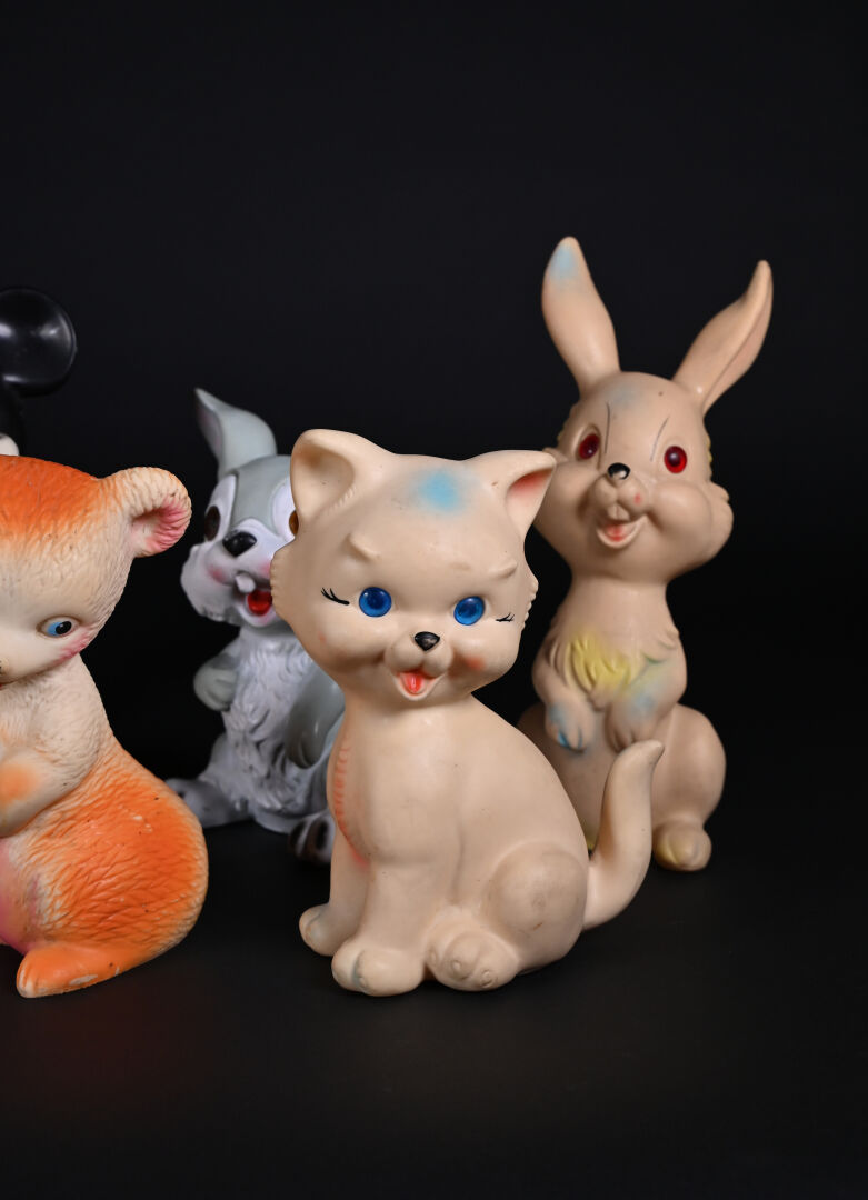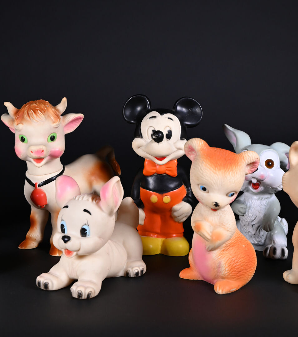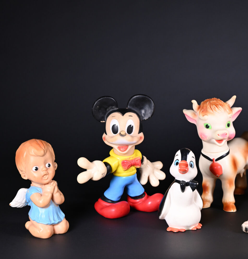 Ensemble de 10 Pouet pouet en plastiques dont Mickey, Lapin, chien et divers.