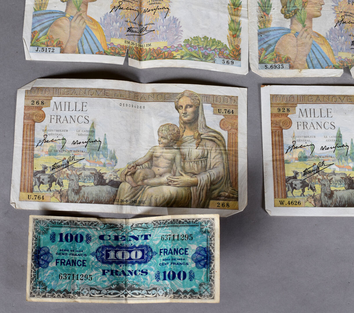 *Ensemble de 11 billets d’anciens francs dont 500 Francs Cérès.