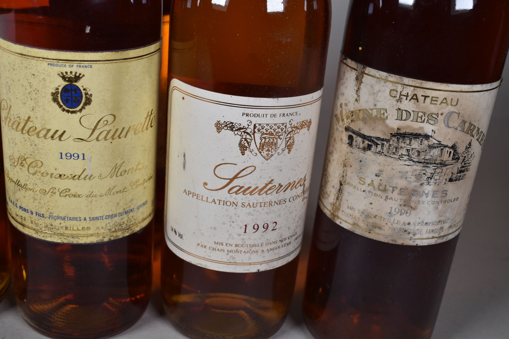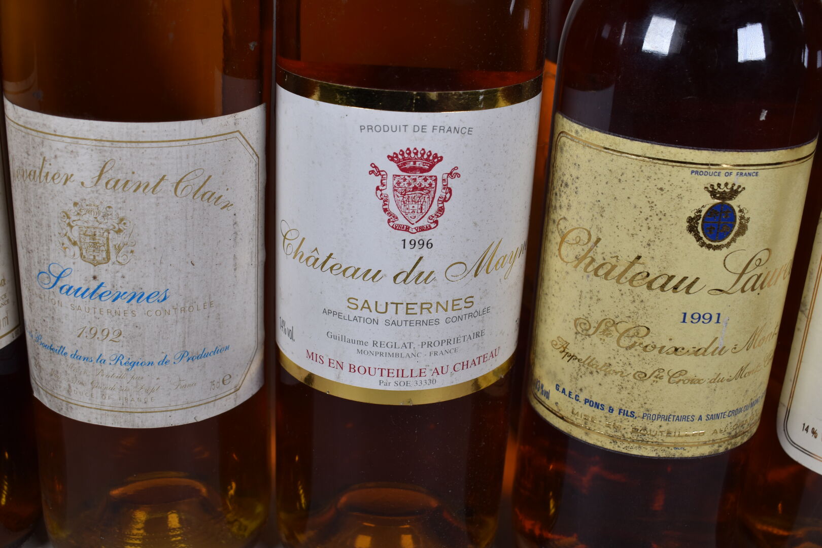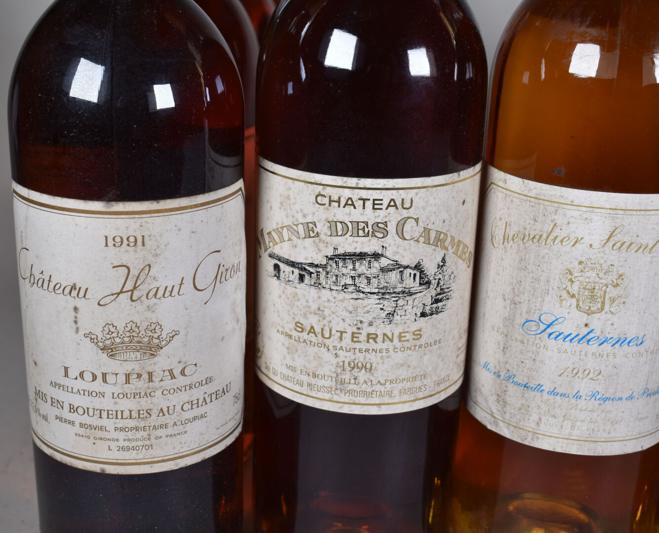 Ensemble de 12 bouteilles blanc liquoreux soit 3 CHATEAU LAURETTE Sainte-Croix Du Mont 1991, 4 CHATEAU HAUT GIRON Loupiac 1991, 2 CHATEAU MAYNES DES CARMES Sauternes 1990, 1 CHATEAU DU MAYNE Sauternes 1996, 1 CHEVALIER SAINT CLAIR Sauternes 1992, 1 Sauternes 1992. Niveaux bas goulot – Haute épaule.