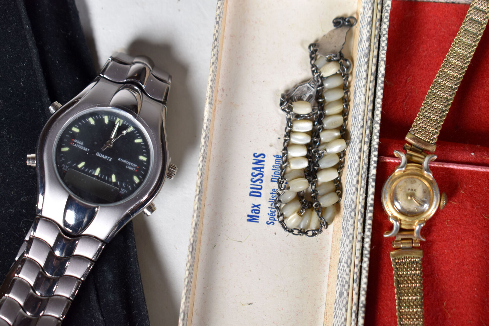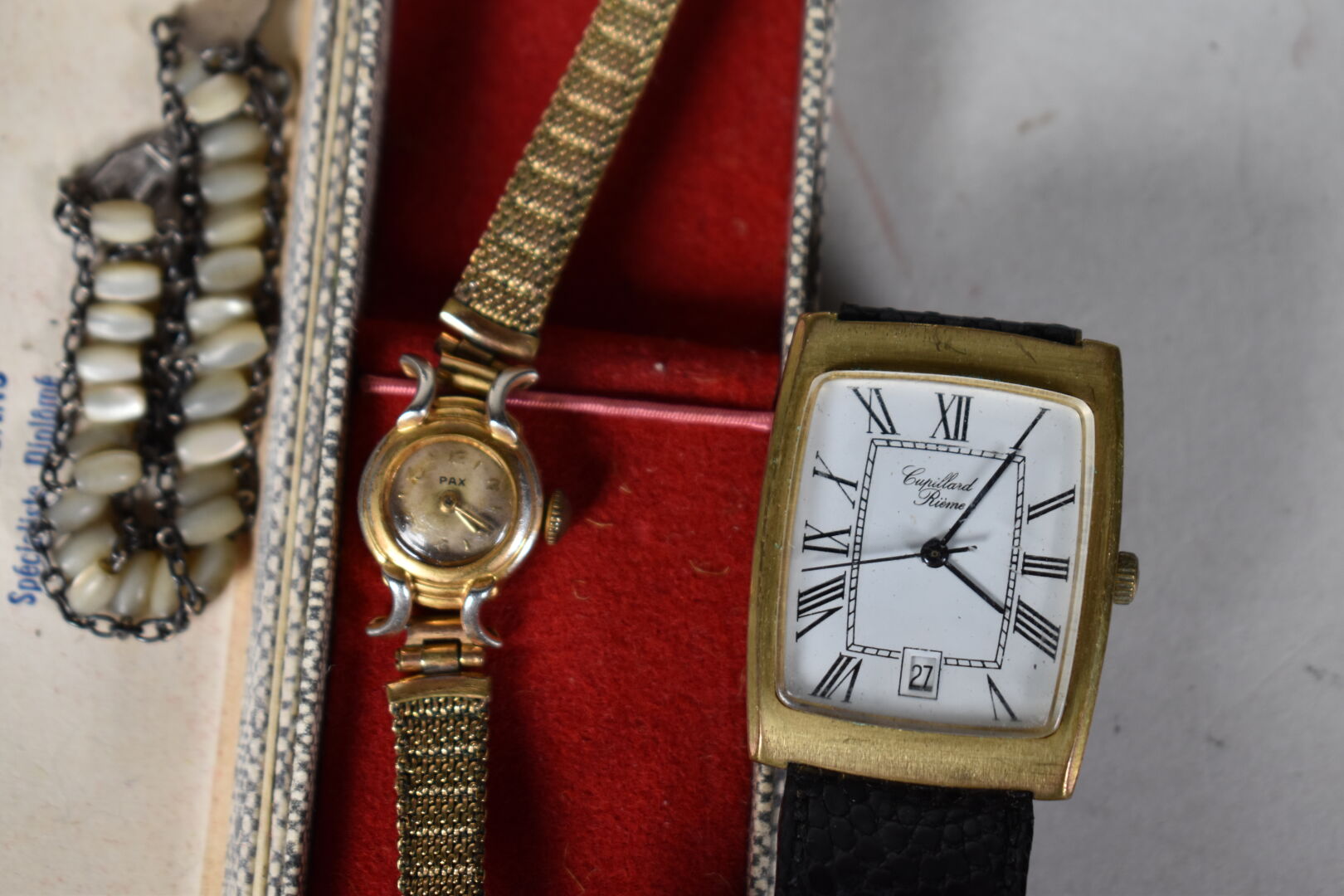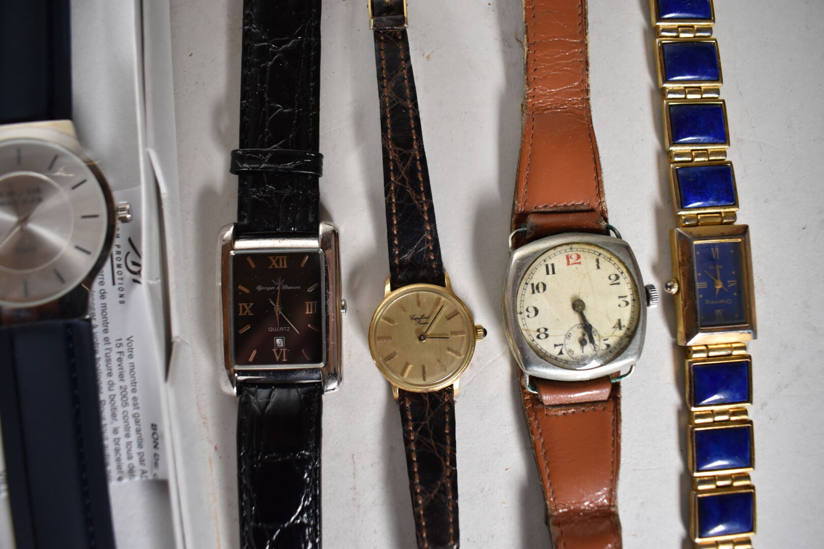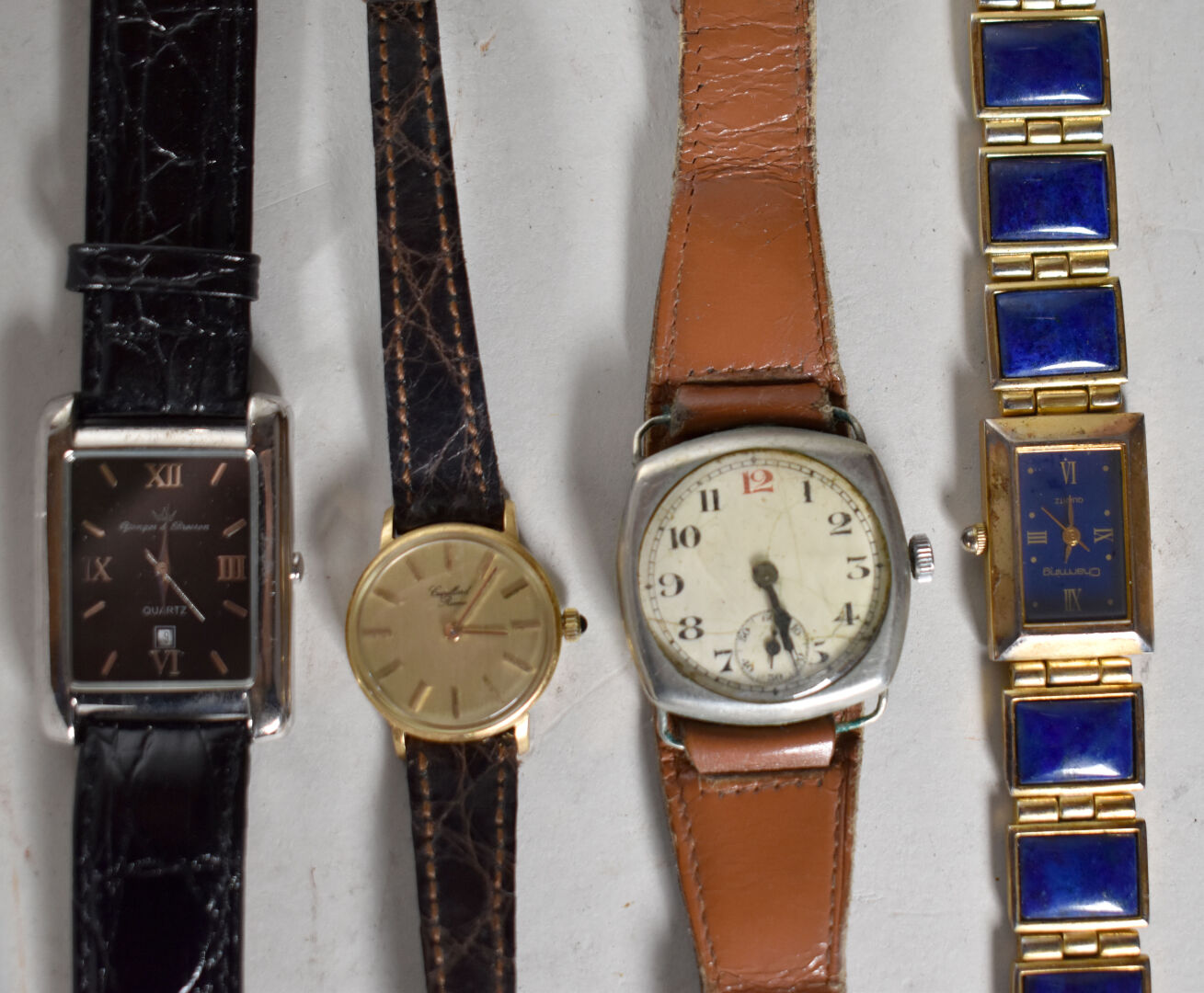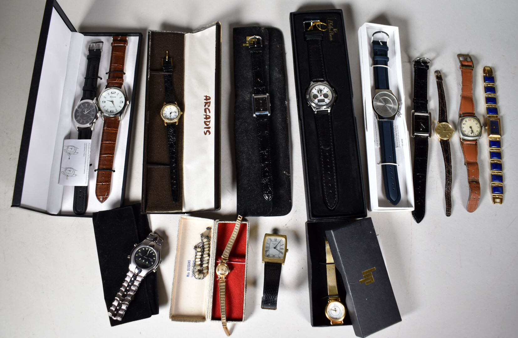 Ensemble de 14 montres bracelet dont LIP, PAX et divers. Métal doré, acier et métal (état d’usure). Certaines avec boîtes.