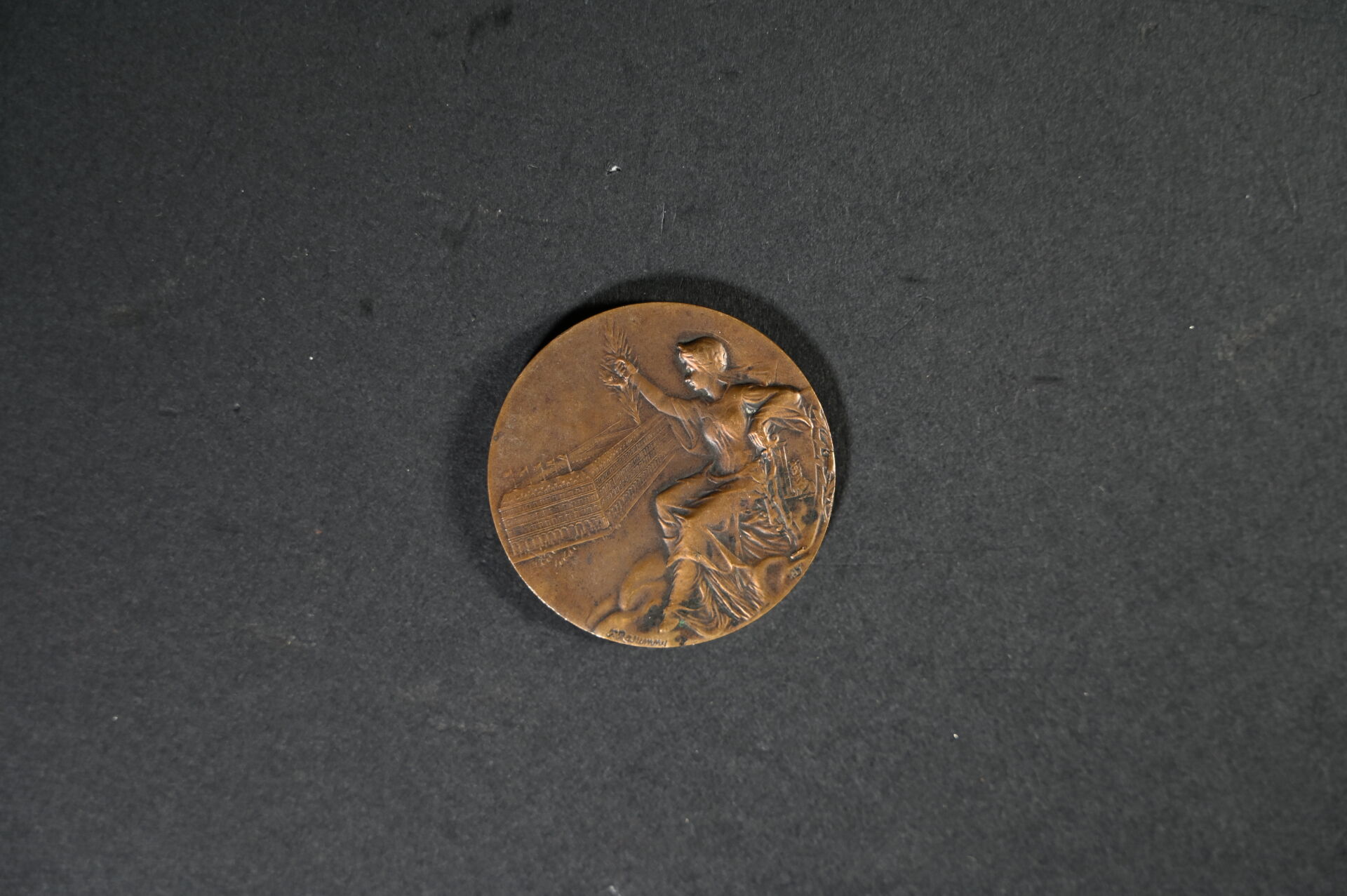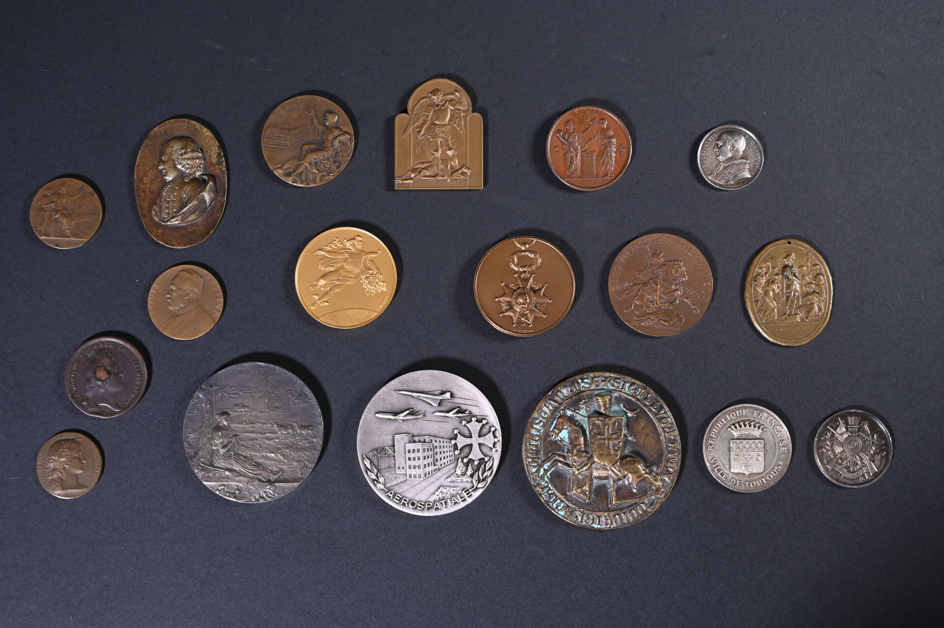 Ensemble de 18 médailles et plaques en bronze, cuivre et métal.