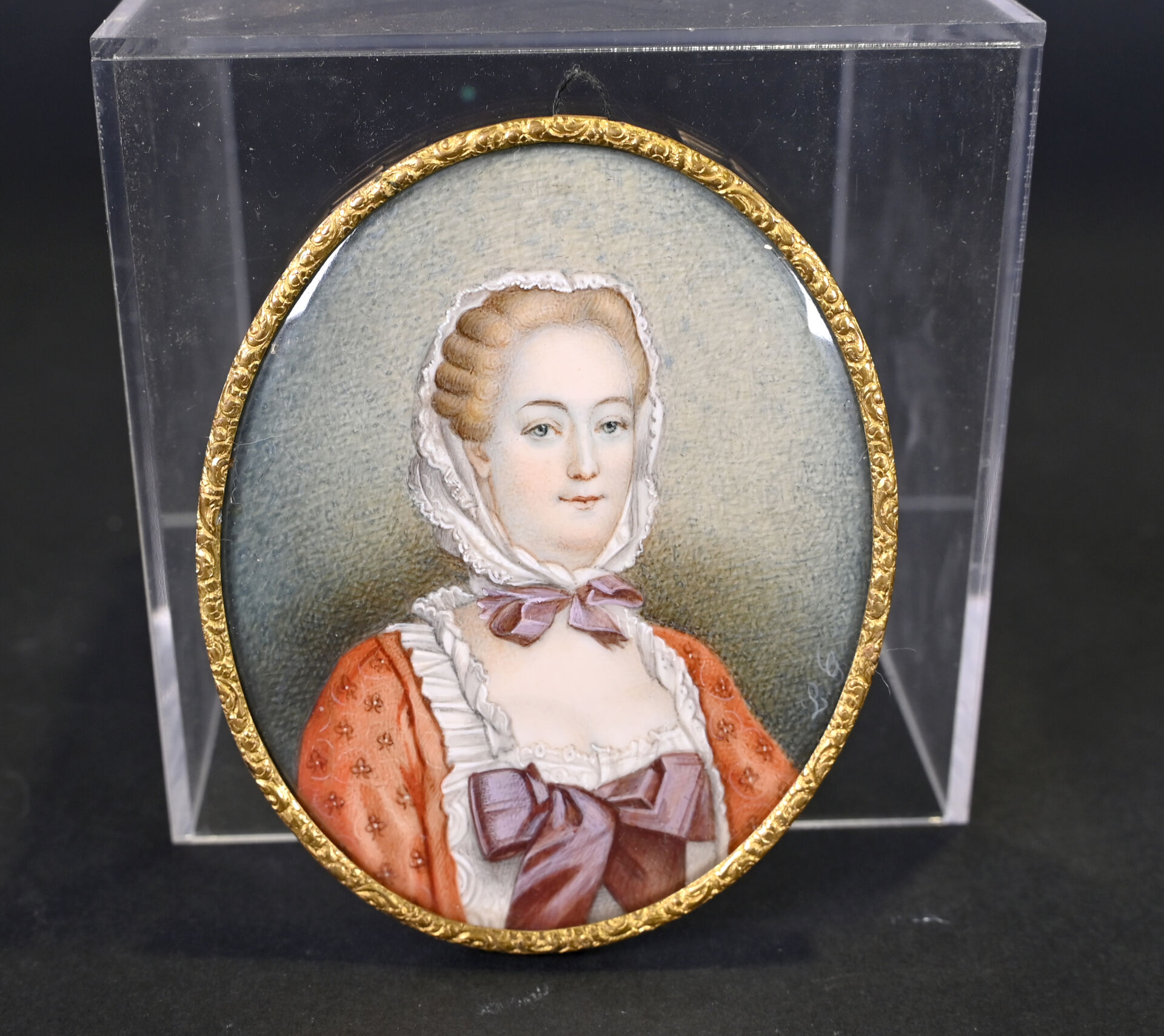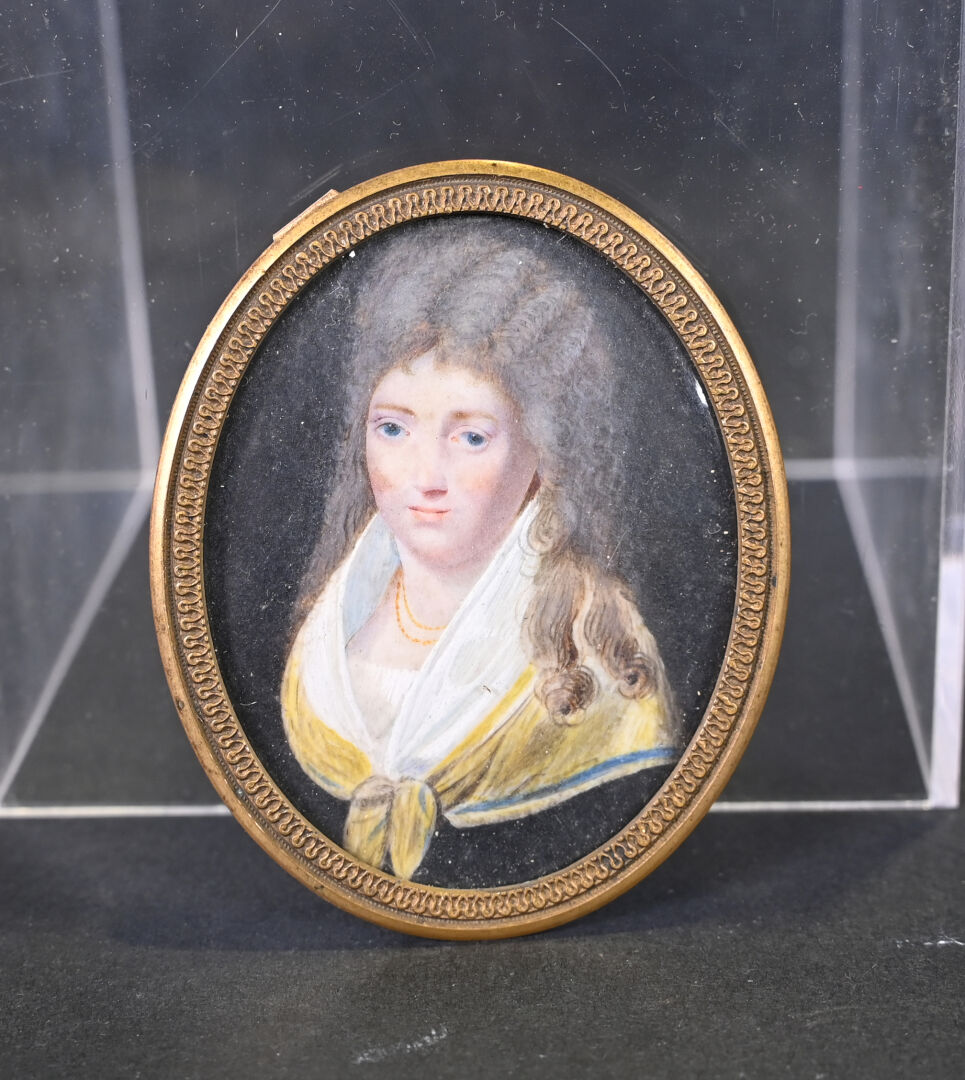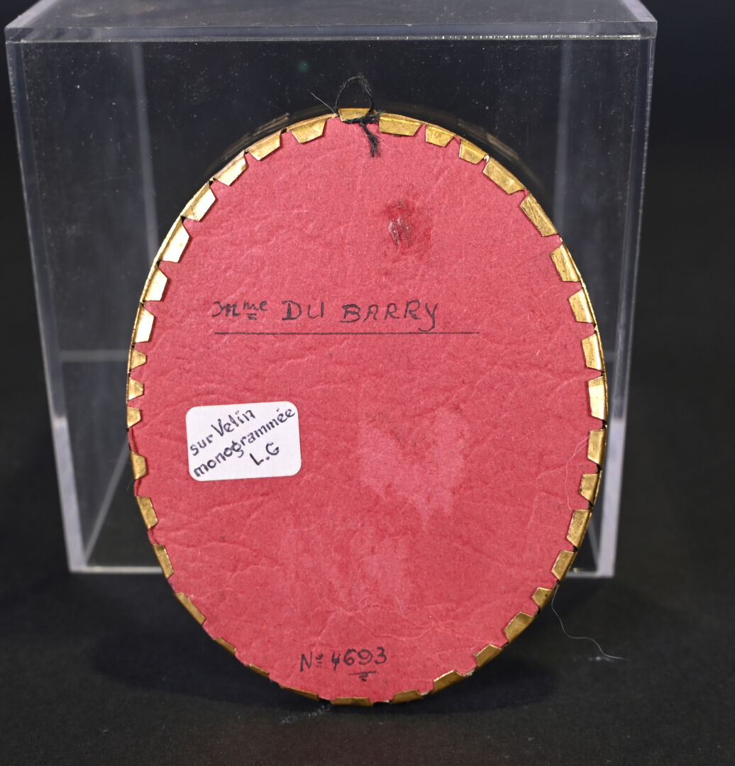 Ensemble de 2 miniatures, une représentant Madame Du Barry (XXe siècle) et l’autre Lucille DESMOULIN (Fin du XVIIe, début du XIXe siècle). 9,5 x 8 cm et 6 x 4,5 cm à vue.