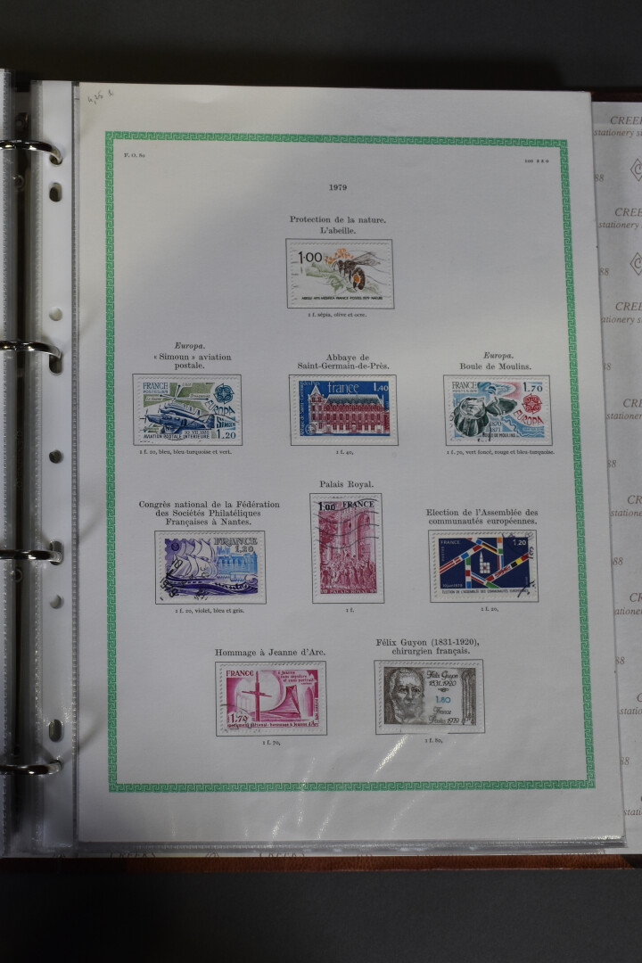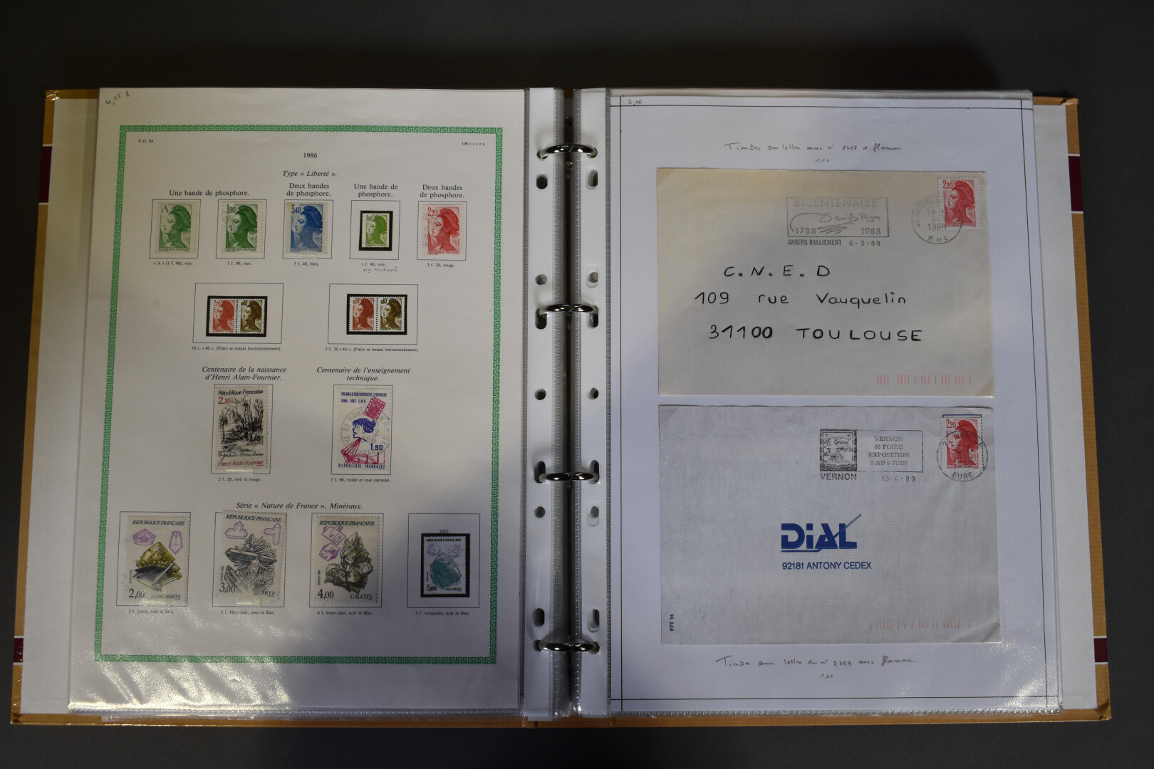 Ensemble de 24 albums de timbres modernes (XXe siècle) dont colonies françaises, Chine, France et quelques-uns XIXe siècle. Enveloppes timbrées, vrac et quelques ouvrages de référence.