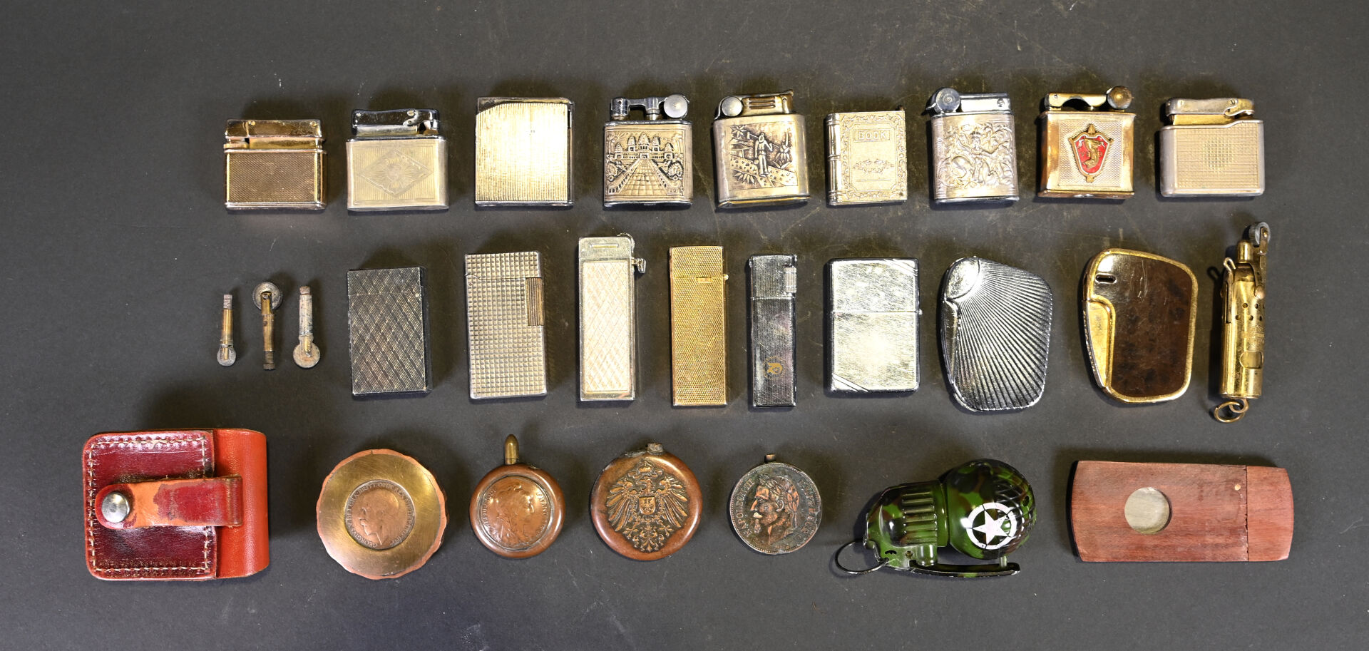 Ensemble de 24 briquets de collection, certains incomplets. XIXe et XXe siècle.
