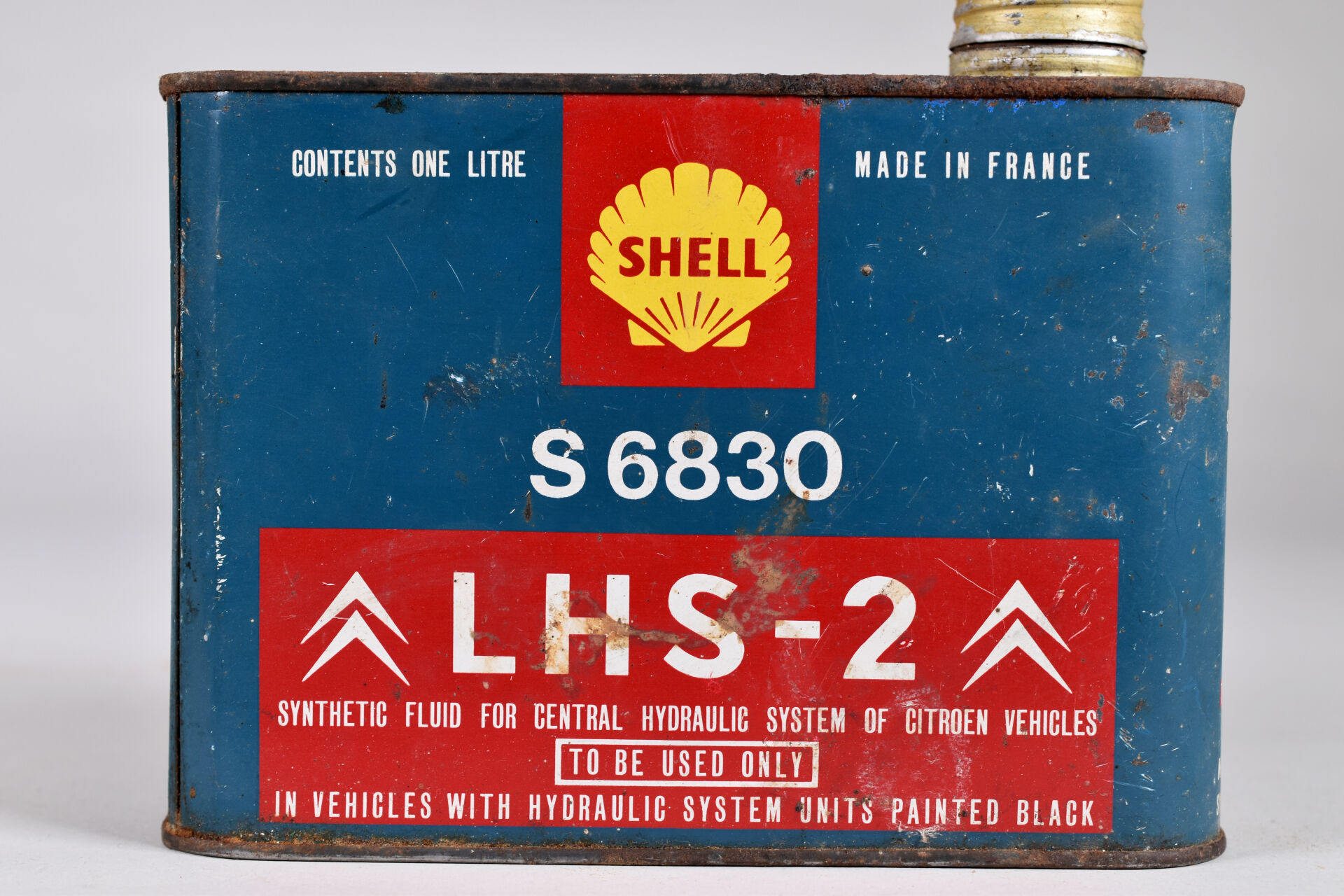 Ensemble de 4 bidons d’huile émaillés et lithographiés soit un FORINDEX, un SHELL X-100, un YACCO, un SHELL LHS-2 (un peu de rouille et d’éclats).