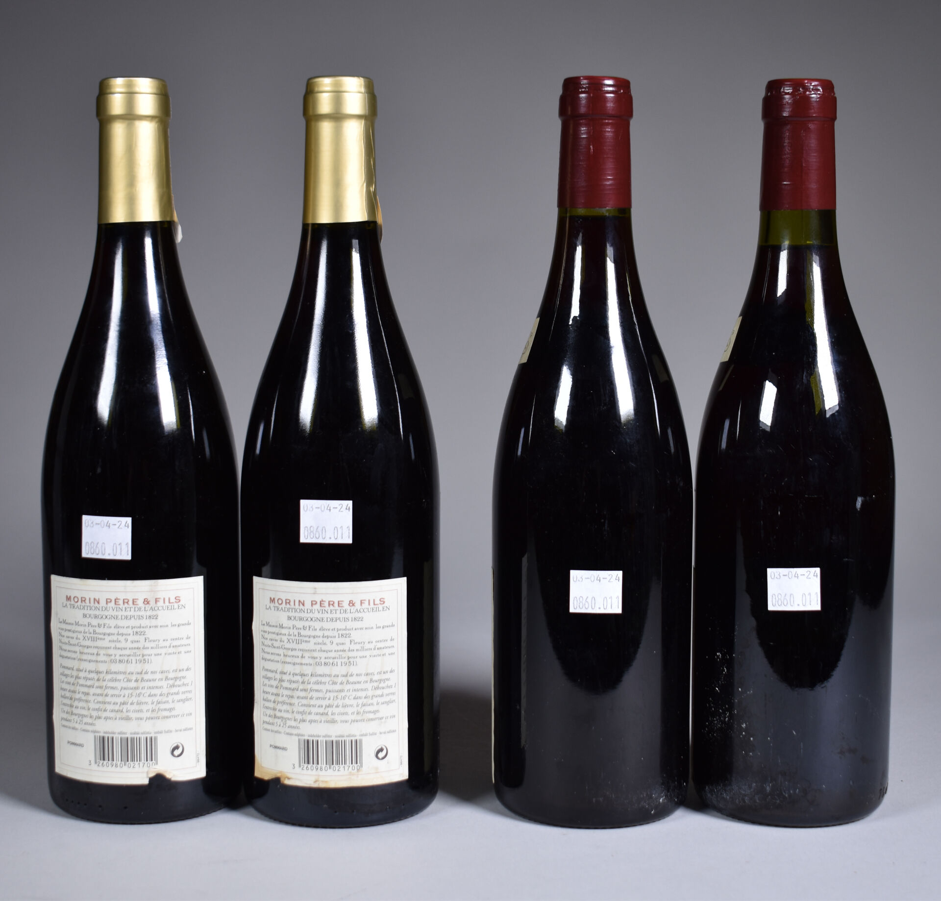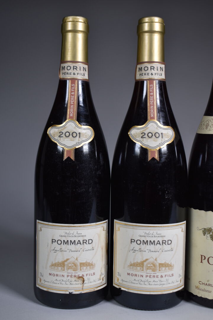 – 2 bouteilles, Pommard, Morin père et fils, 2001. Les étiquettes présentent une petite déchirure dans leur