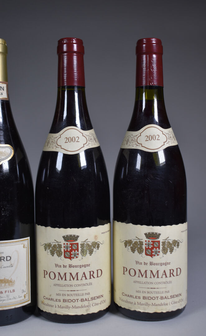 – 2 bouteilles, Pommard, Charles Bidot-Balsemin, 2002. Quelques légères traces sur les étiquettes.