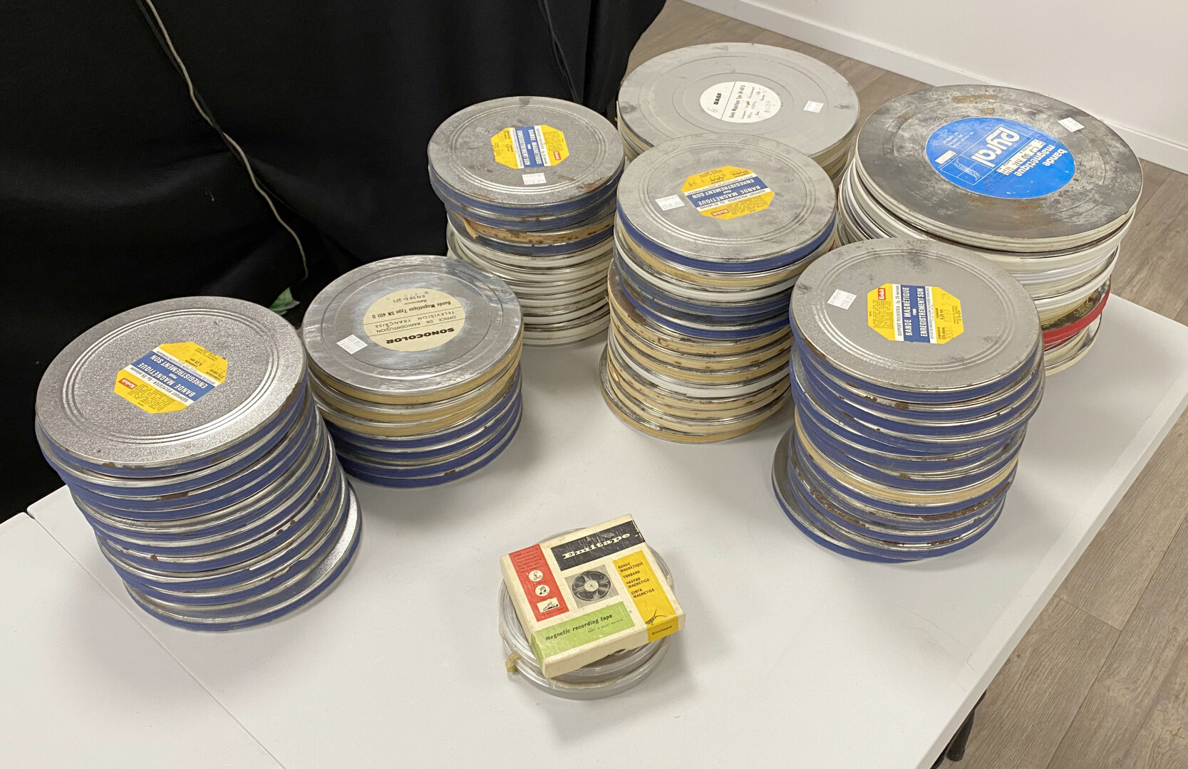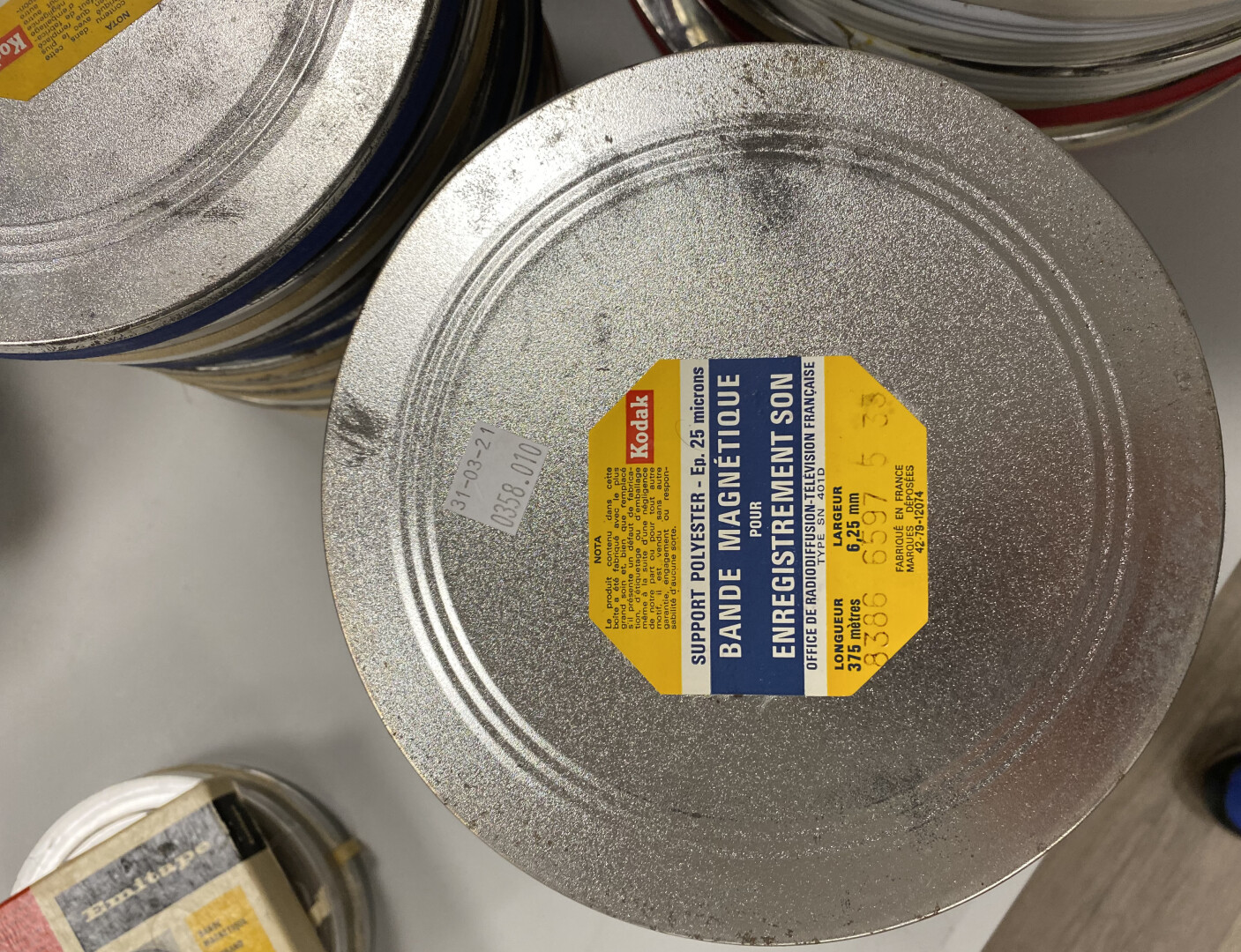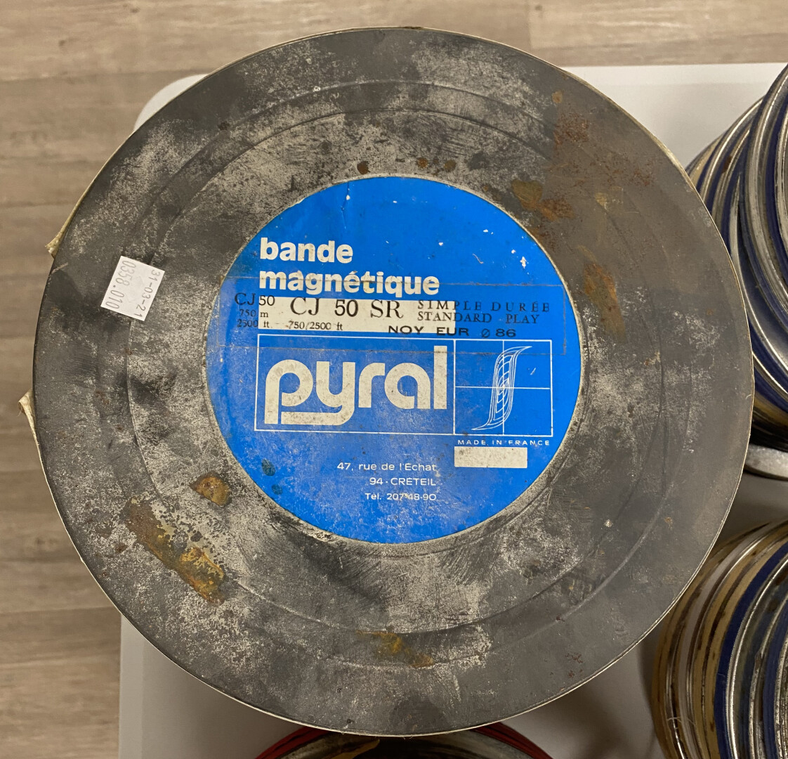 Ensemble de 79 bandes magnetiques SONOCOLOR, PYRAL, KODAK Office de radiodiffusion télévision française, vierges en grande majorité, 3 formats différents.