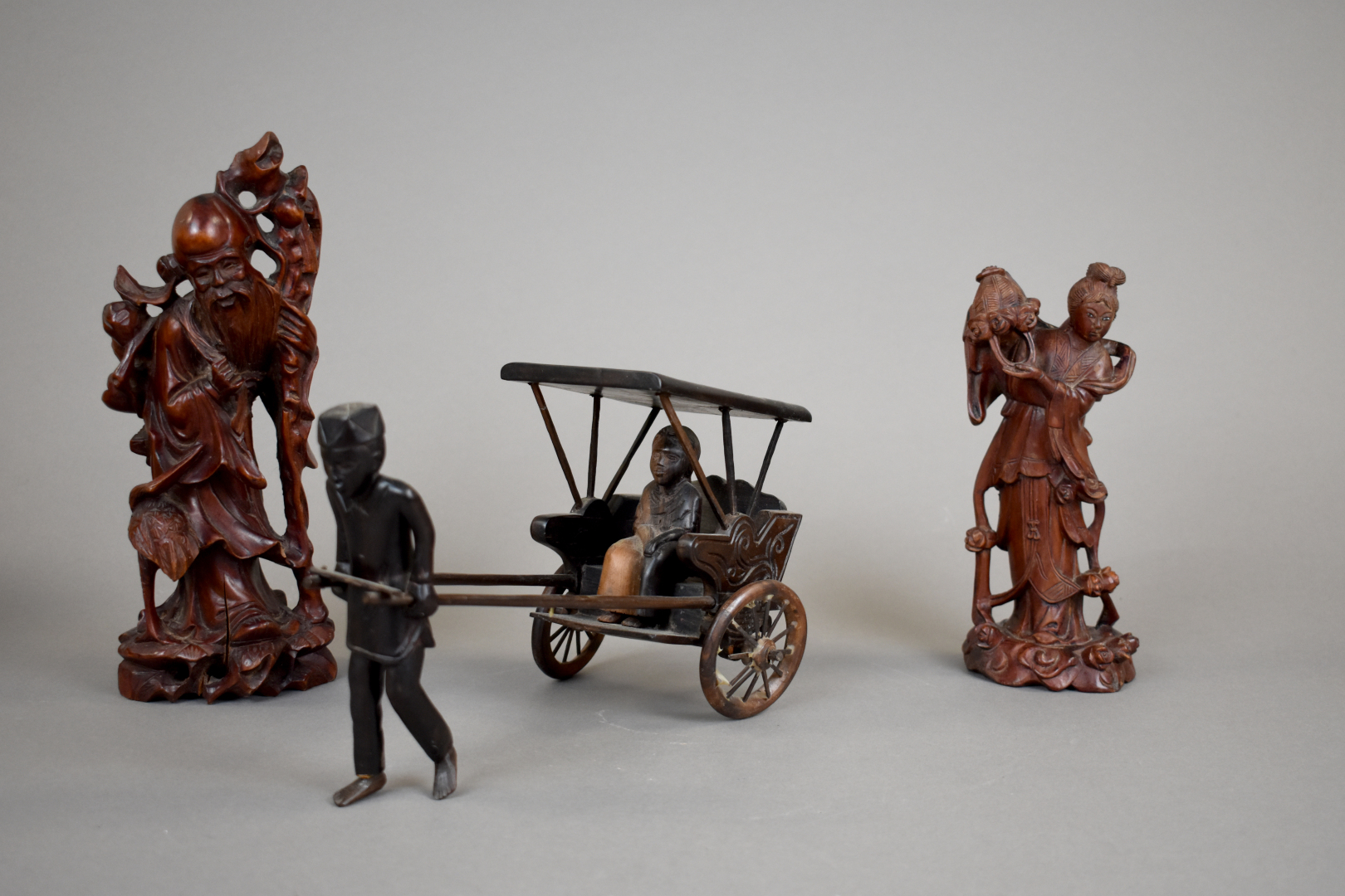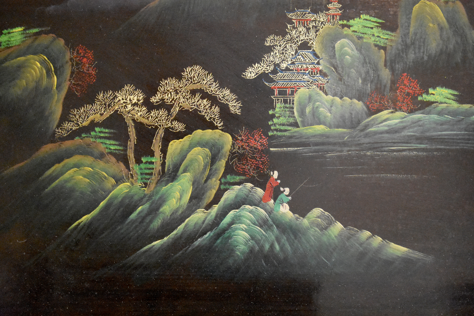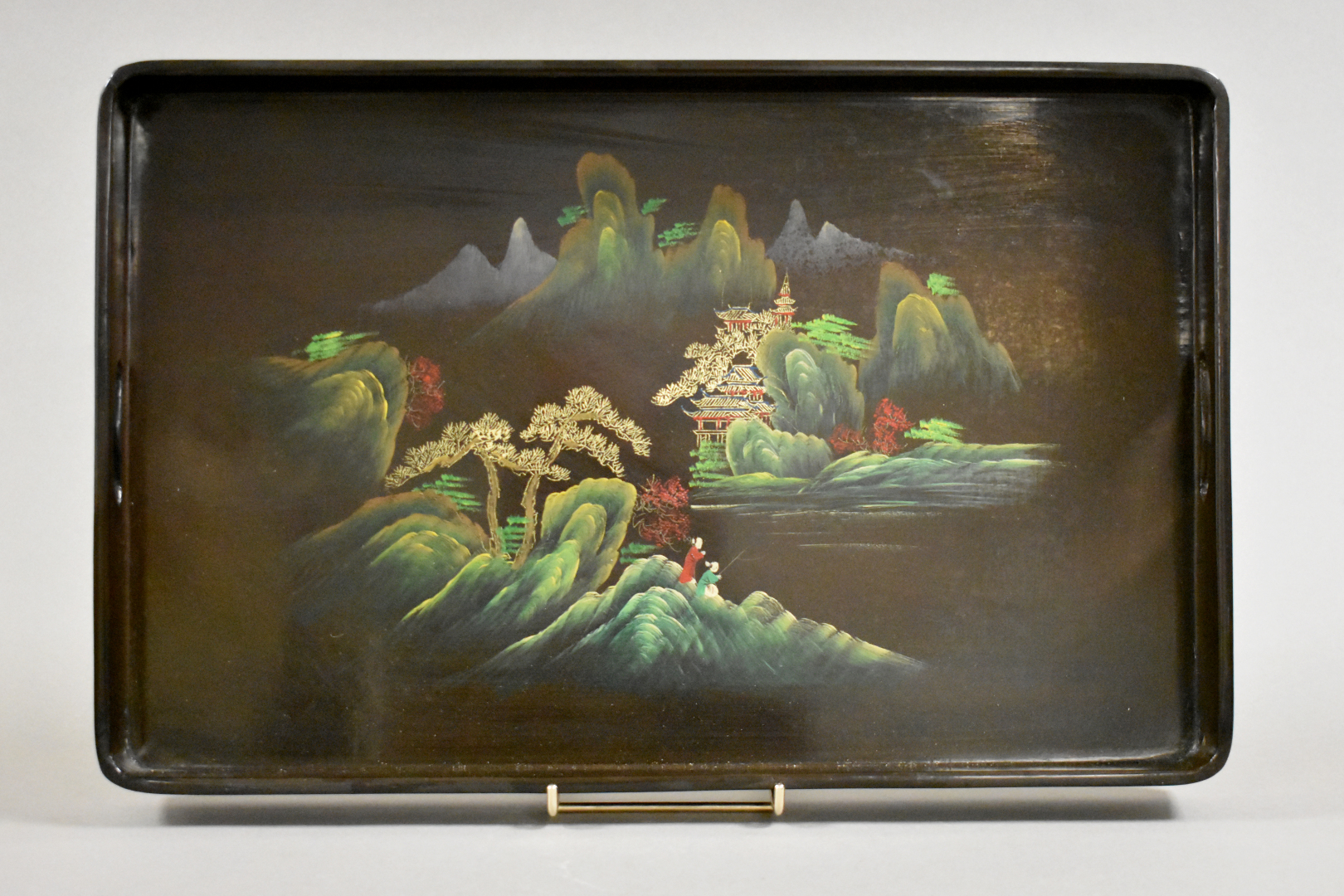 Ensemble de bibelots divers Asie et Afrique dont masques, éléphant en bois sculpté, coupe papier, necessaire de bureau gainé de cuir fauve, plateau laqué et divers. Deux cartons.