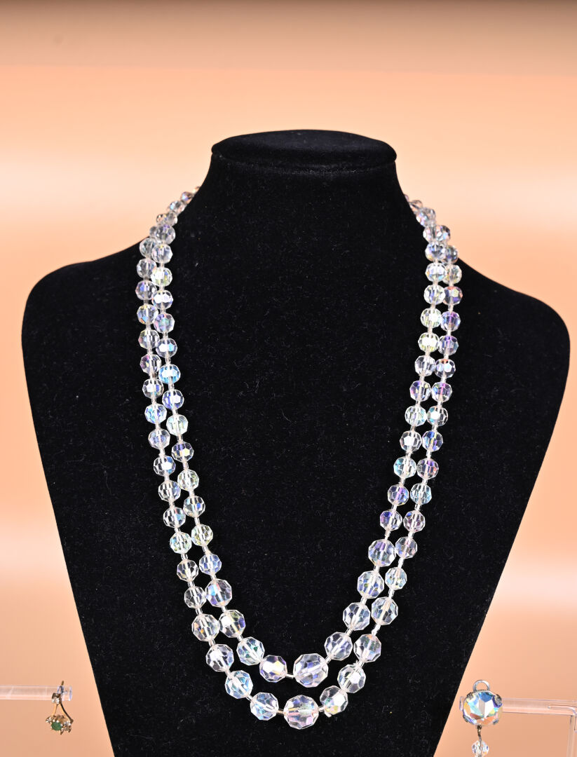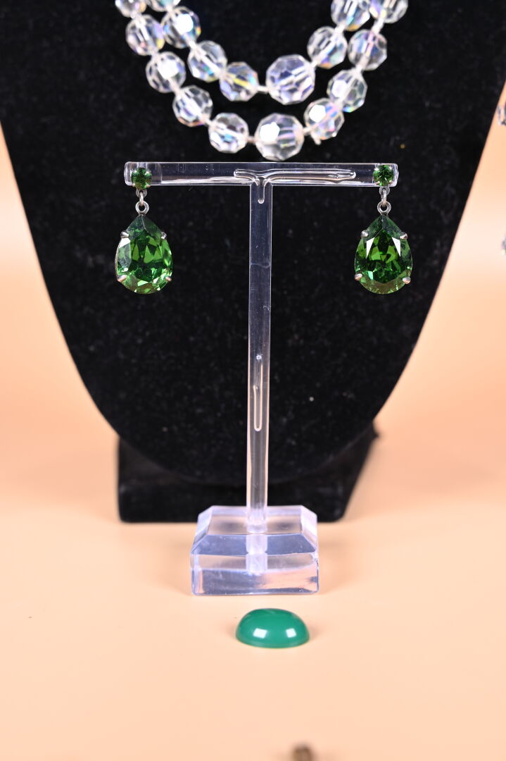 Ensemble de bijoux fantaisie dont parure en verre teinté et pendants d’oreilles.