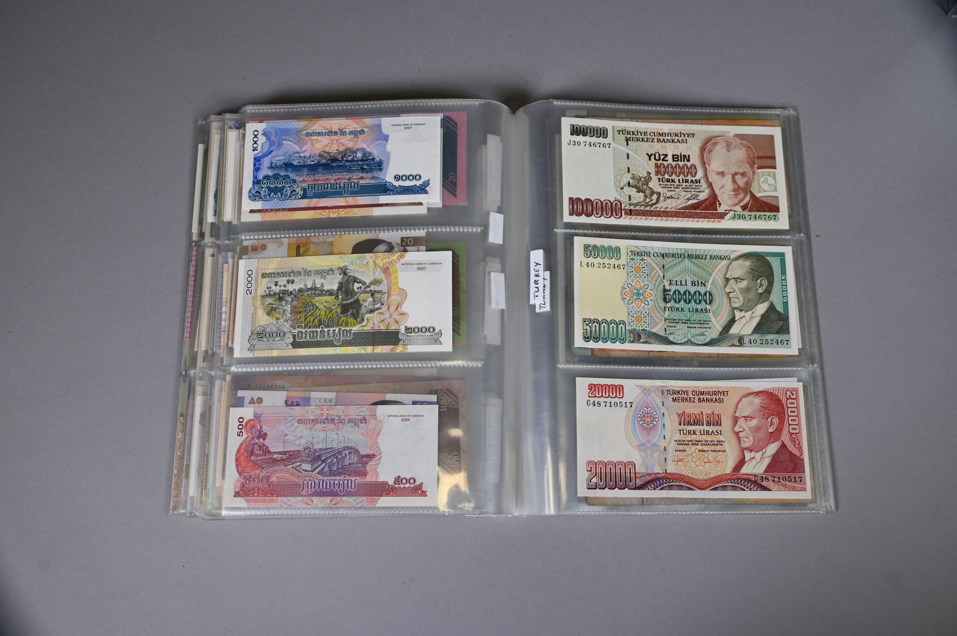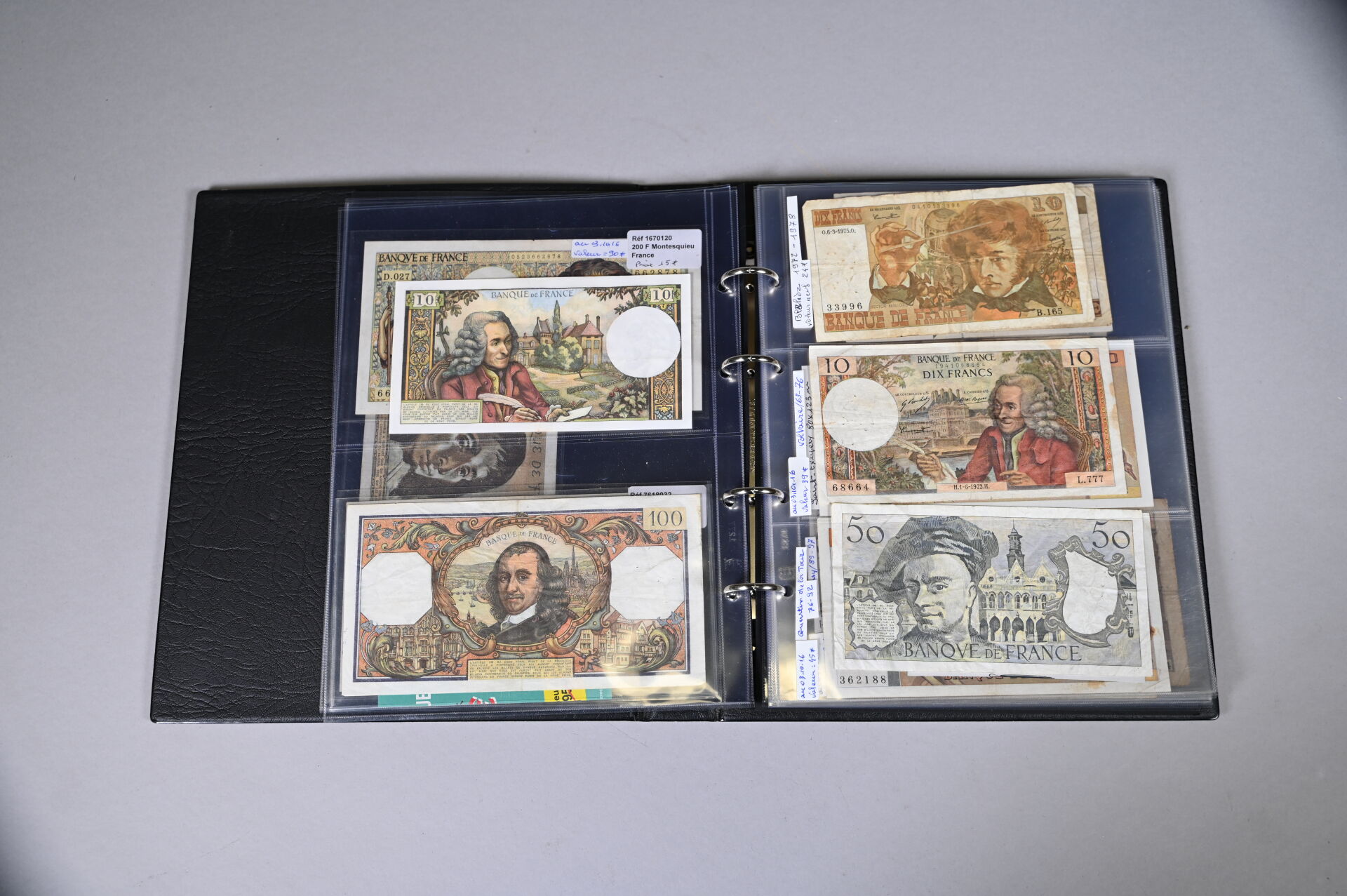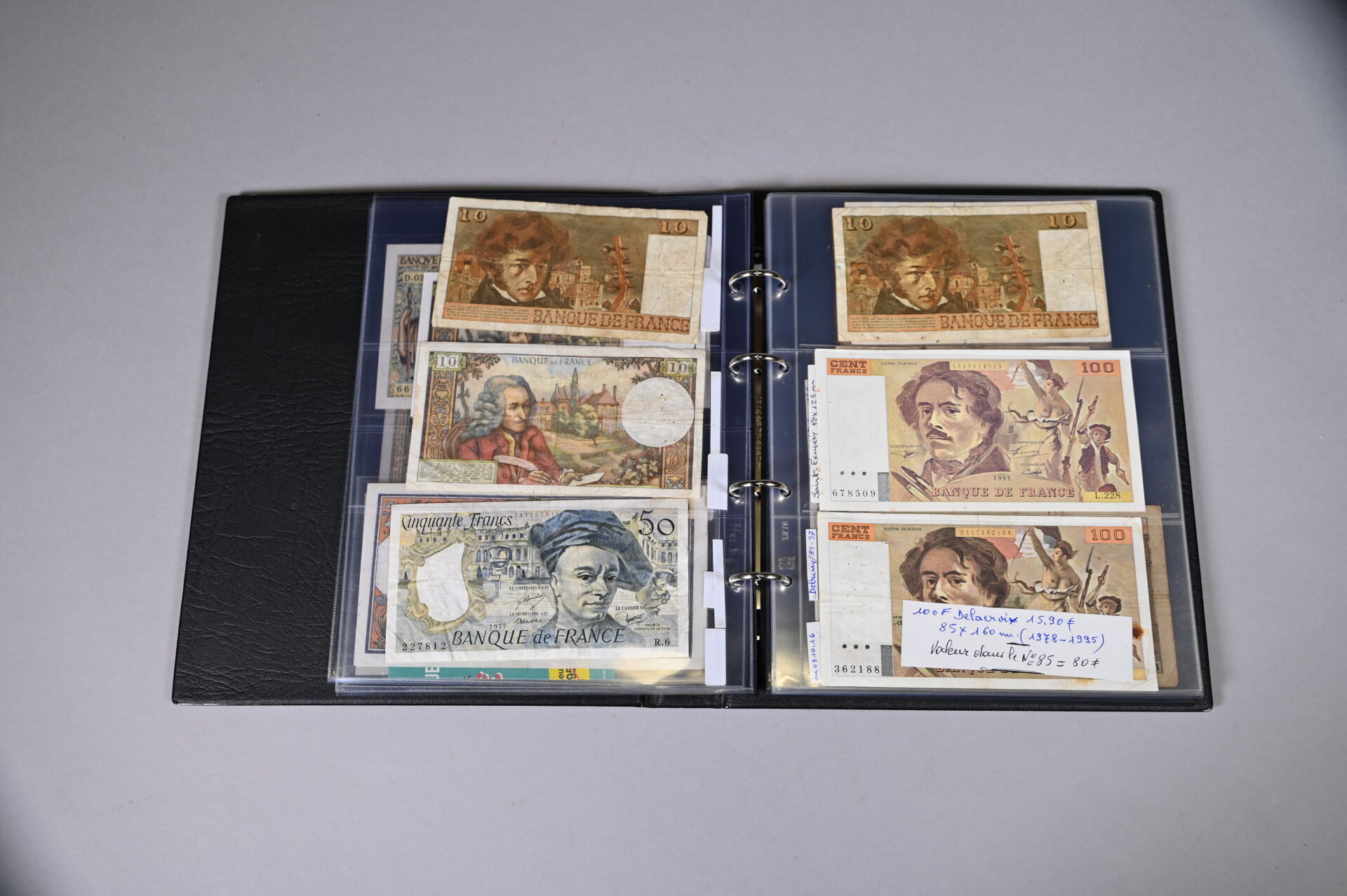 Ensemble de billets, Francs et étrangers dont Pasteur, Rousseau, Delacroix, Eiffel et divers. Modernes.