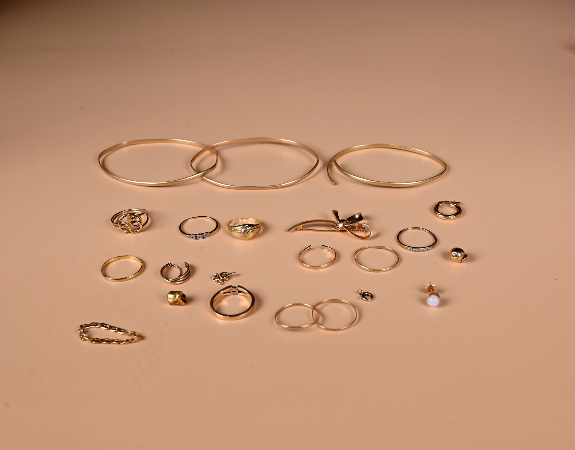 Ensemble de débris d’or jaune 18K 750/1000e (accidents). Poids brut total. : 45,6 g