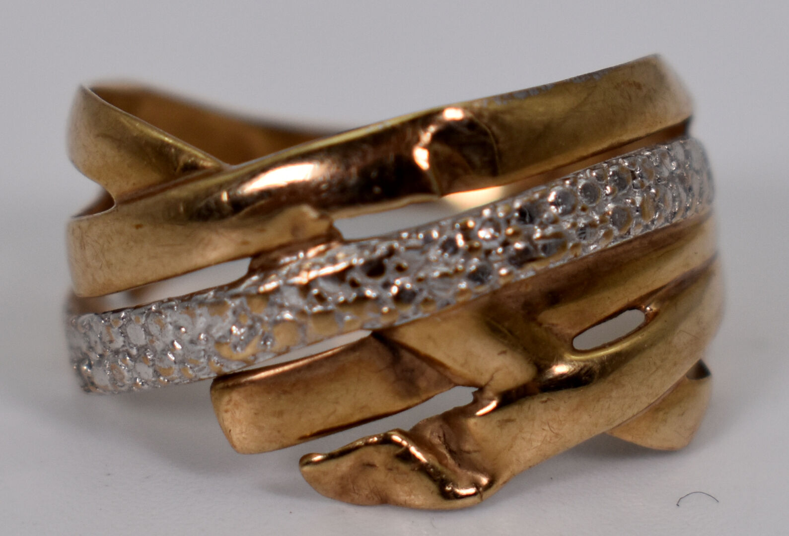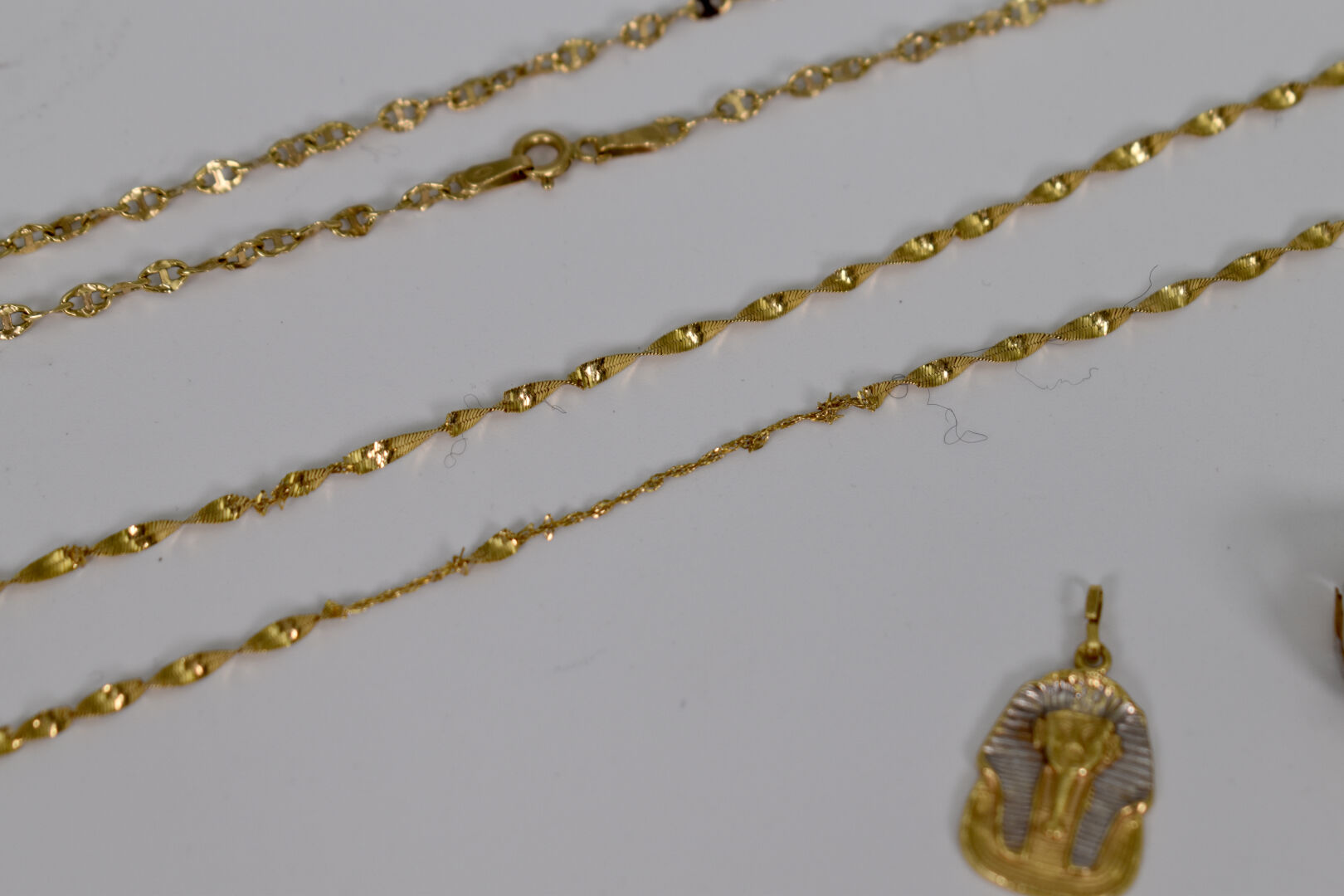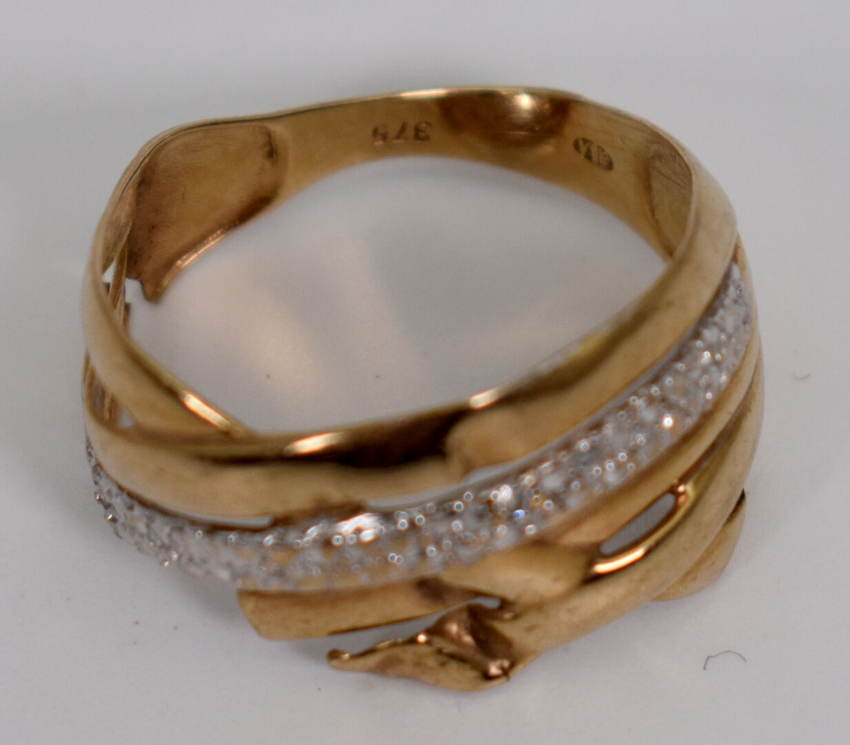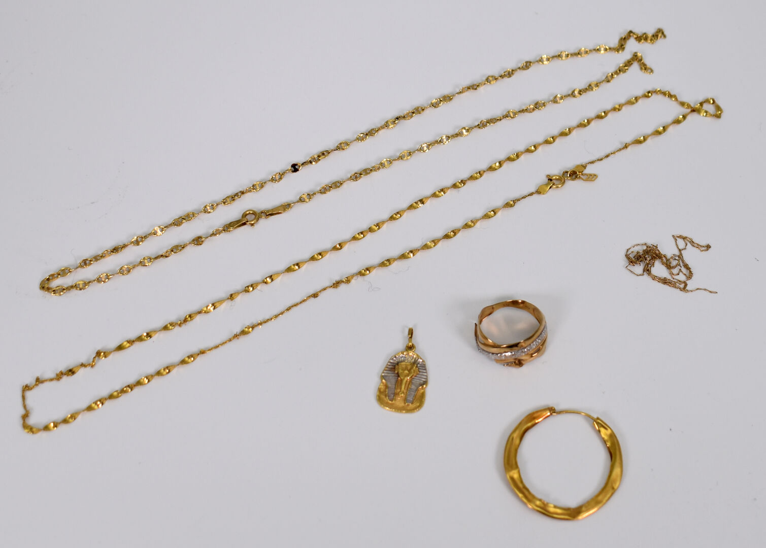 Ensemble de débris en or 18K 750/1000e. Poids : 7,05 g. On joint un débris de bague en or 9K 385/100e. Poids : 1,50 g.
