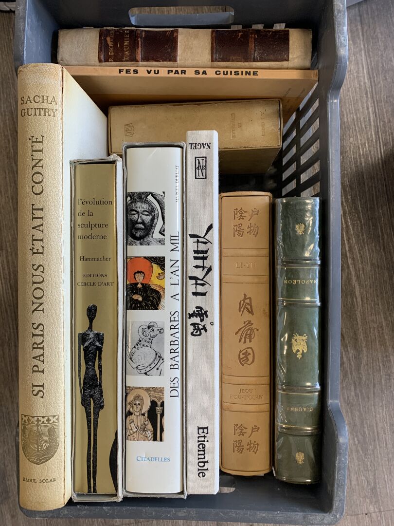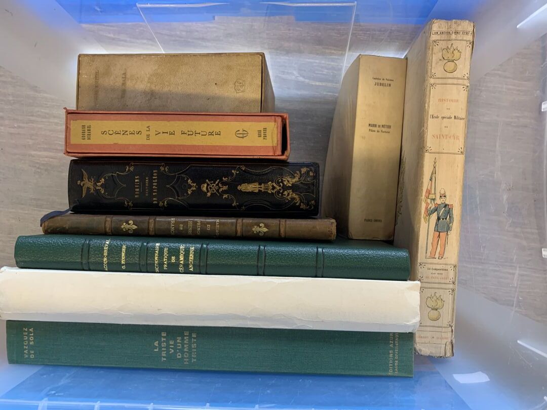 Ensemble de livres dont de nombreux de Sacha GUITRY, Maurice MAETERLINCK – La Vie des Abeilles, Maurice MAETERLINCK – La Vie des Termites, Vasquez DE SOLA – La Triste Vie d’un Homme Triste, NORVINS – Histoire de Napoléon, Histoire de l’Ecole Militaire de Saint-Cyr, Marcel DURLIAT – Des Barbares à l’An Mil, Octave AUBRY – Napoléon et divers.