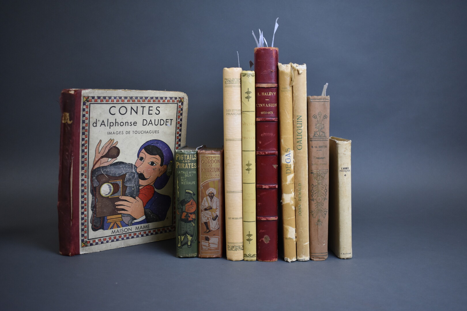 Ensemble de livres XXe, livres d’Art dont « Styles de France, Objets et collections » Le rayonnement Français, » With Gordon at Khartum », « Les Styles Français – Le mobilier du Moyen age au Modern STyle et divers (usures). Un carton.