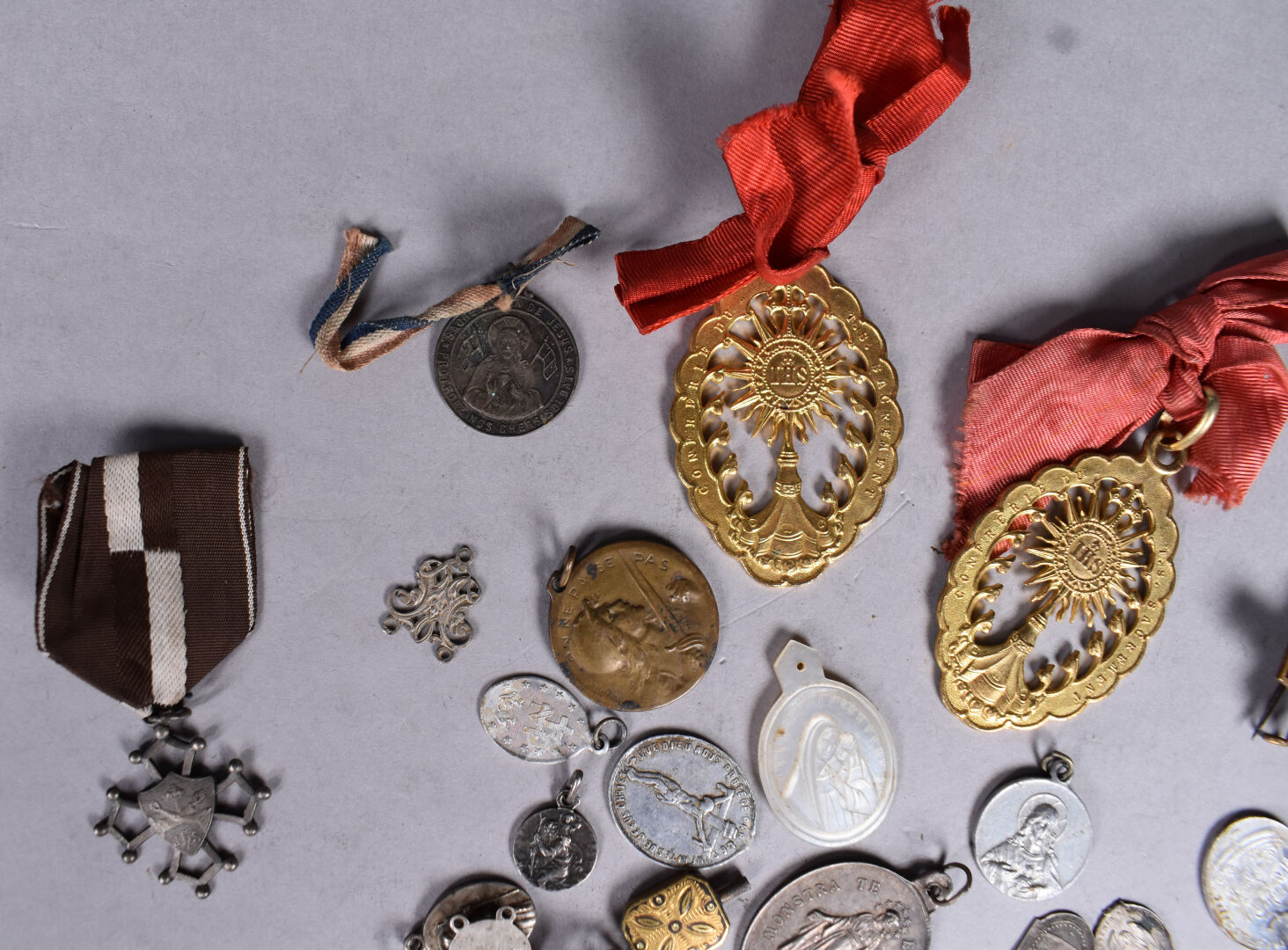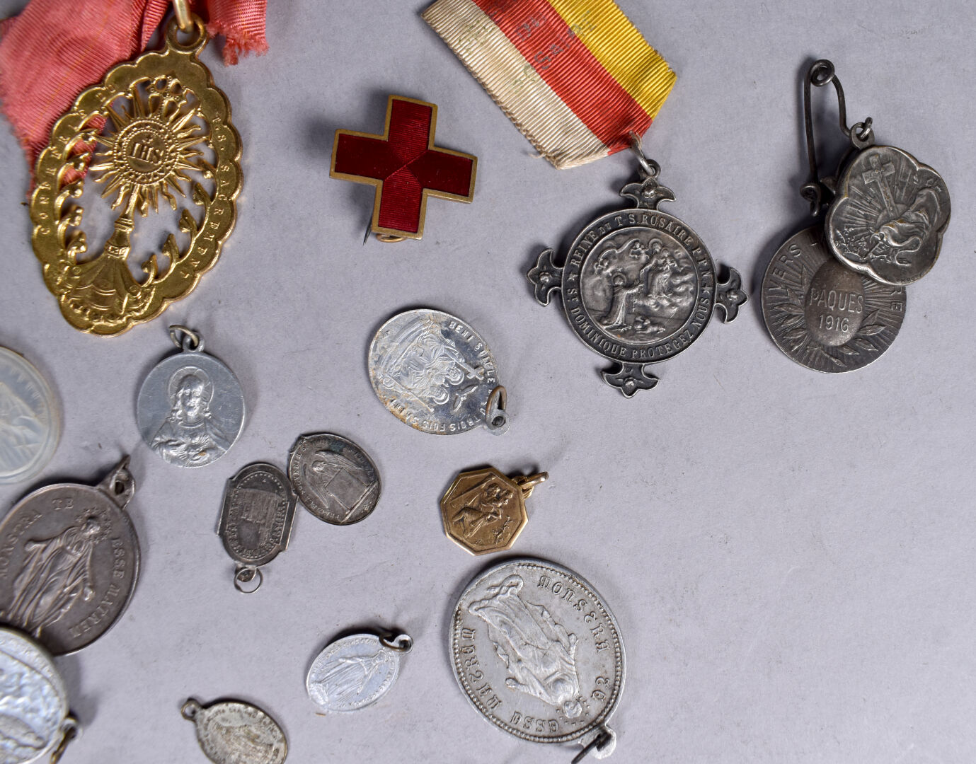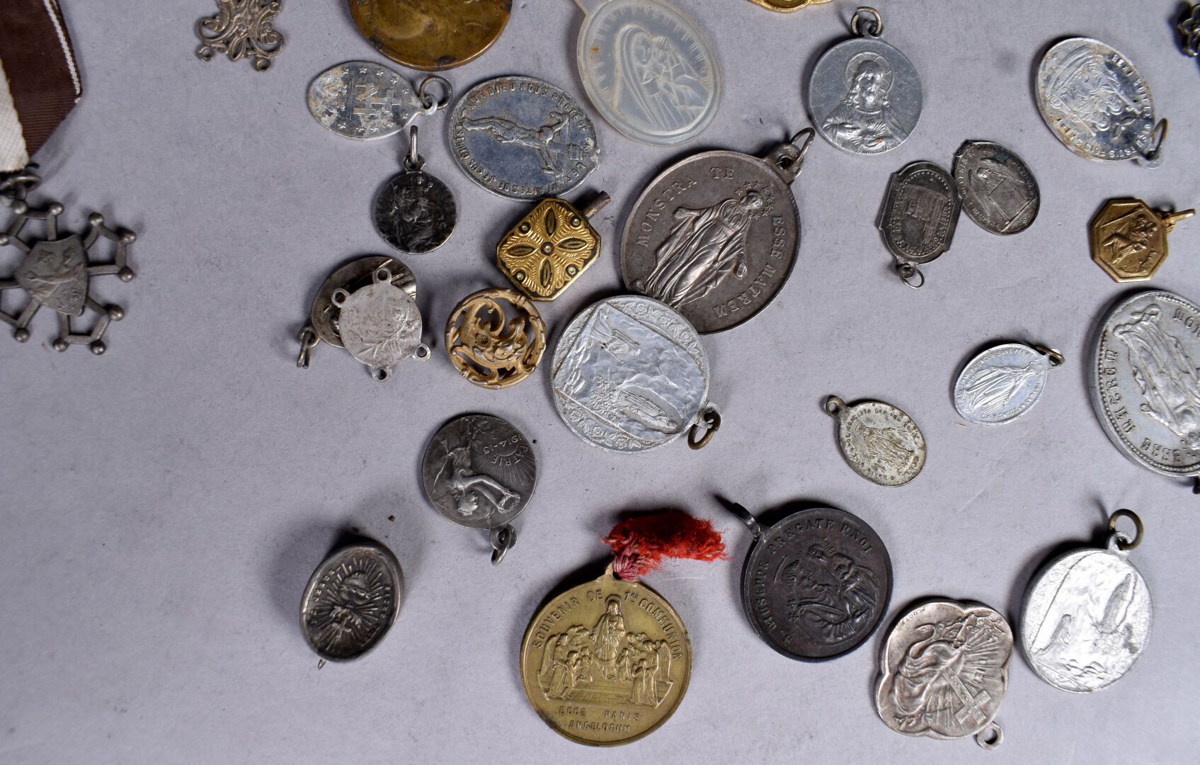 Ensemble de médailles diverses dont religieux (ST Sernin à Toulouse), pélerinage du rosaire à notre dame de Lourdes etc.