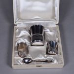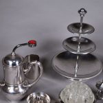 Ensemble de métal argenté dont parties de ménagères de style Louis XV, Serviteur Muet, Louche, Coquetiers, Moutardier, BOULENGER, FELIX FRERES et divers. Coffrets.