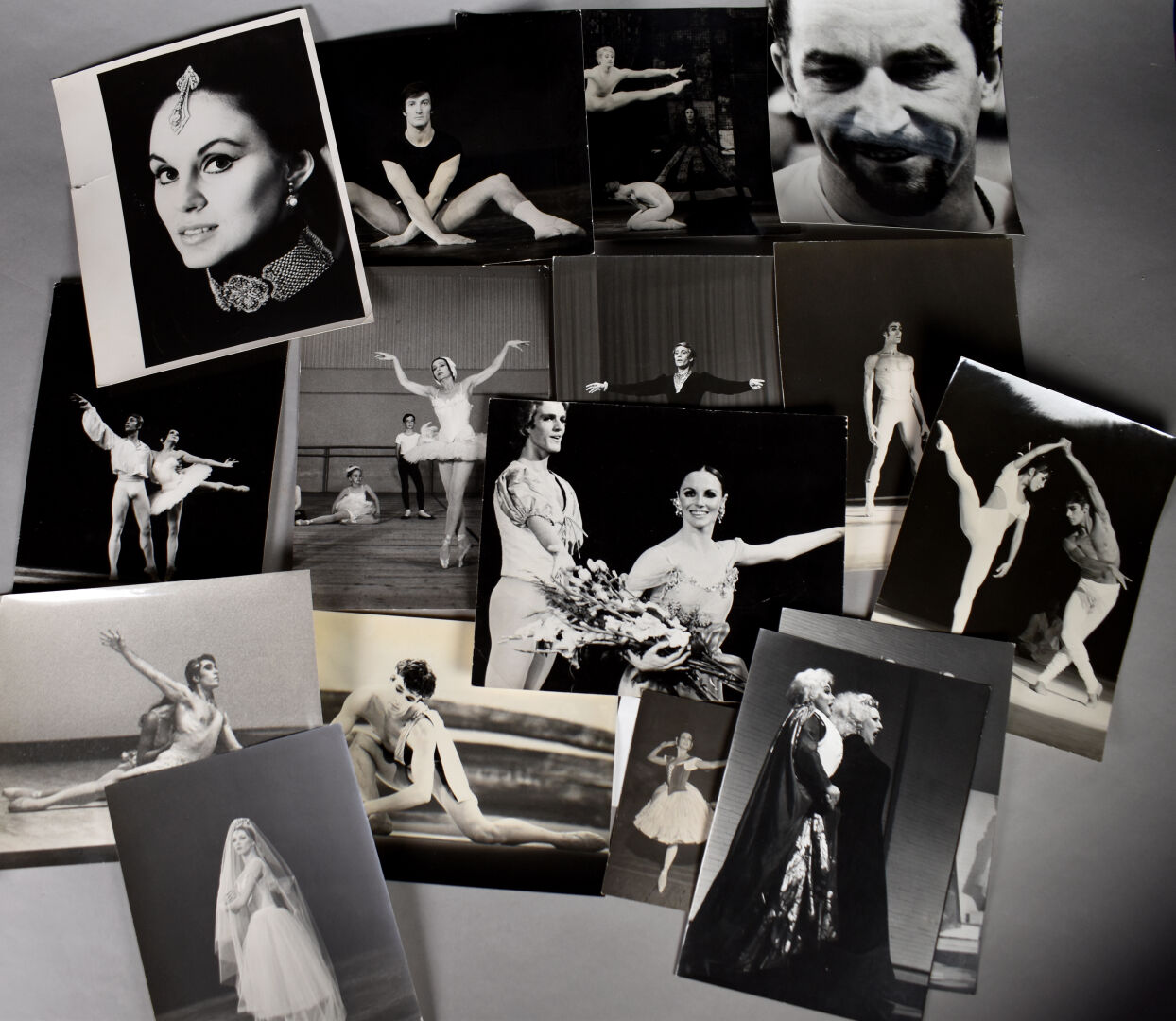 Ensemble de photos dans un portefolio de personnalités, photographes et danseurs, principalement sur le thème du ballet et de l’Opéra dont Claude Gafner, Maria Calas, Maurice Begart, Noureev…). Cachets des photographes au dos, certaines dédicacées.
