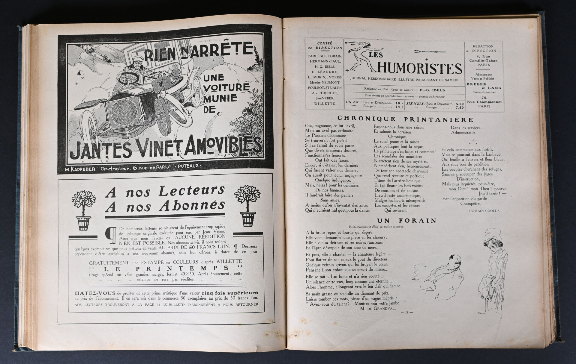 Ensemble de revues, gravures et affiches reliées dont l’Assiette au beurre, Les humoristes (1911), Mon professeur, Revue universelle et divers…