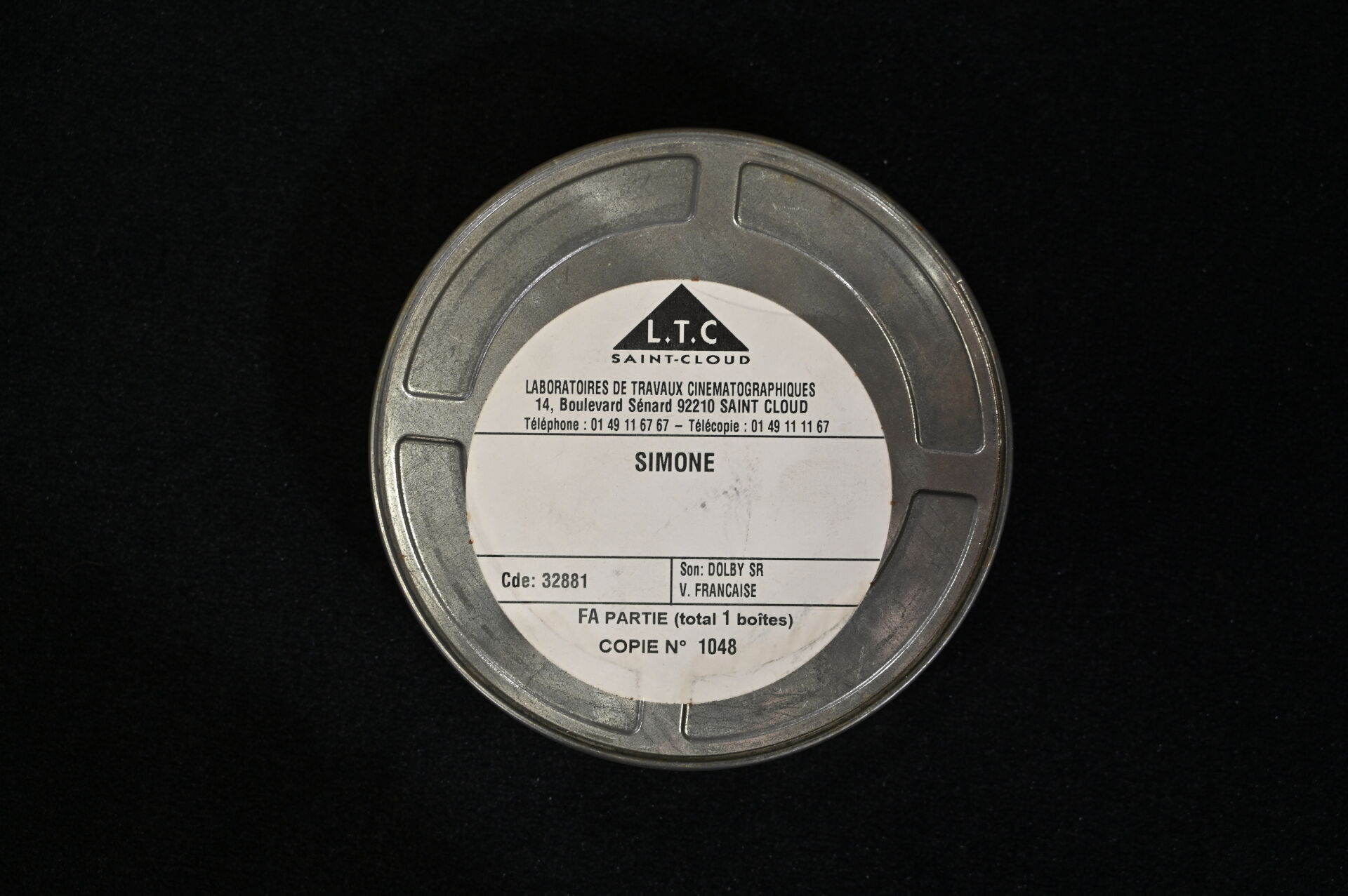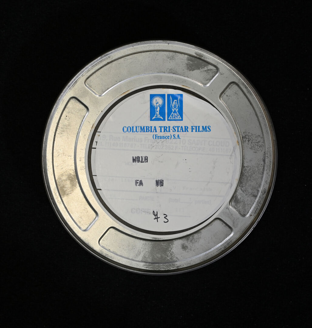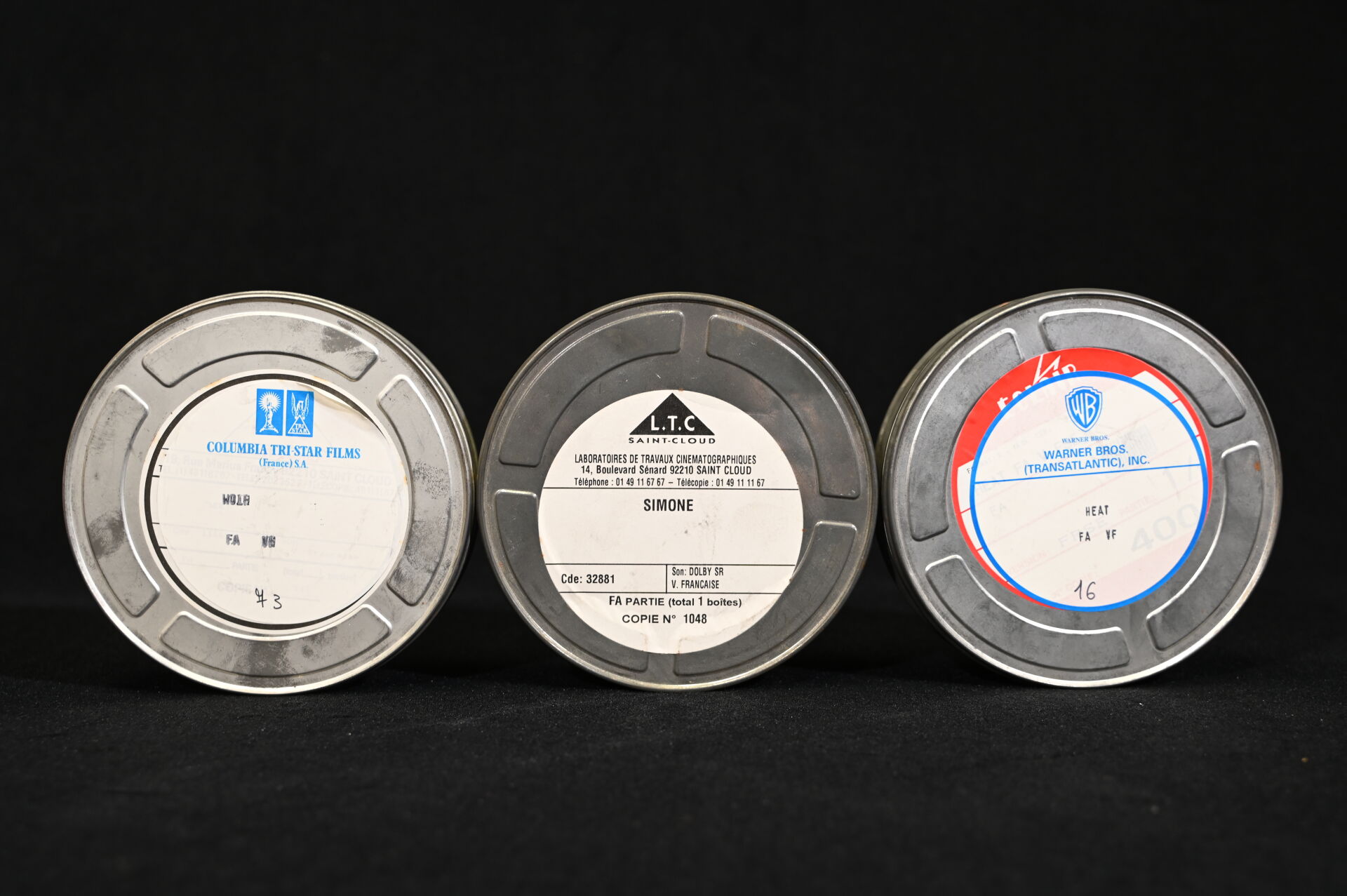 Ensemble de trois bobines de cinéma dans leurs étuis et en version française, des films HEAT – WARNER BROS avec Al Pacino, WOLF – COLUMBIA avec Jack Nicholson, et SIMONE – DOLBY avec Al Pacino.