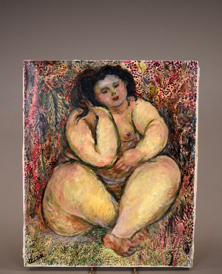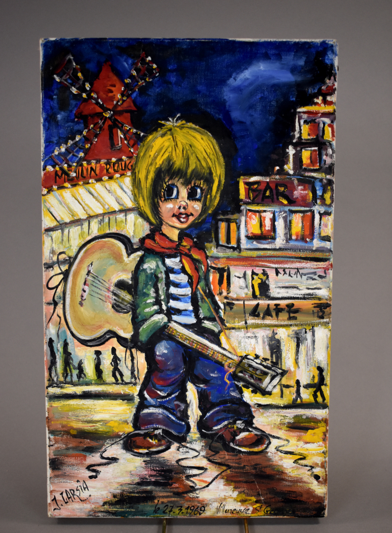 Ensemble de trois huiles sur toiles naïves, soit une signée Garsia figurant un poulbot, une signée Li Jin (Albi) et une signée Caruana.